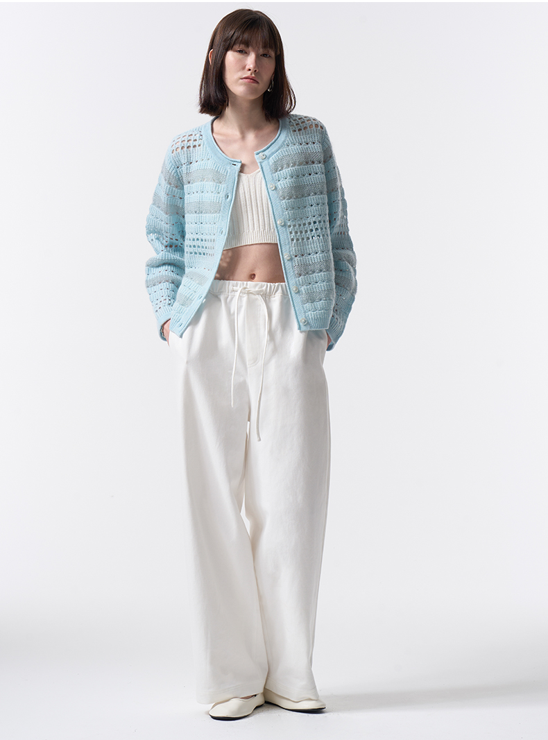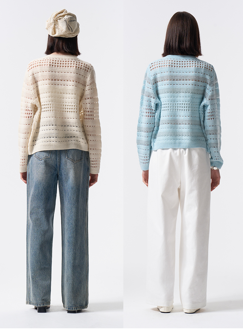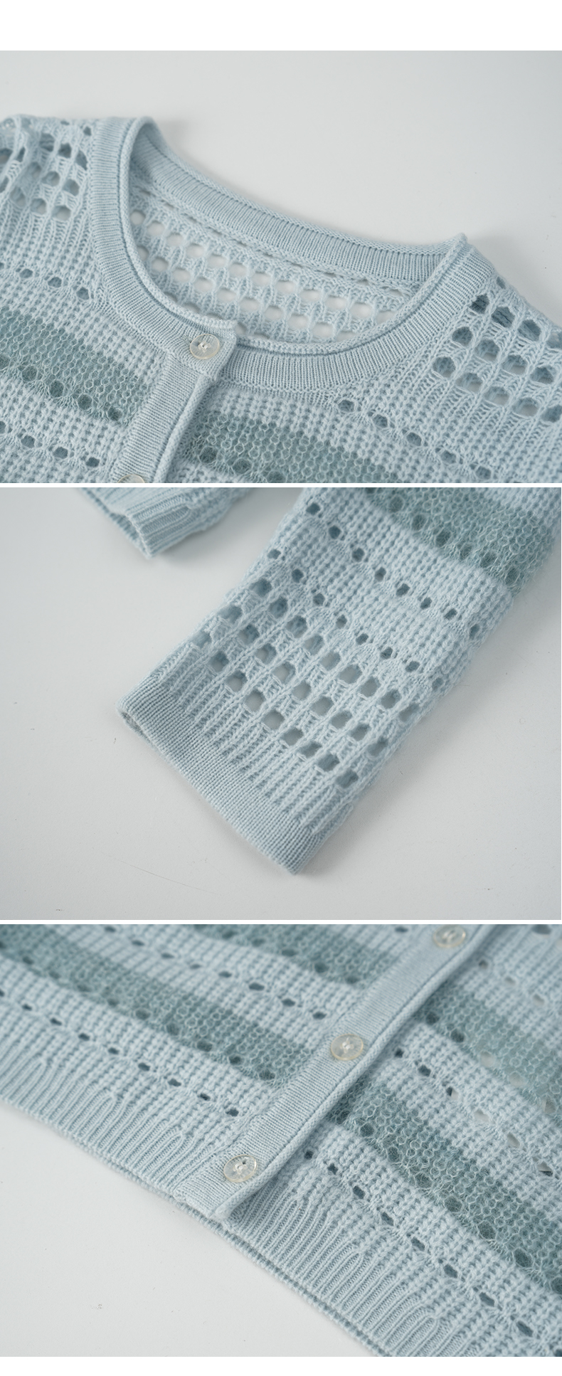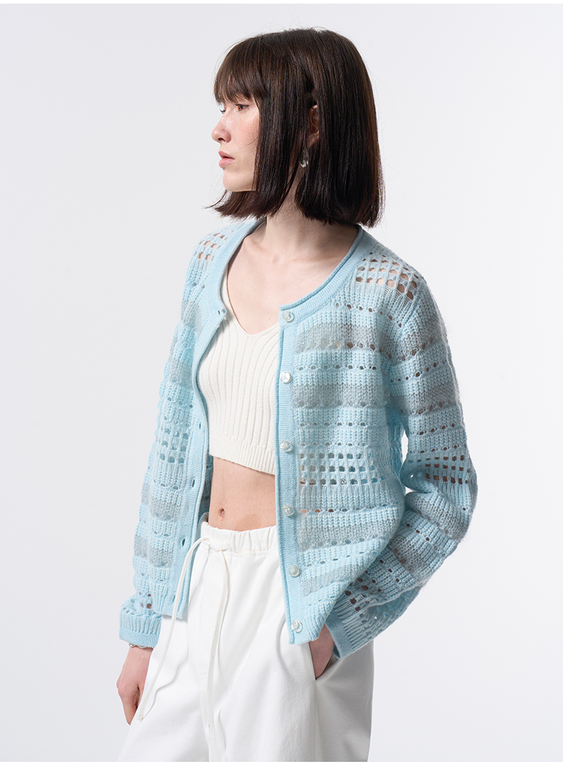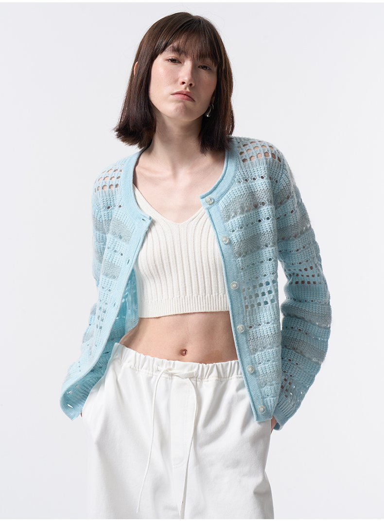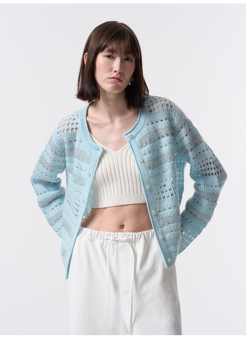 VIMAGE纬漫纪慵懒休闲风圆领镂空肌理绵羊毛针织开衫2026春季新款V2501108