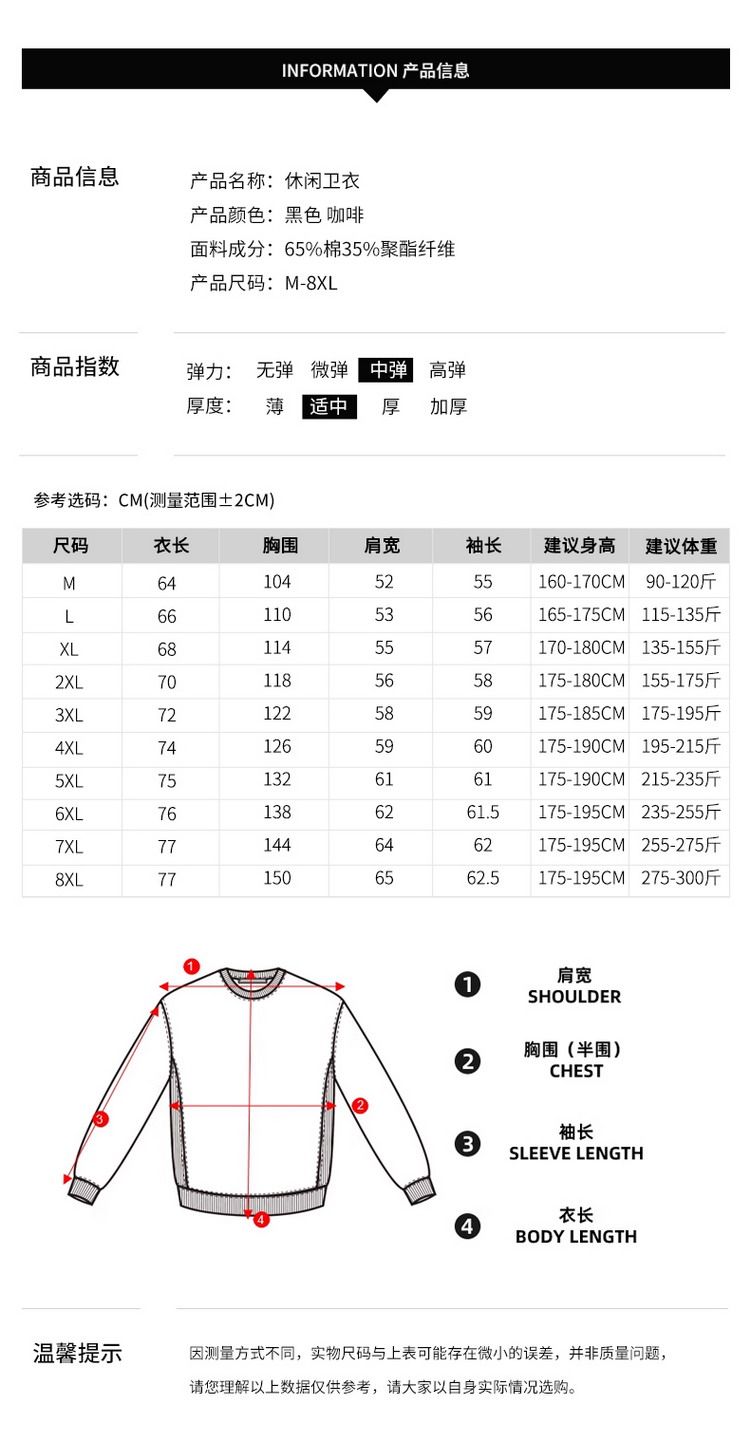 【DSL】大依优型大码男装圆领卫衣简约休闲棉质长袖打底衫上衣加肥加大码