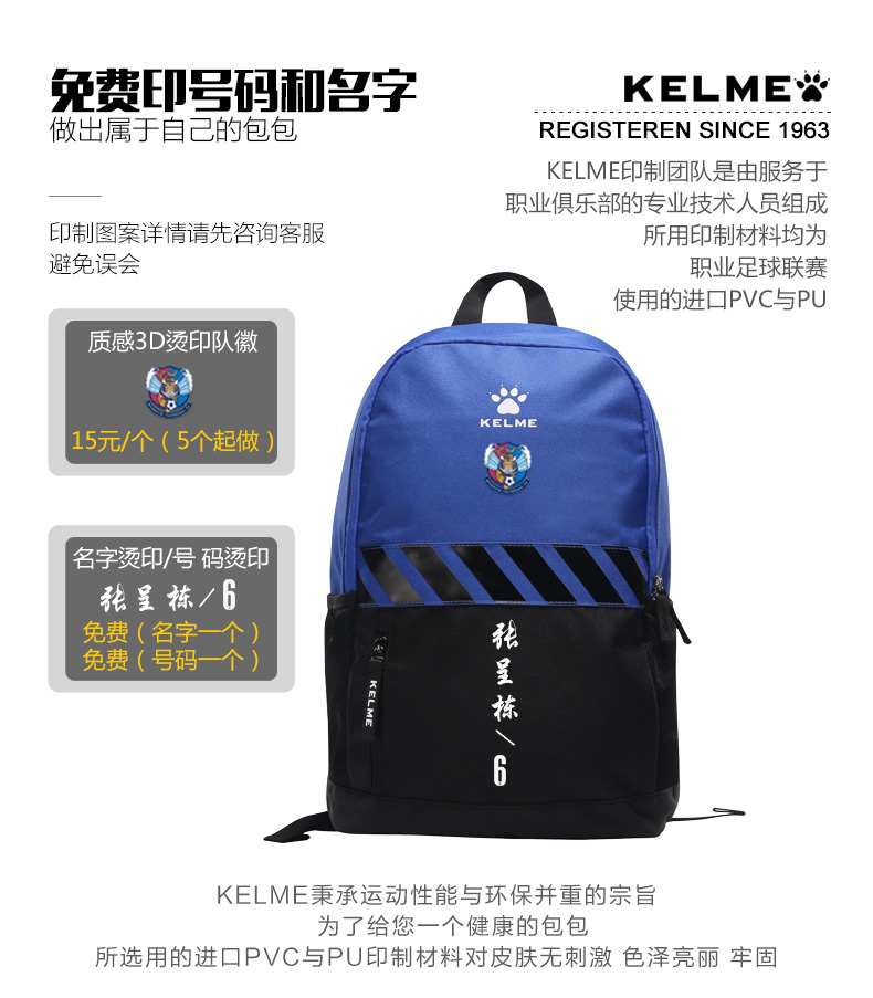卡尔美运动双肩包男女足球训练背包健身包中学生书包大容量