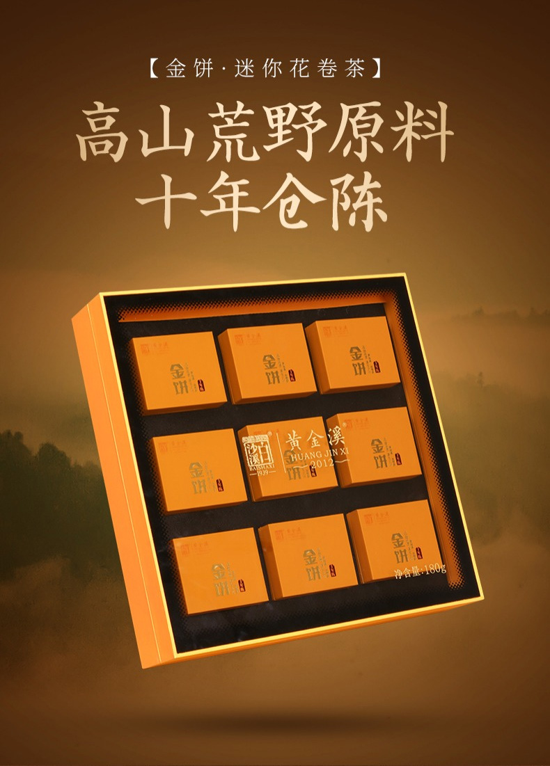【节日送礼】白沙溪黄金溪金饼(迷你.花卷茶)198g(22g*9盒)/盒 精致礼盒装送礼首选