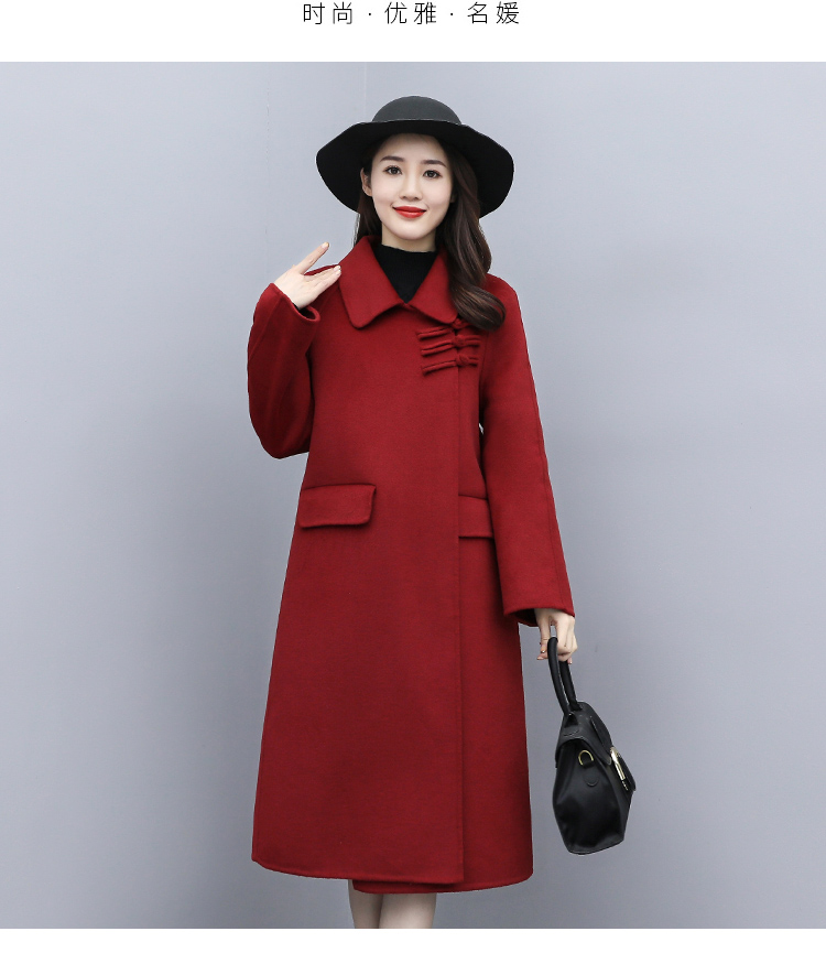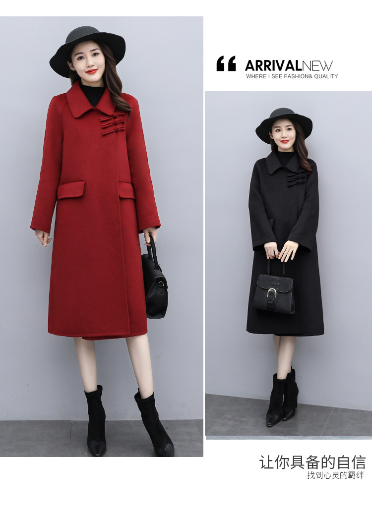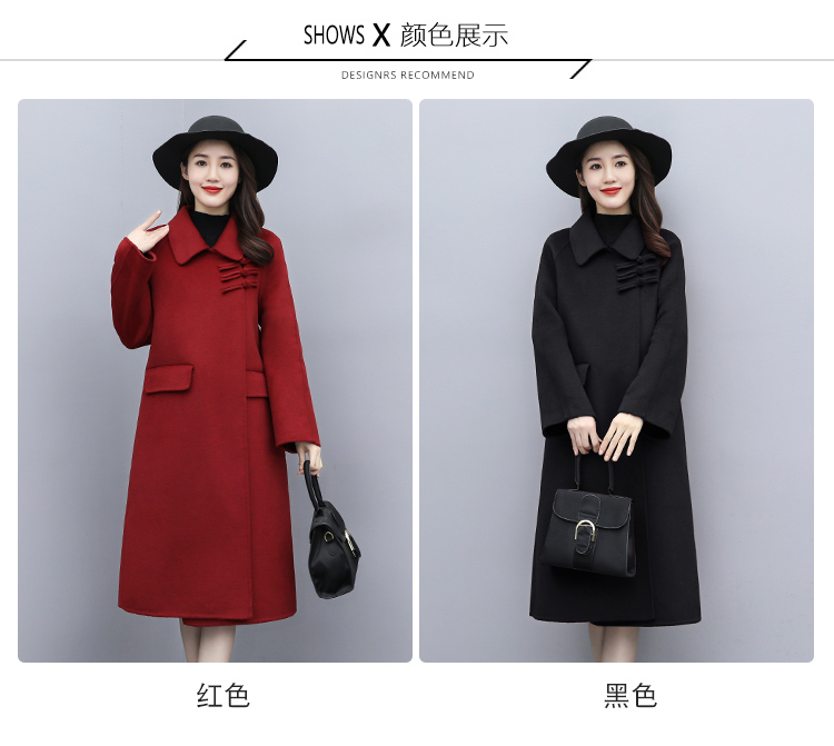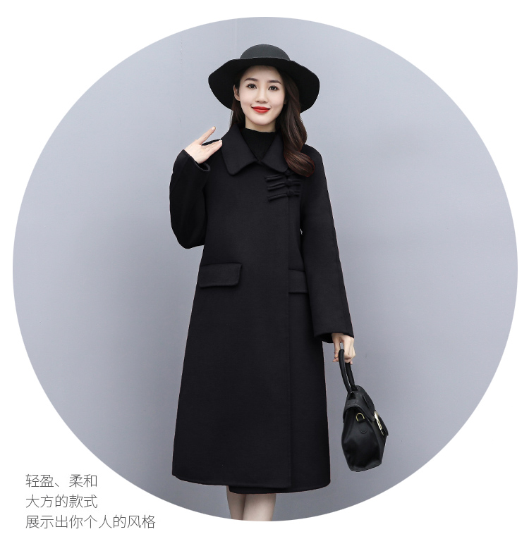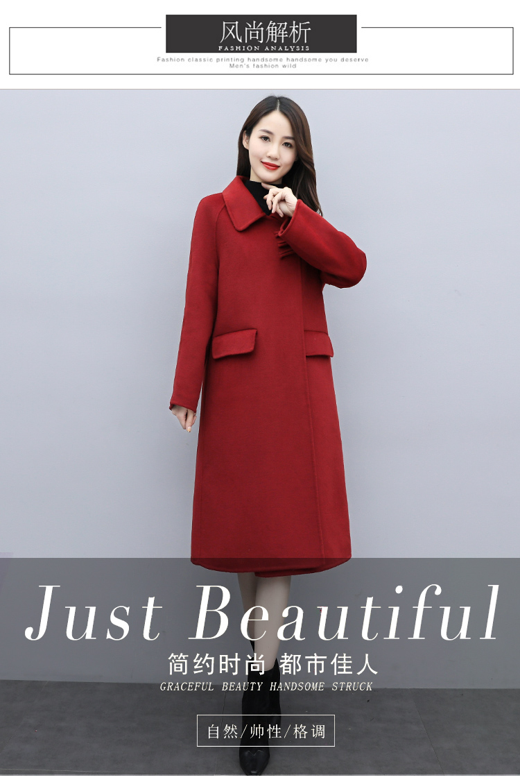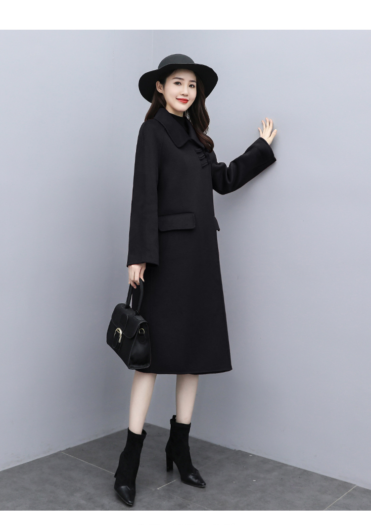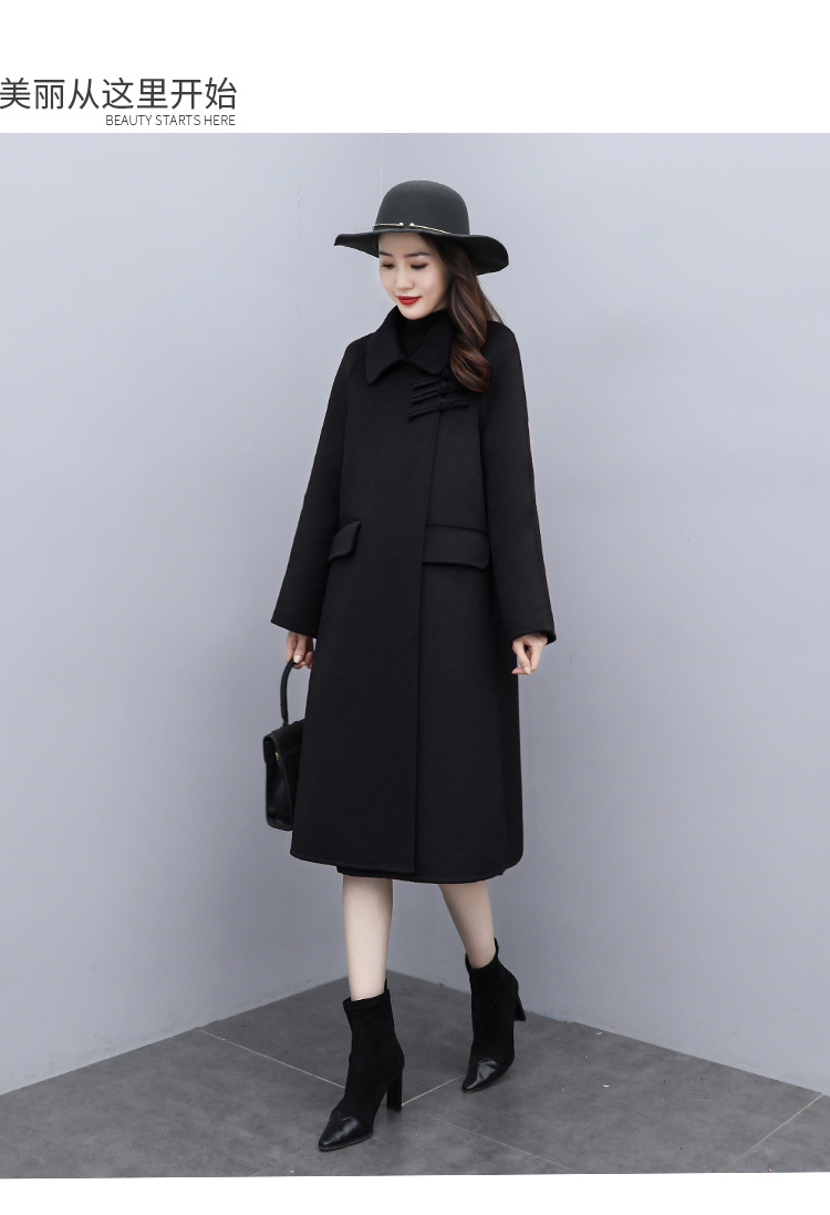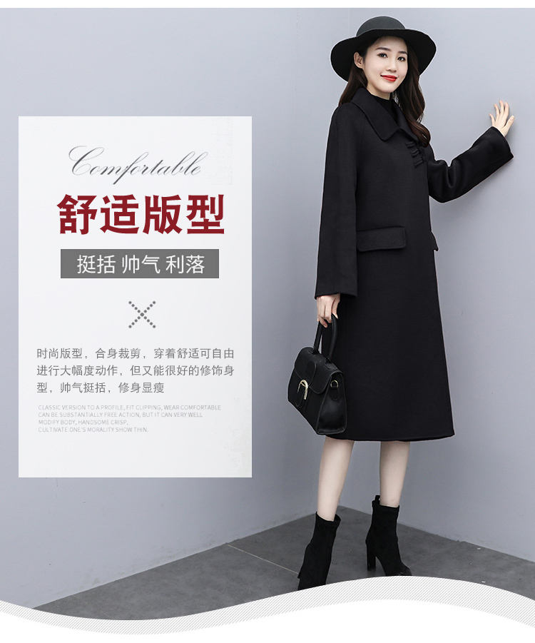 WZNH-XCMZ7397宽松显瘦女中长款毛呢外套秋冬纯色简约通勤外套