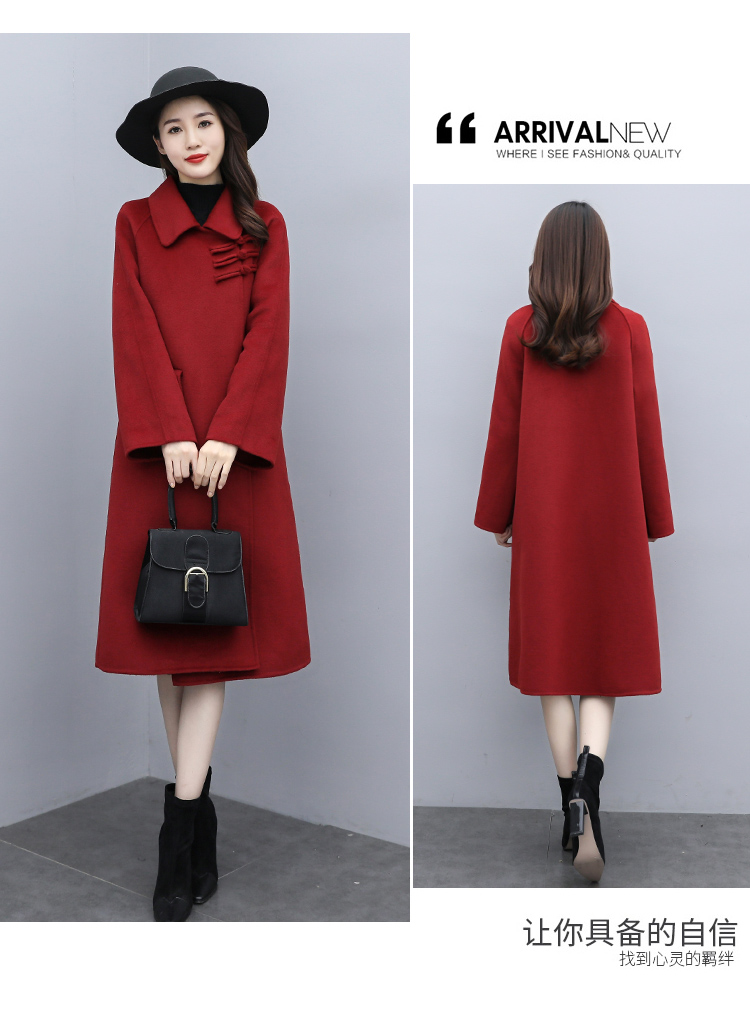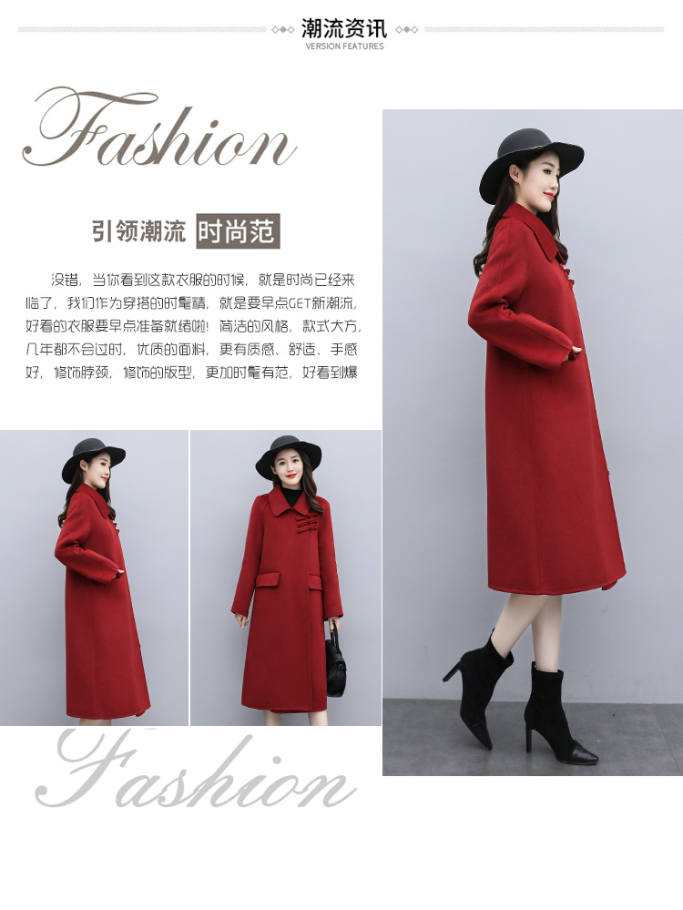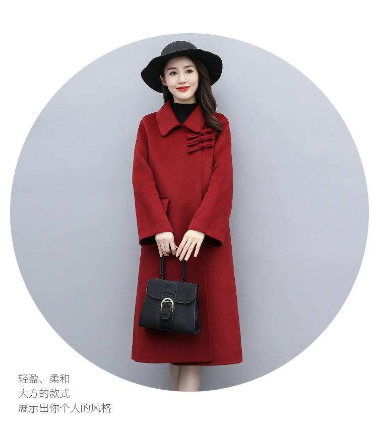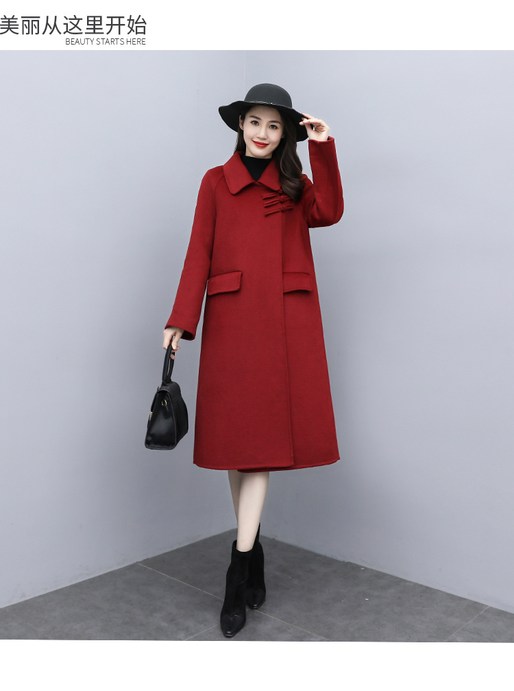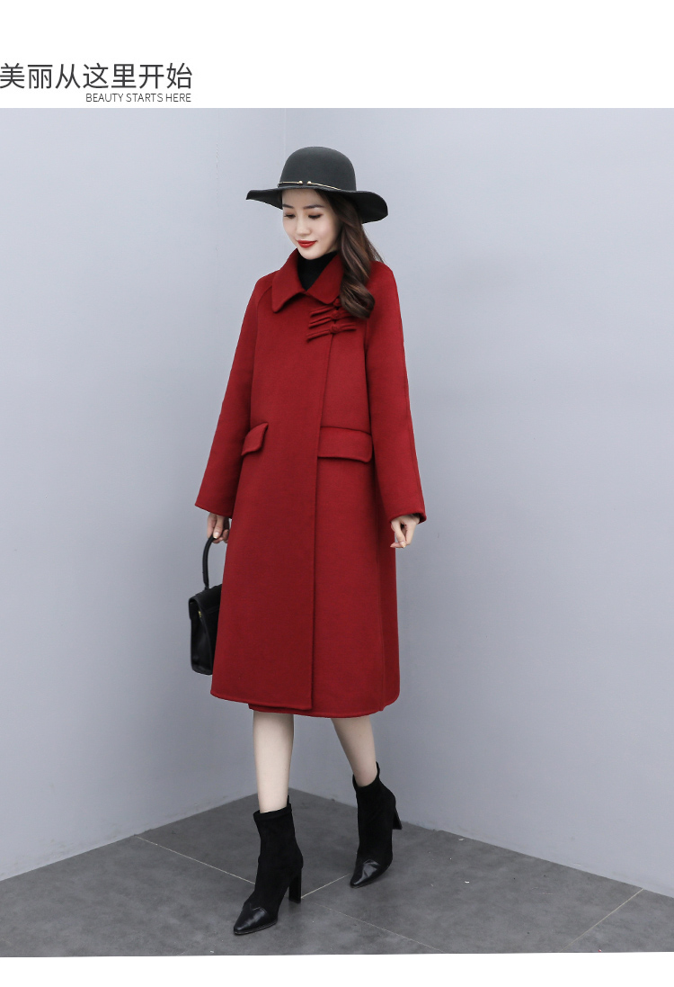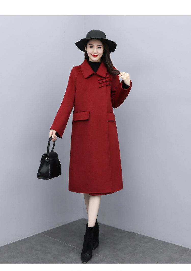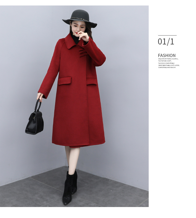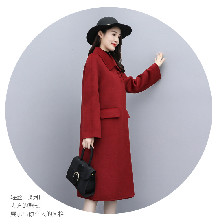 WZNH-XCMZ7397宽松显瘦女中长款毛呢外套秋冬纯色简约通勤外套