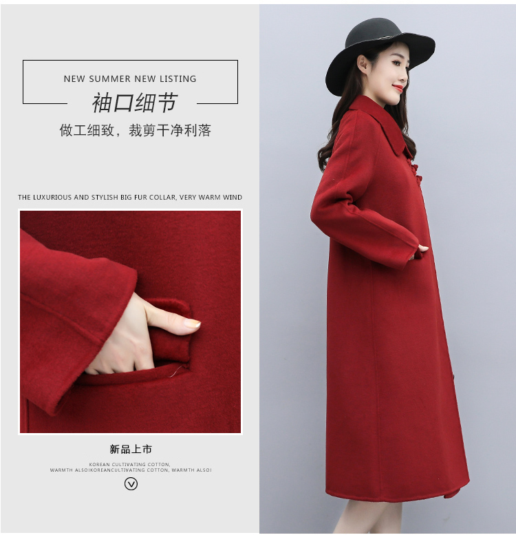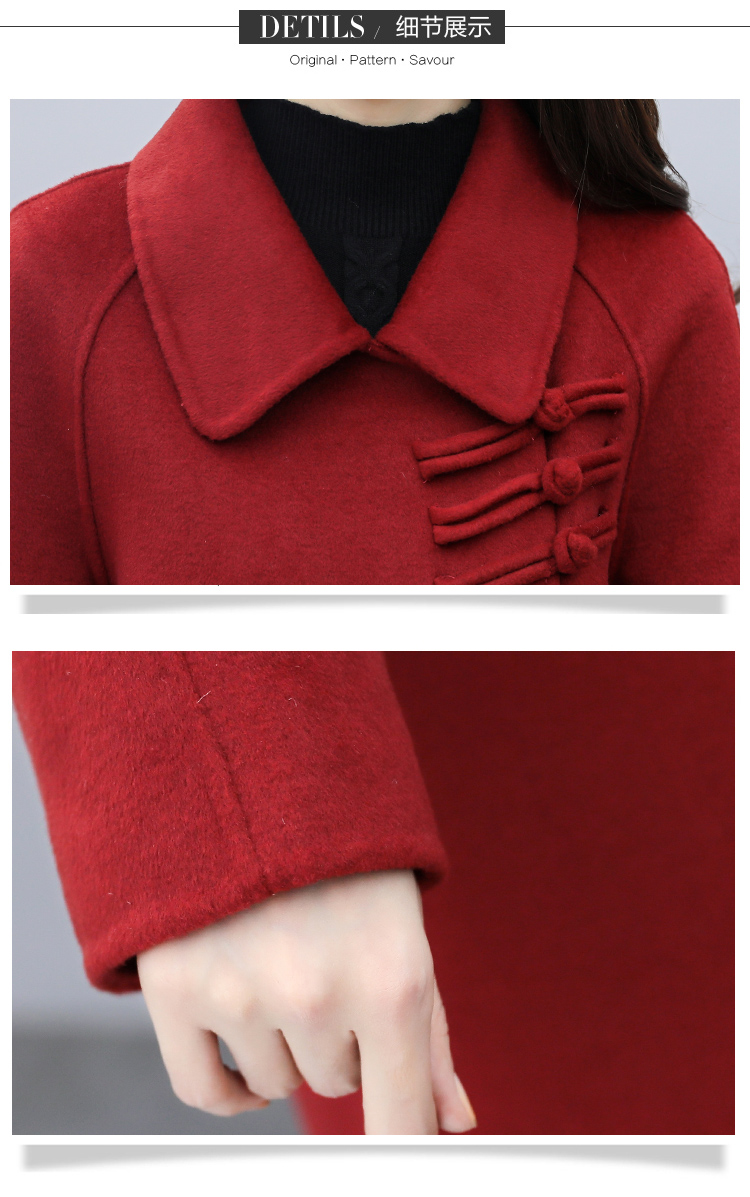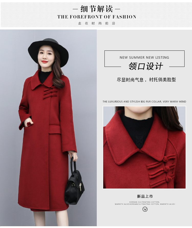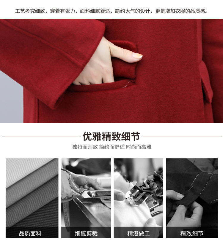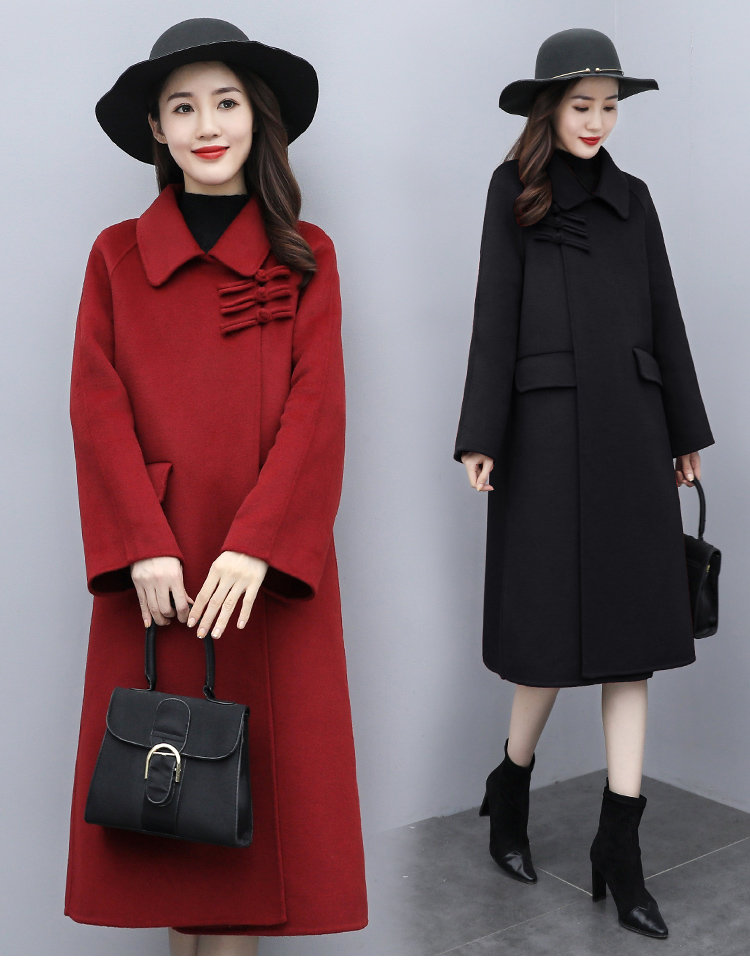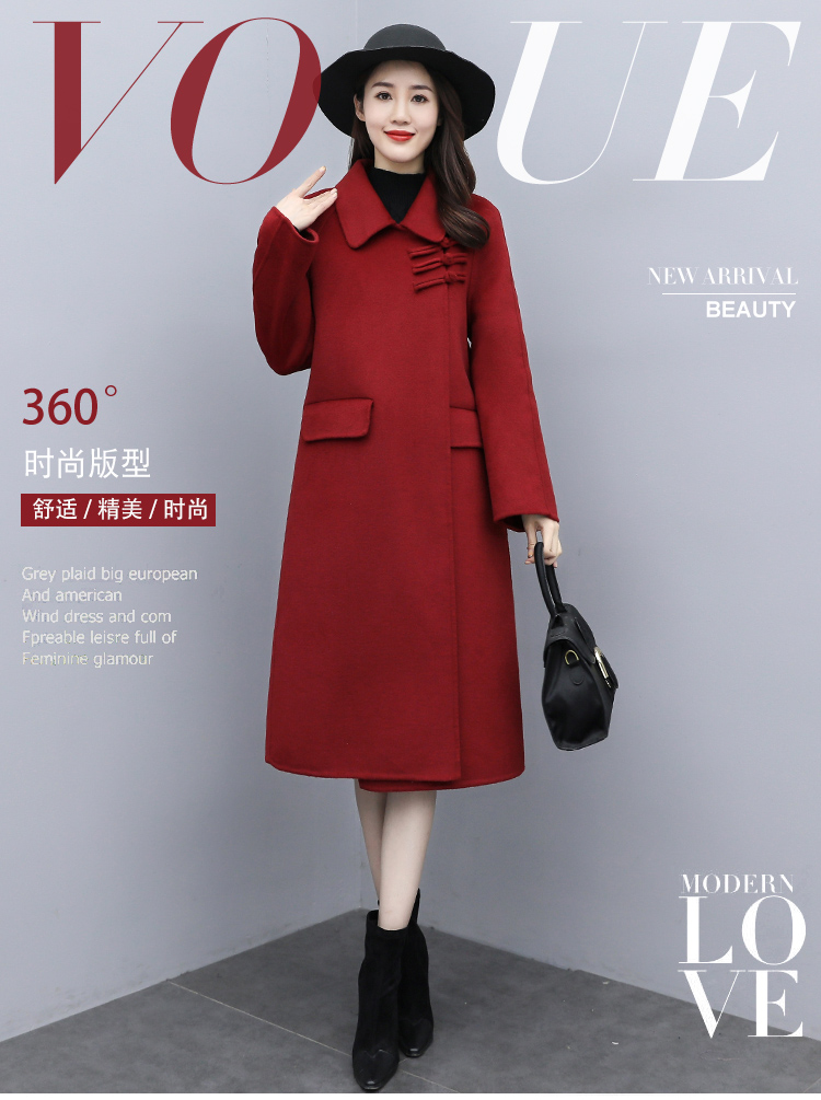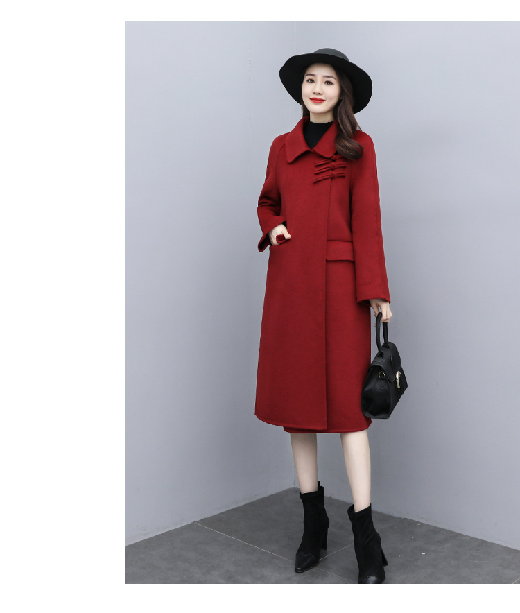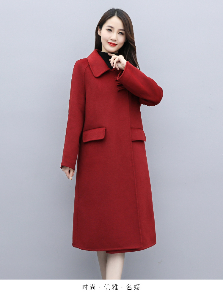 WZNH-XCMZ7397宽松显瘦女中长款毛呢外套秋冬纯色简约通勤外套
