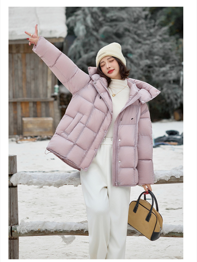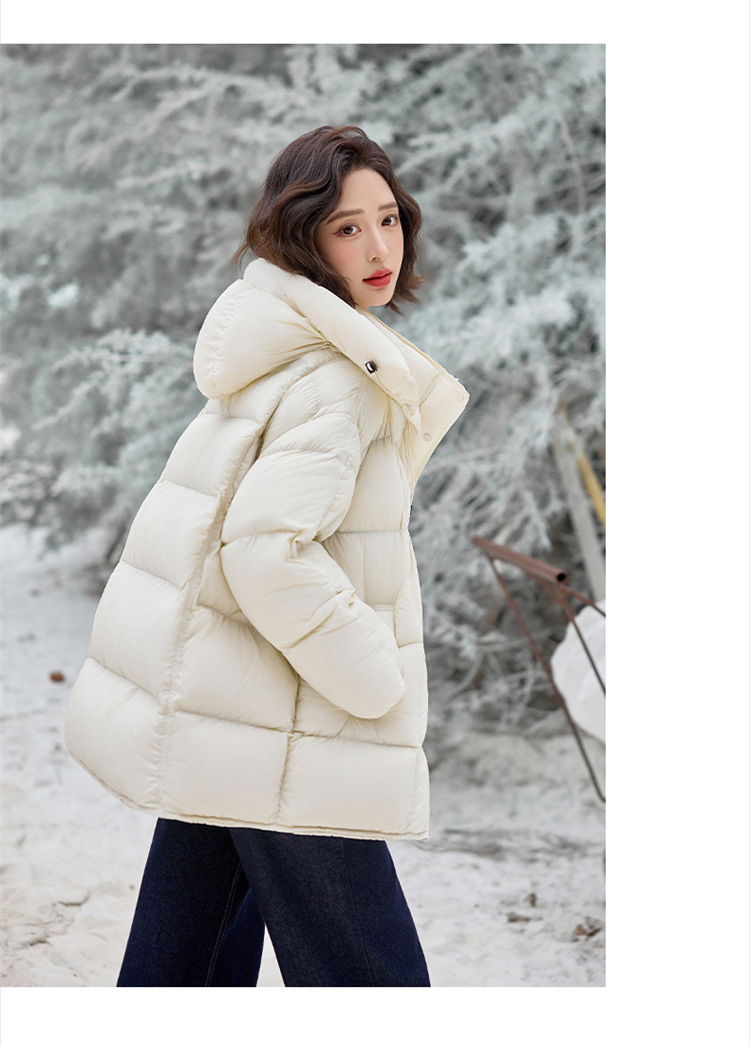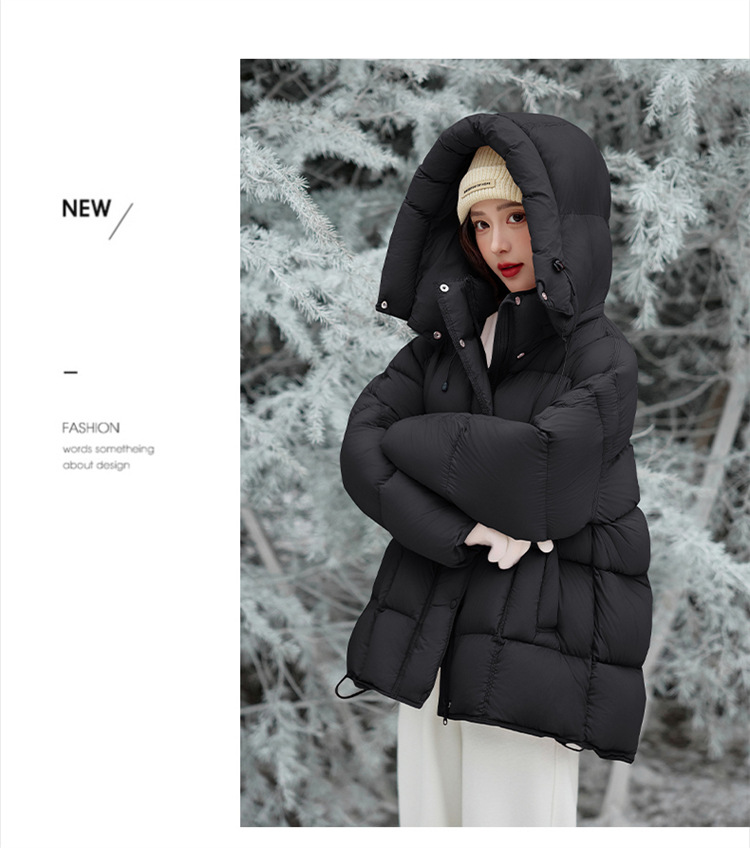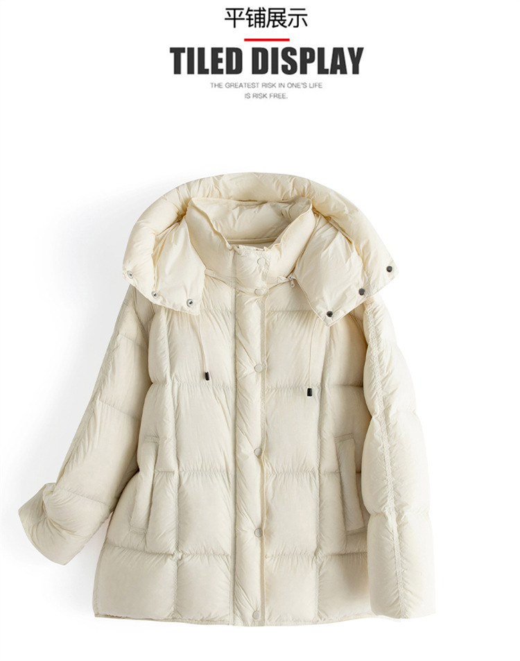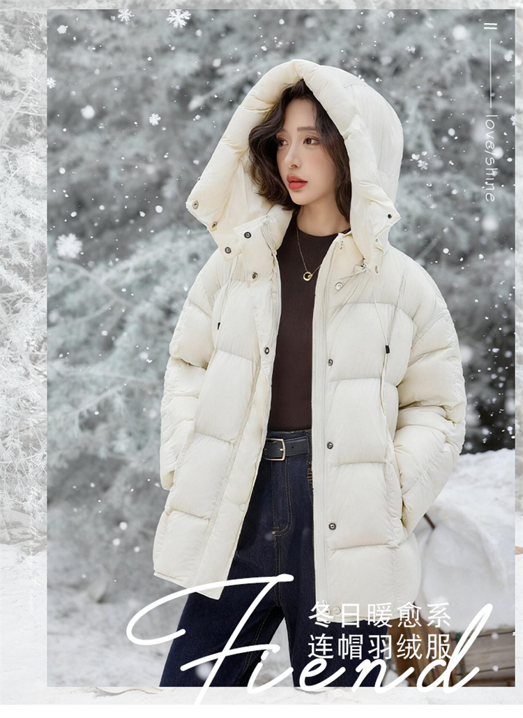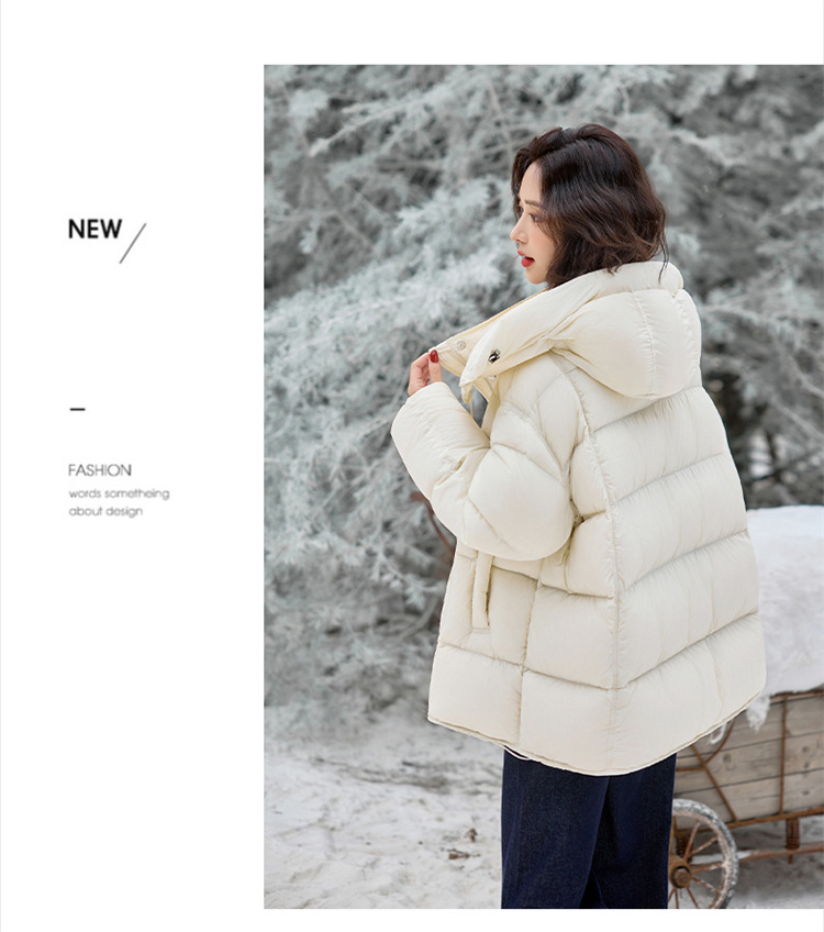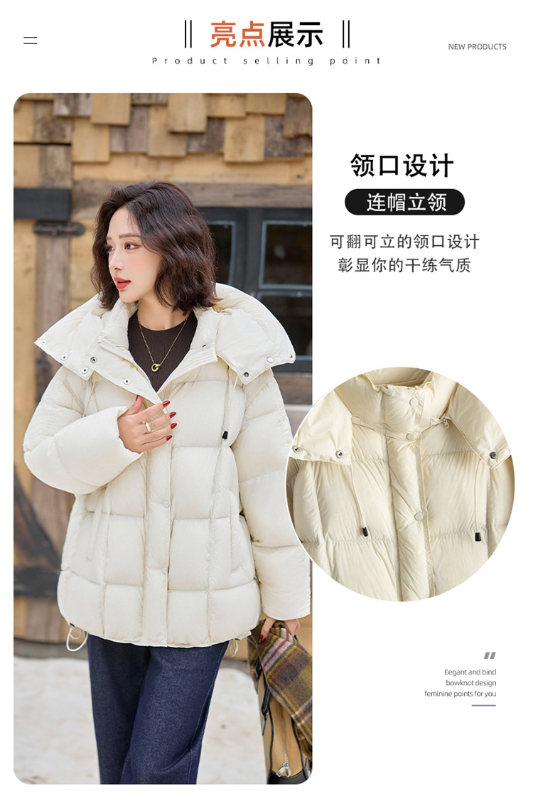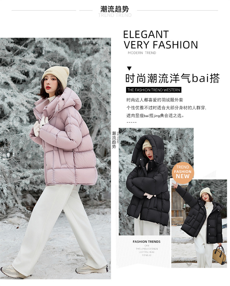 HR SYY8811休闲风羽绒服连帽宽松加厚白鸭绒泡芙羽绒外套