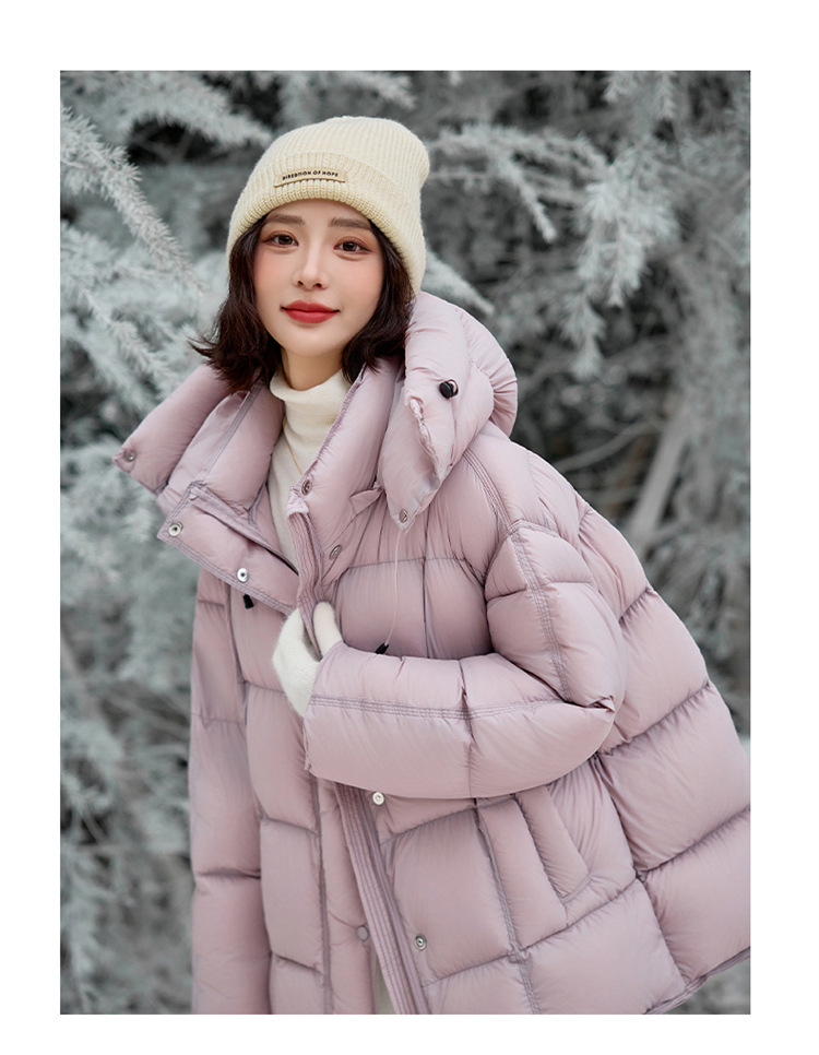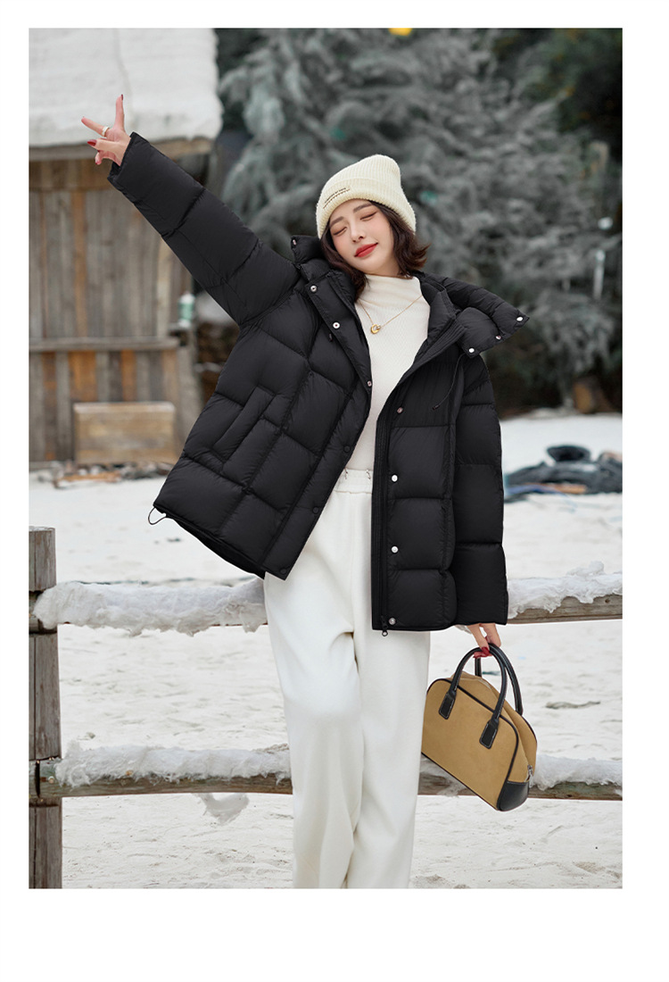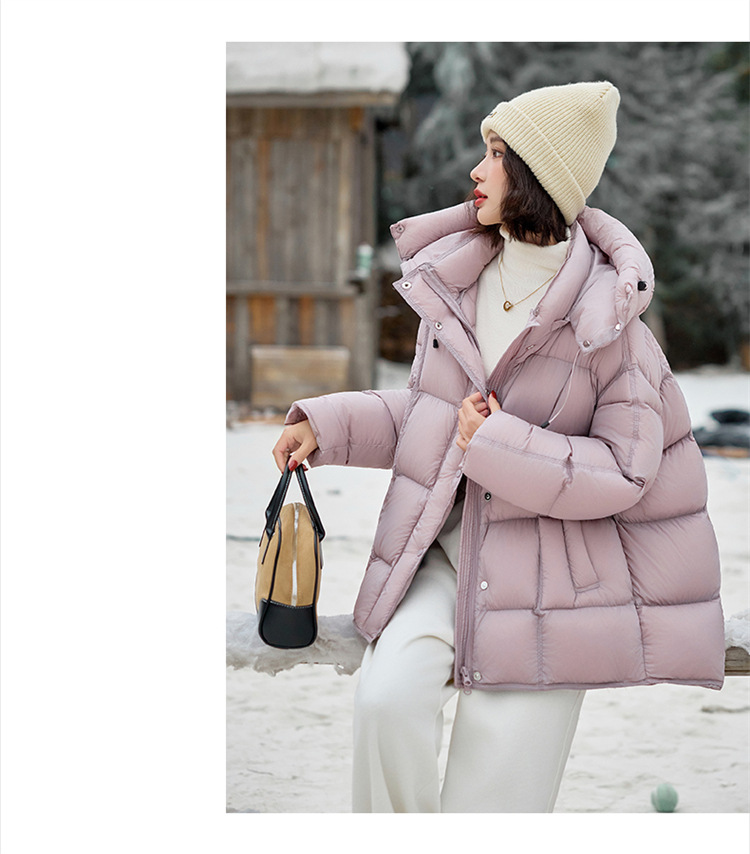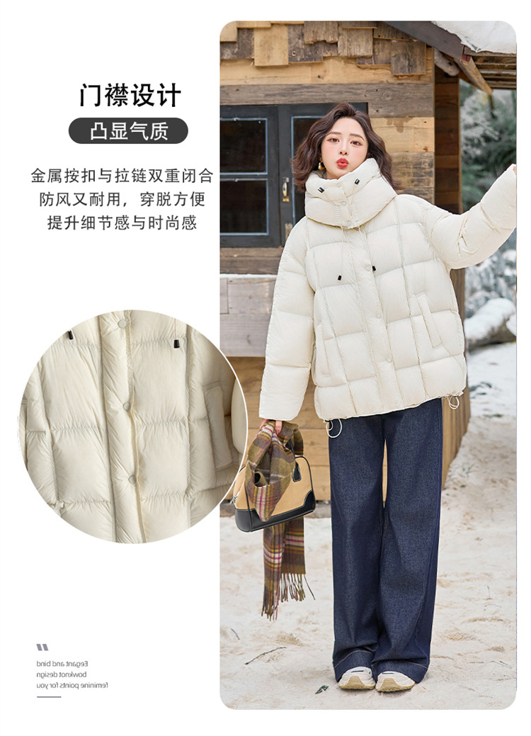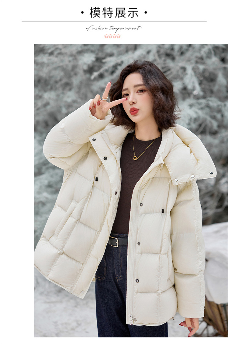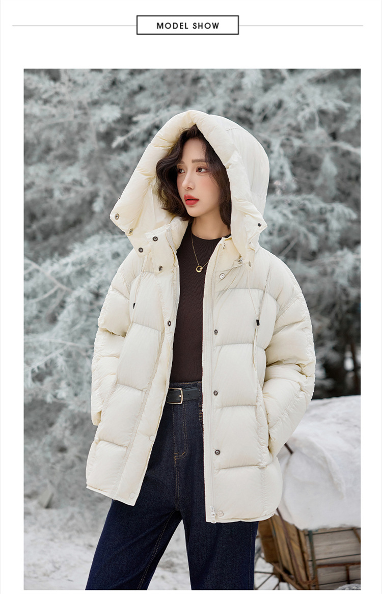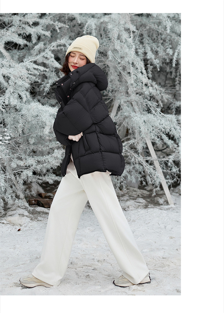 HR SYY8811休闲风羽绒服连帽宽松加厚白鸭绒泡芙羽绒外套