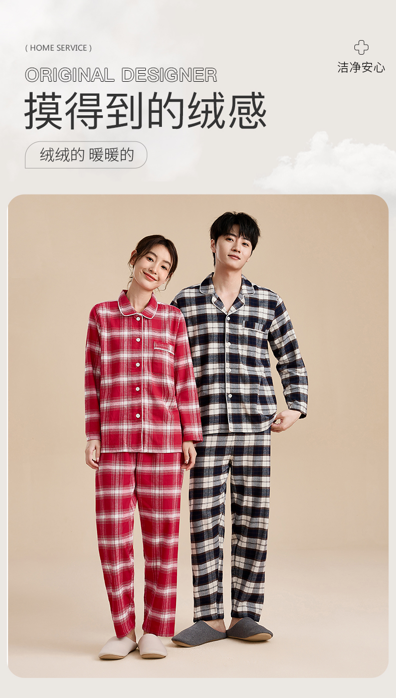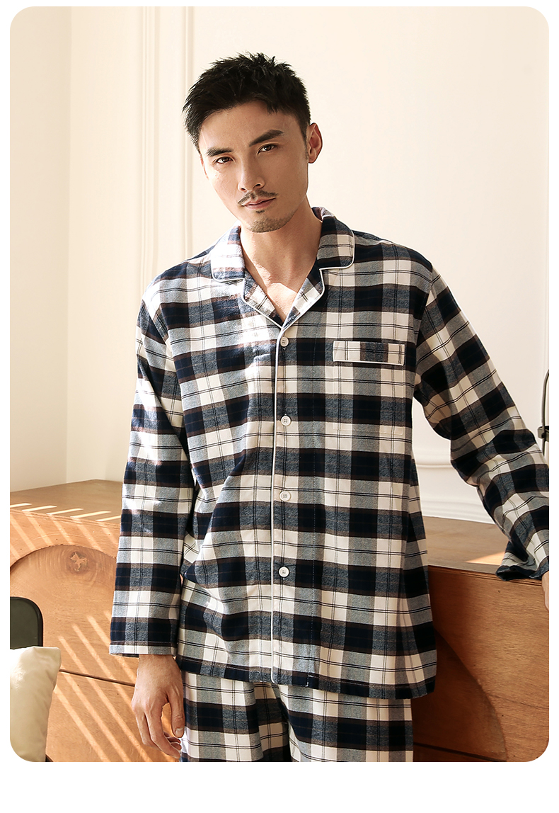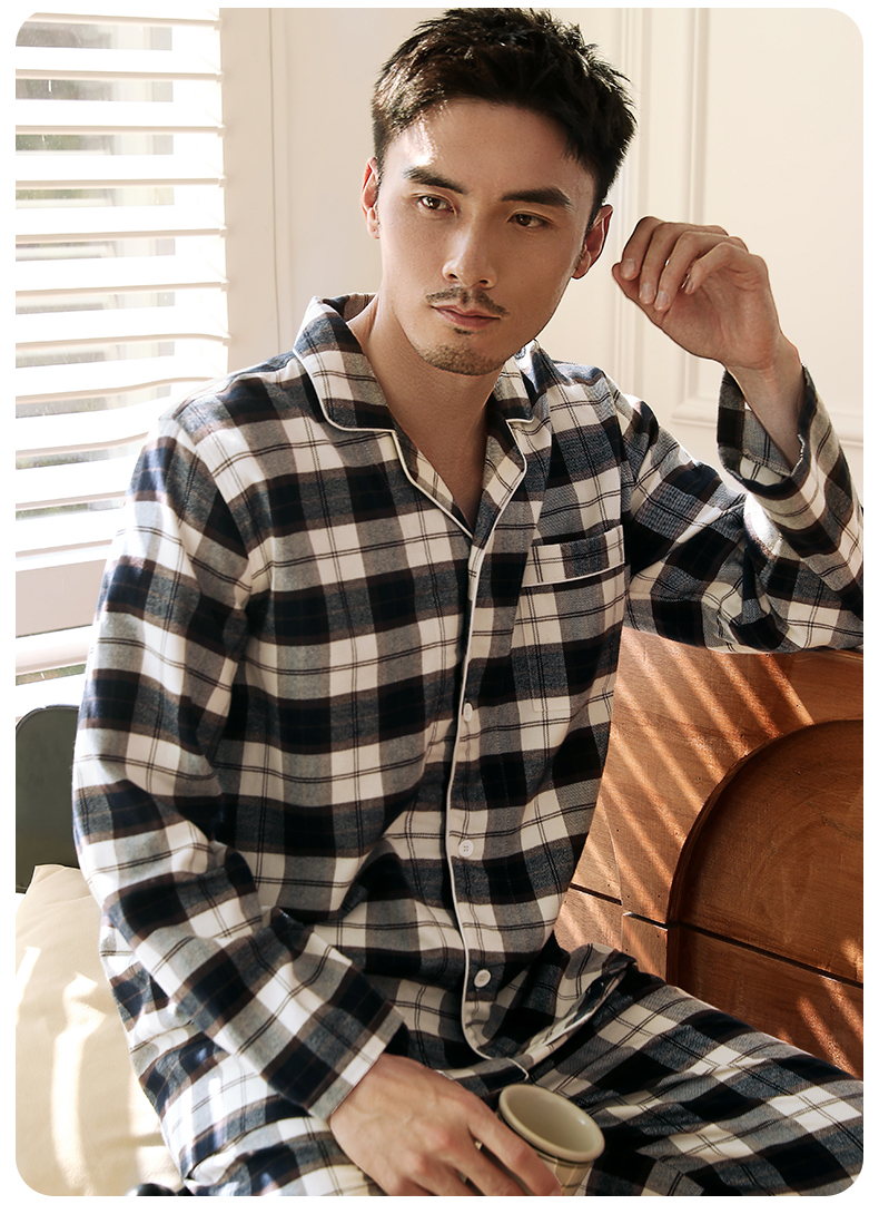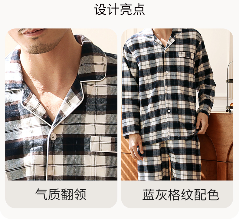 康妮雅男士睡衣秋冬款长袖长裤开襟套装