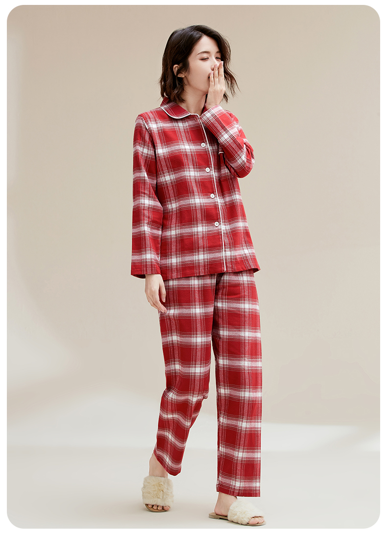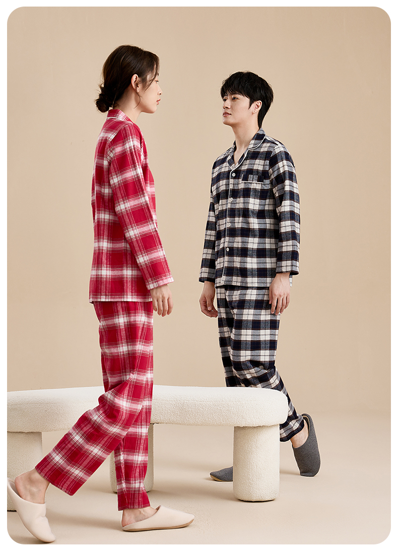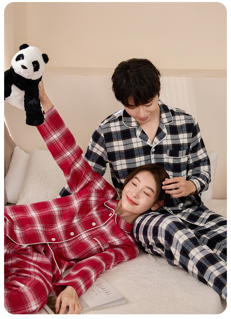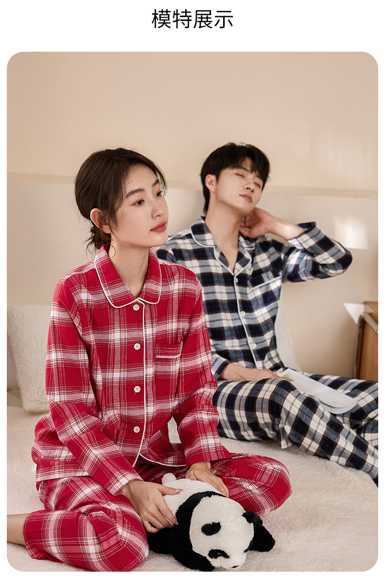康妮雅男士睡衣秋冬款长袖长裤开襟套装