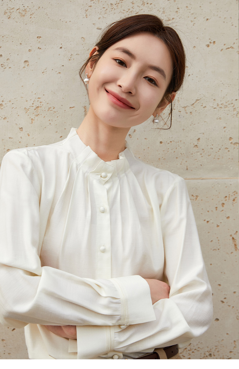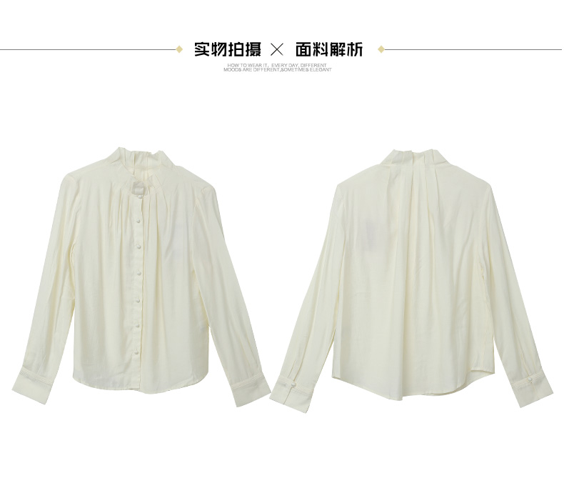 优雅通勤首选! 白色立领褶皱衬衫,尽显知性气质