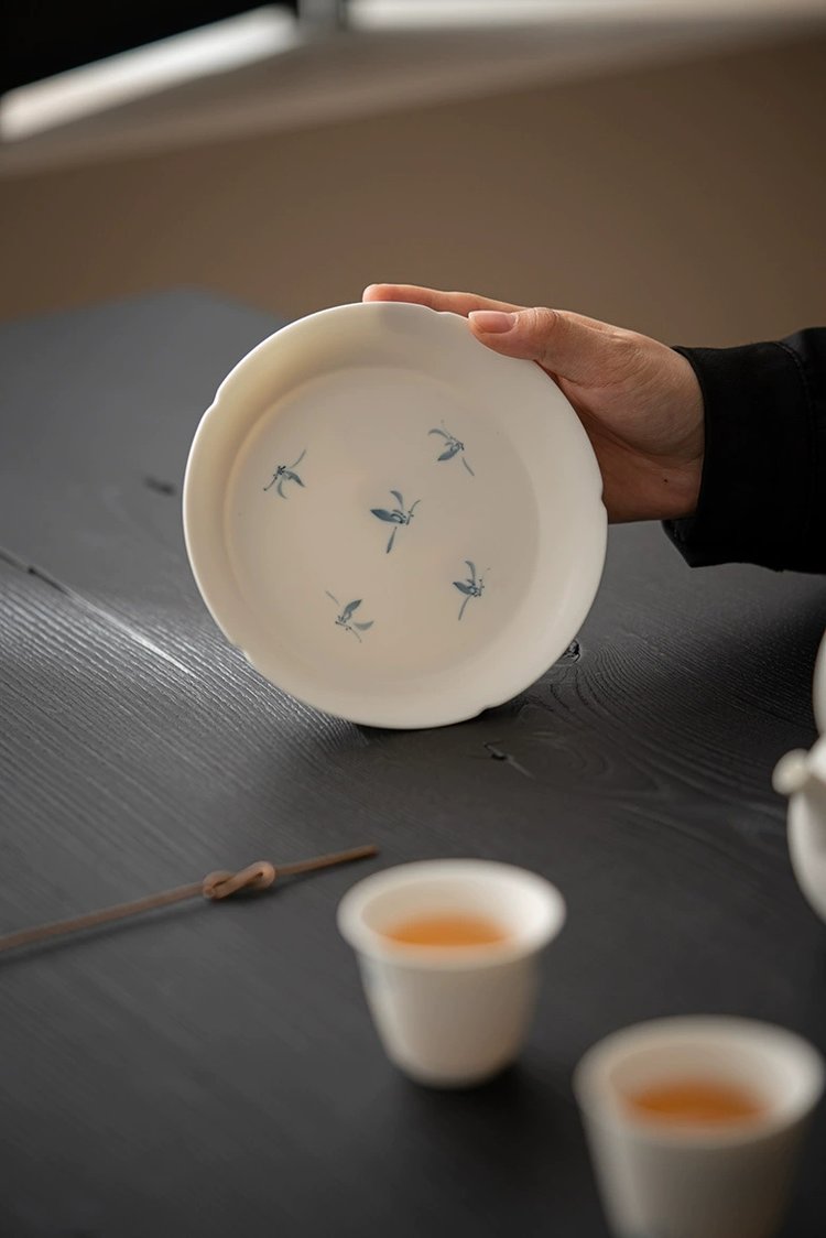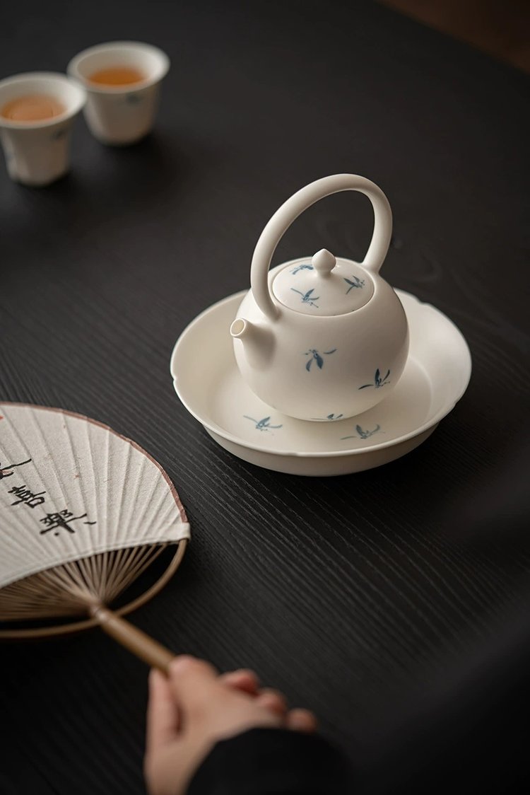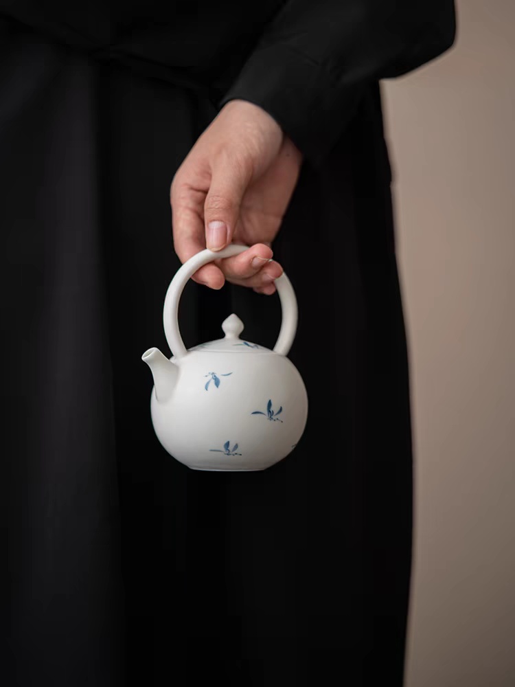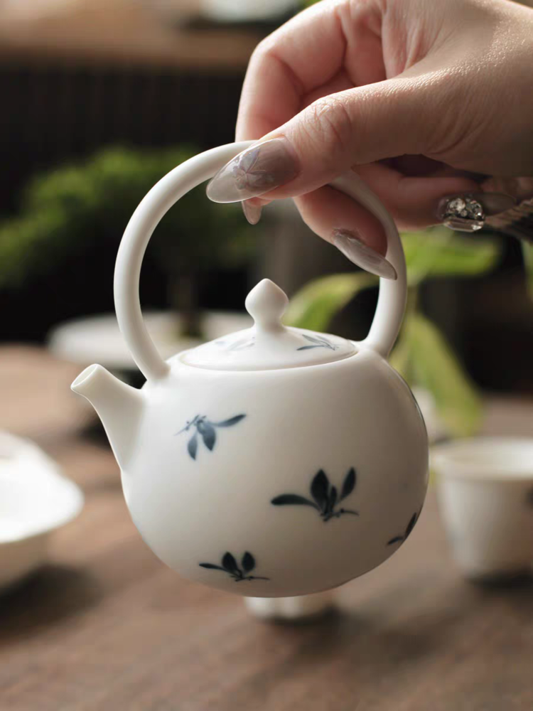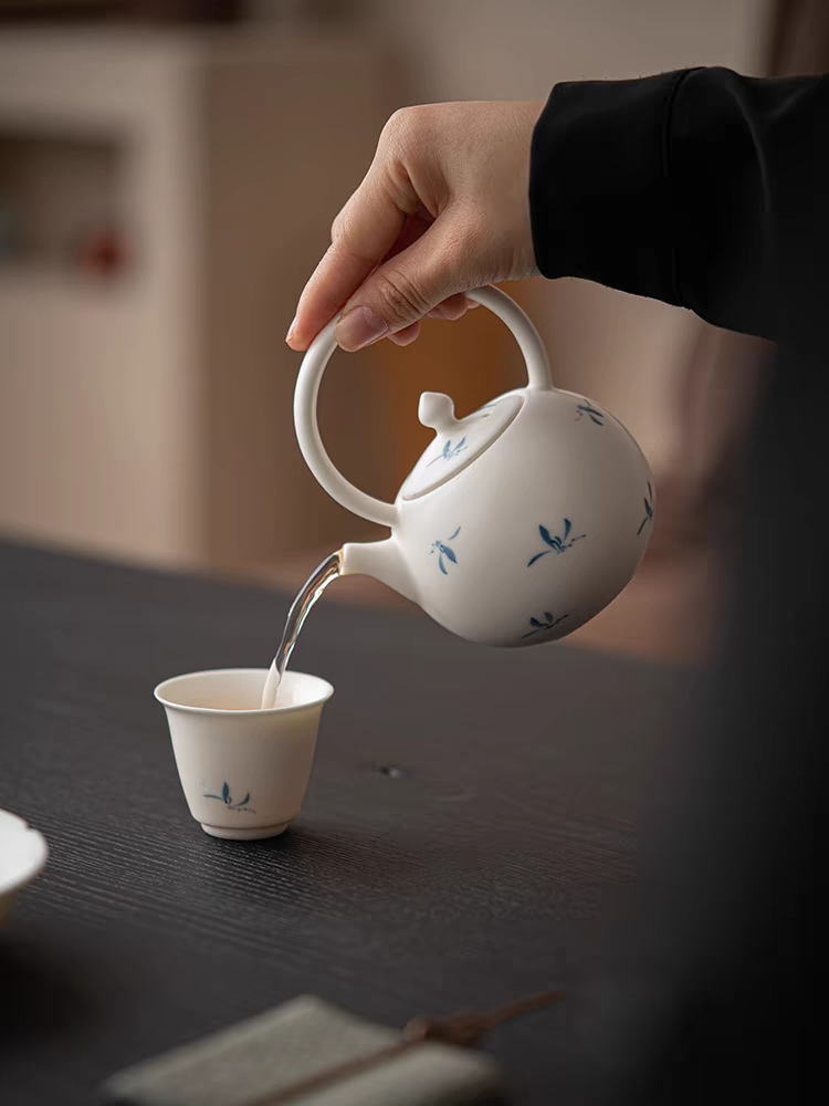 【秋水兰花羊脂玉瓷手绘茶具】匠人手绘雅致秋水兰花,宋时风雅,茶客至宝!
