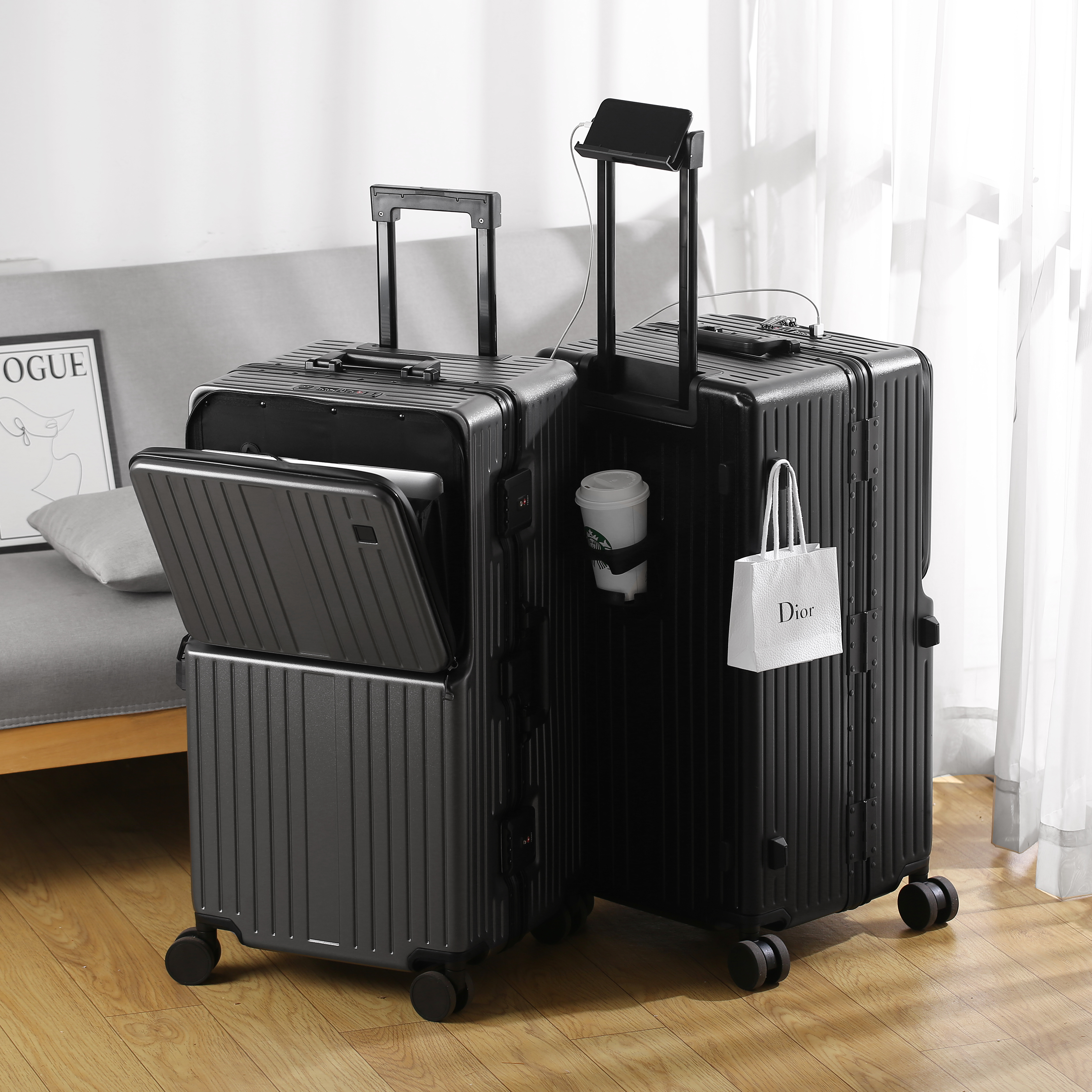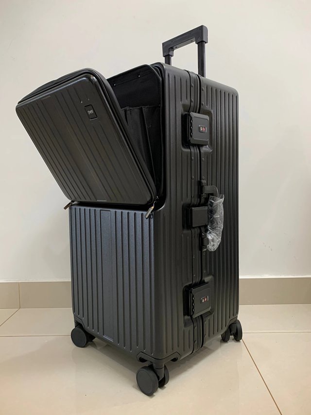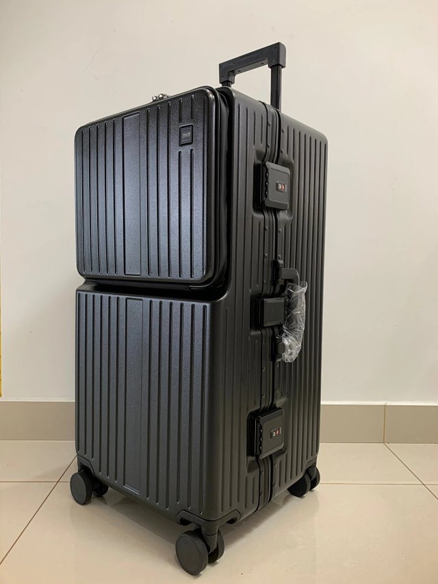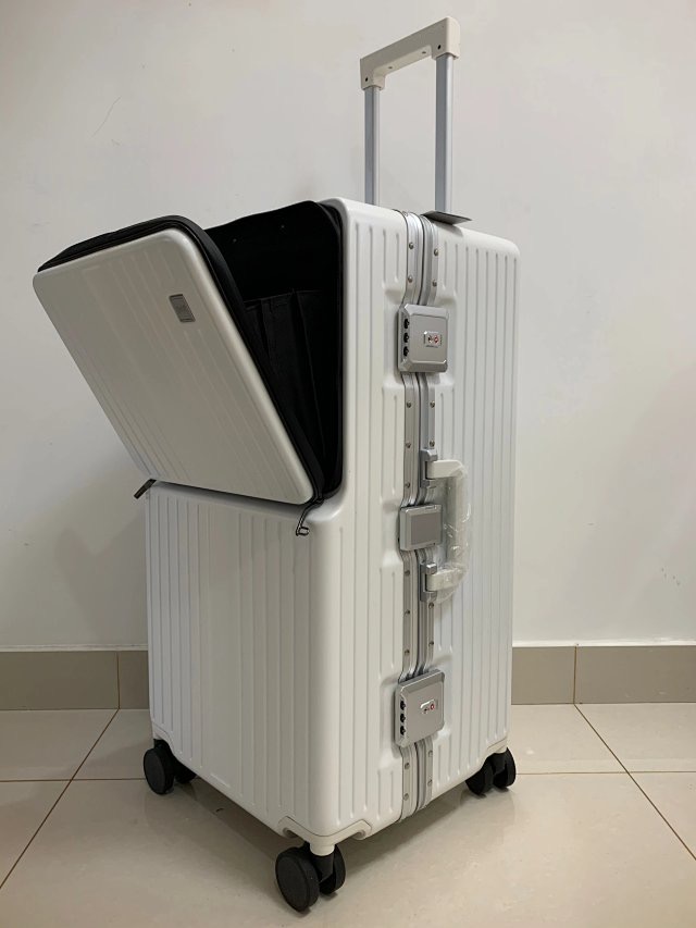 不是工厂订单的瑕疵处理品,是正品分享,每个箱子都送品牌的配套箱套!多功能铝框开口箱,箱体加厚,容量比同尺寸箱子多20%。前开口设计,存取电脑等小物品超方便,轻松过安检,箱子带usb充电接口和手机支架,候车也可轻松充电刷手机,解放双手。
