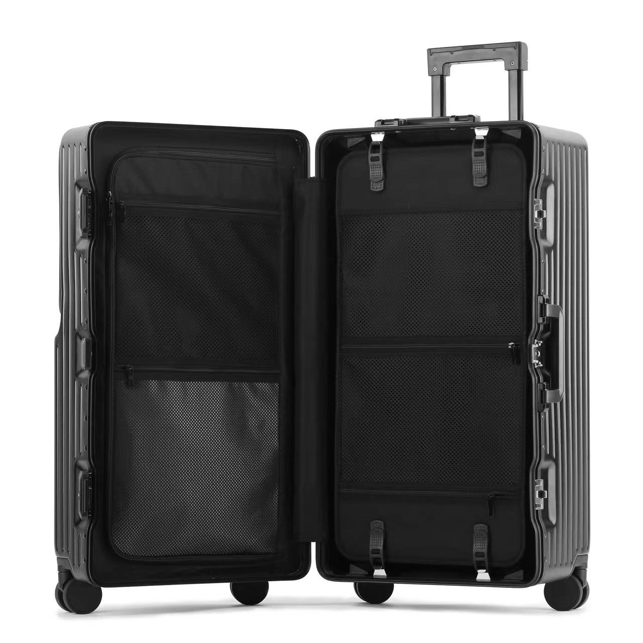 德国品牌romivo usb充电 多功能铝框开口箱行李箱 多20%容量 高档铝合金拉杆 超静音万向轮