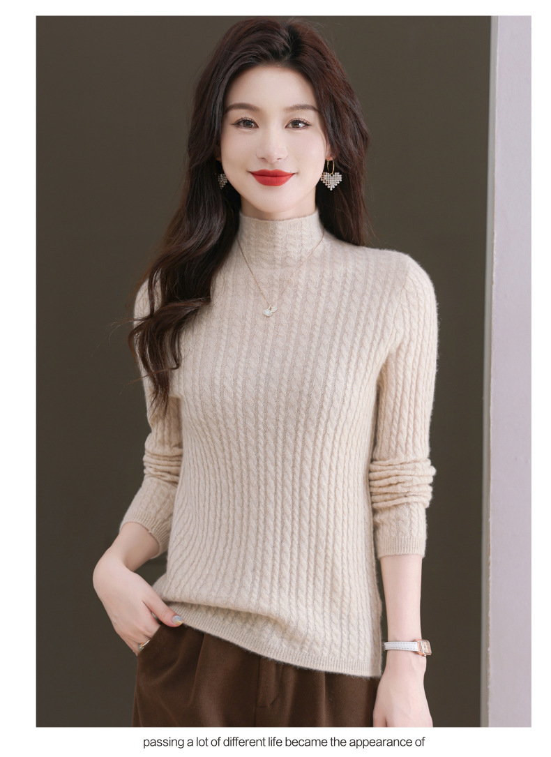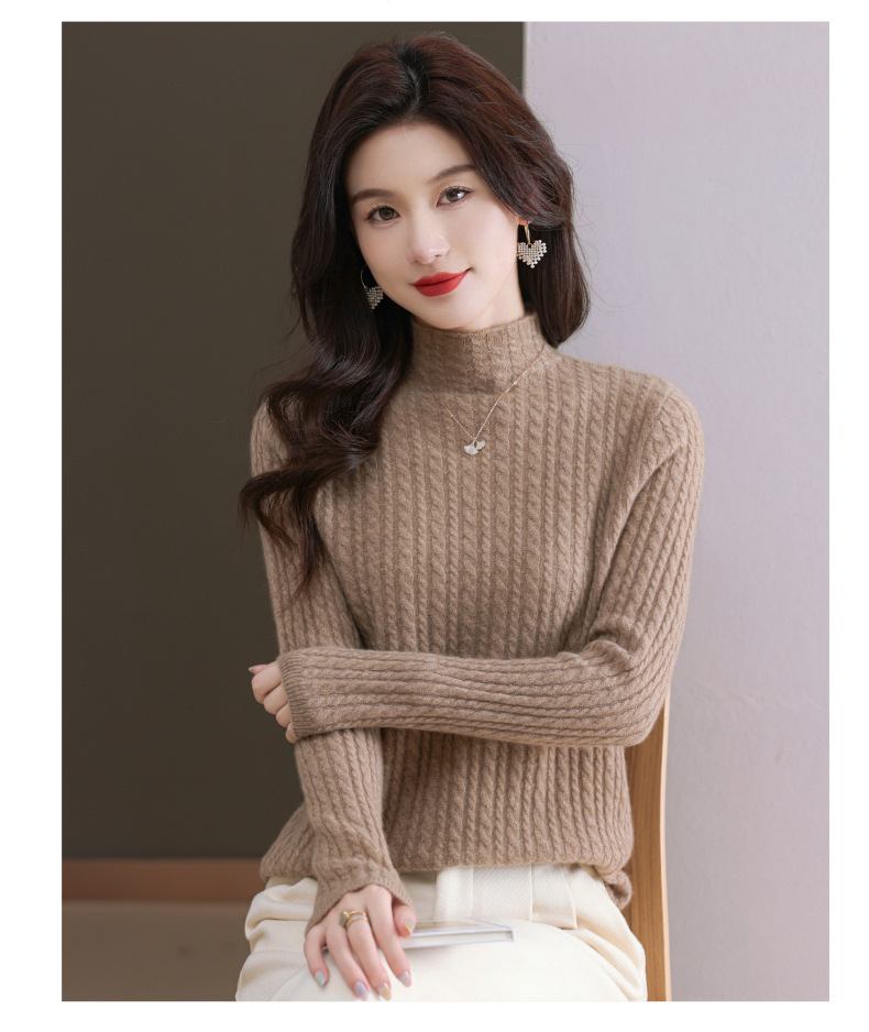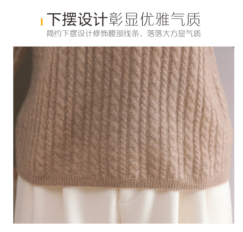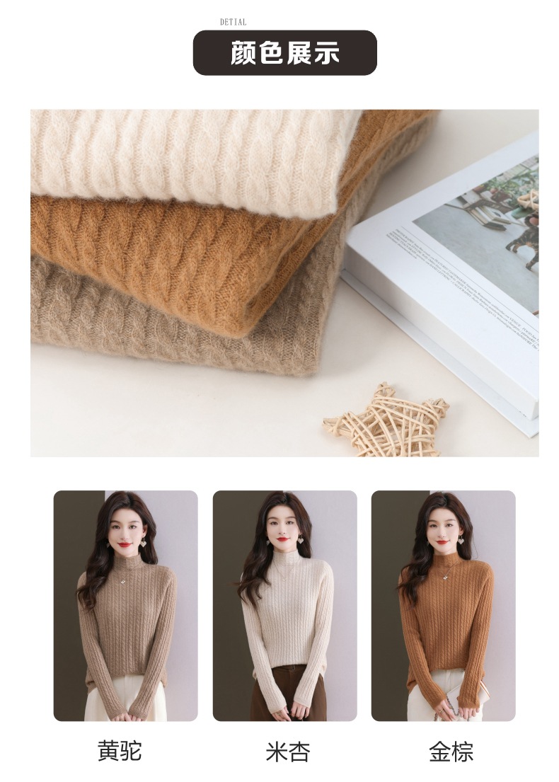 CC-101-546秋冬保暖100羊绒衫女半高领麻花毛衣时尚百搭套头针织打底衫