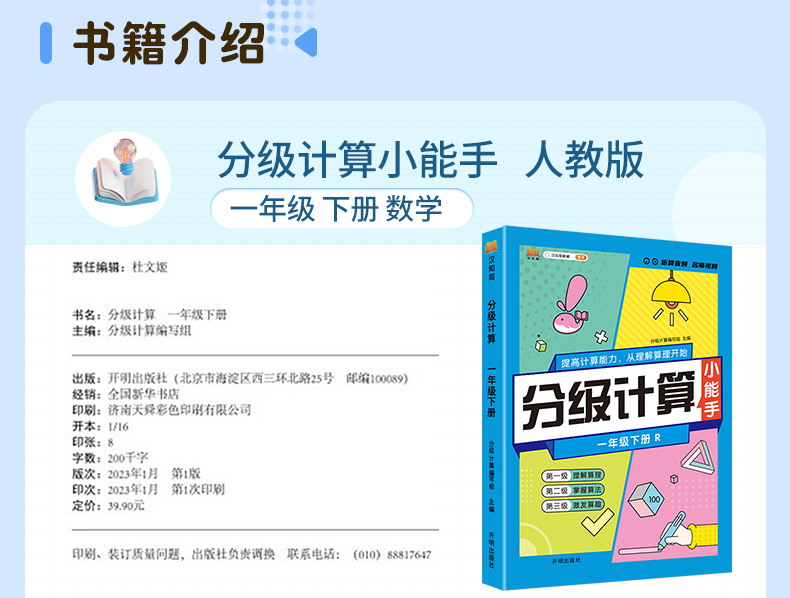 数学分级计算小能手123456下册(年级任选)R人教版口算计算专项