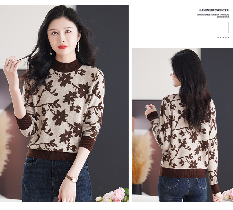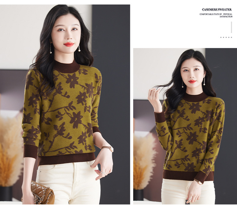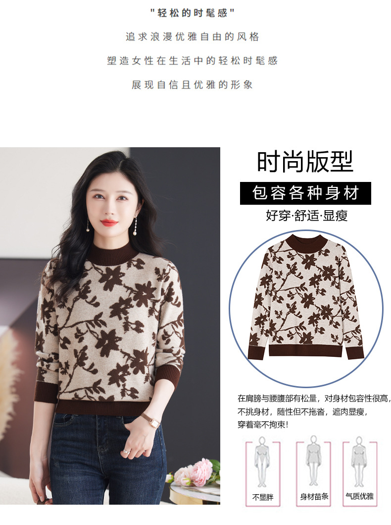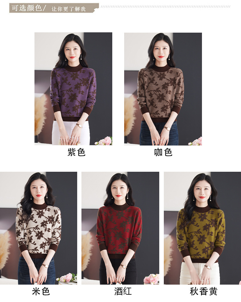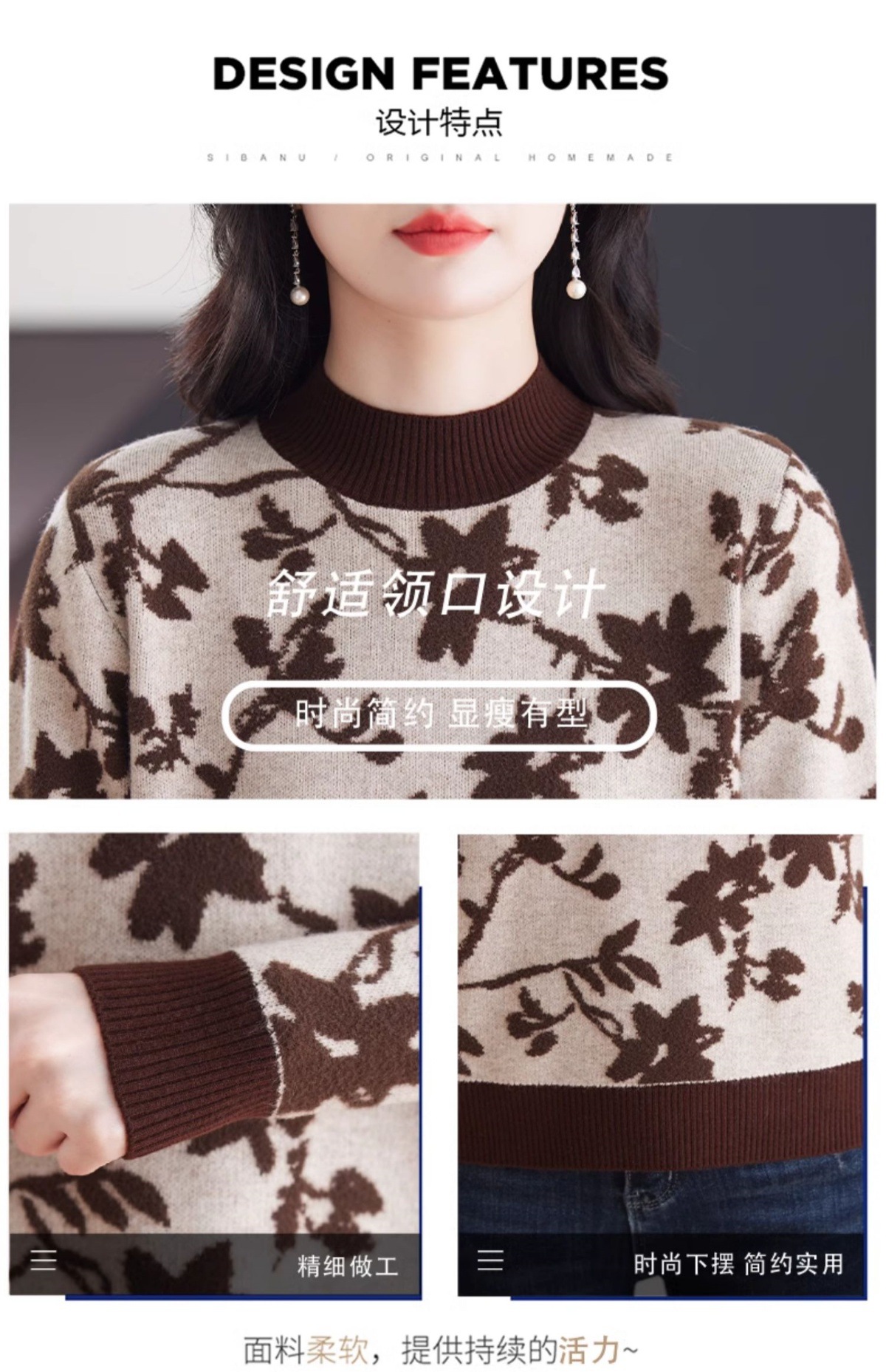 CC-103-7928半高领毛衣女秋冬2024年新款内搭洋气宽松针织衫打底上衣