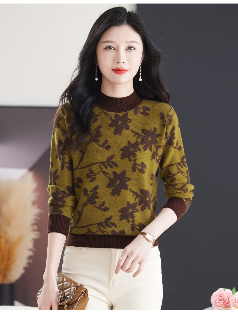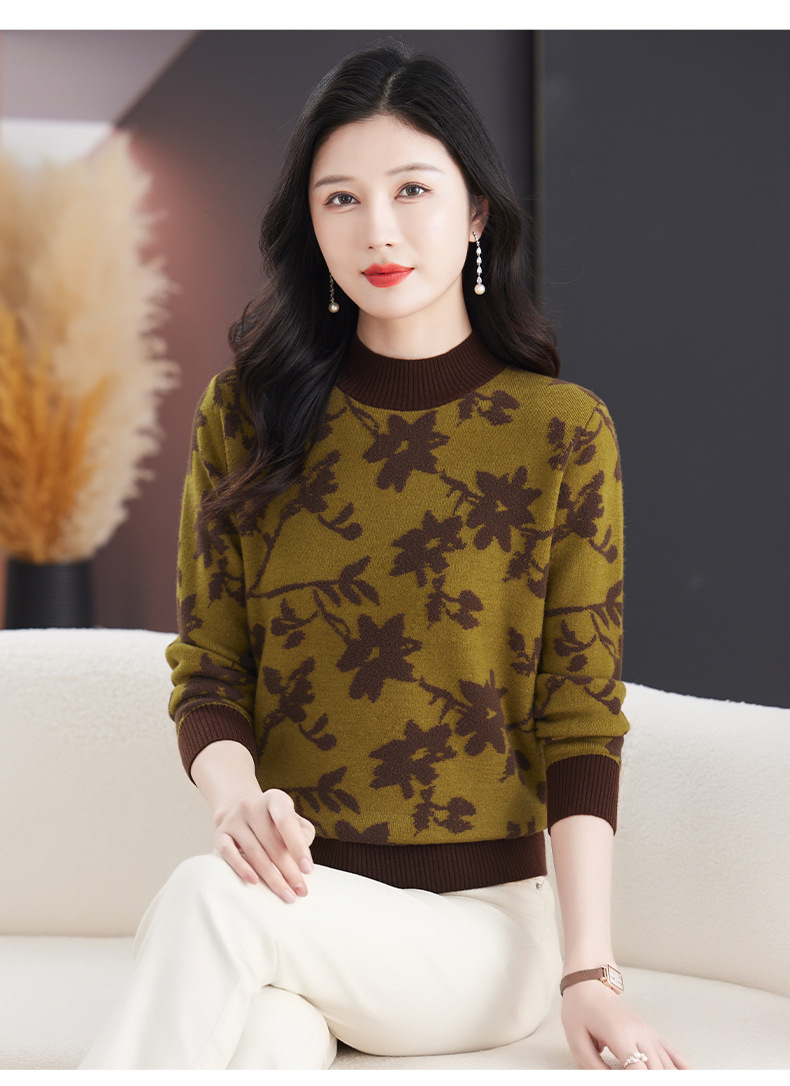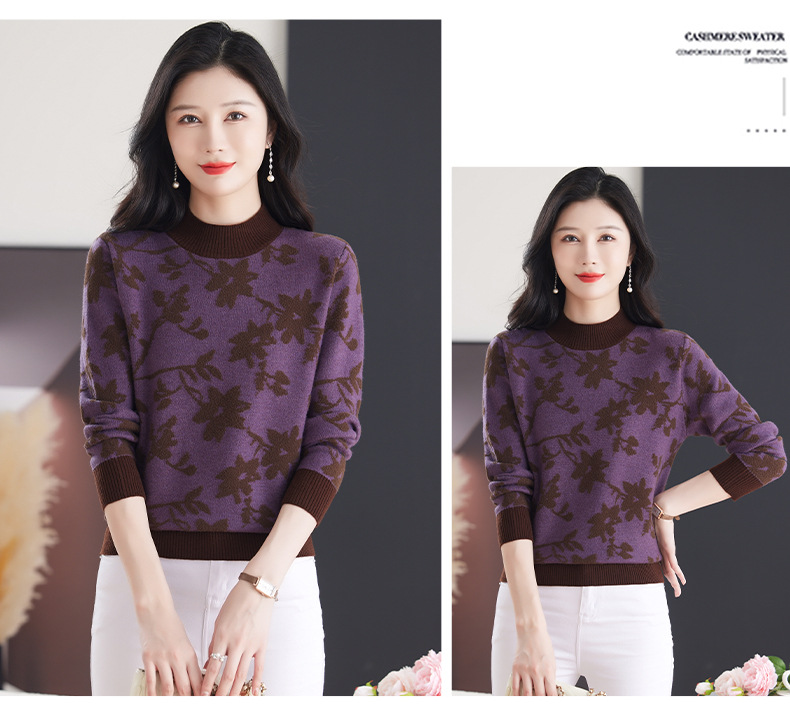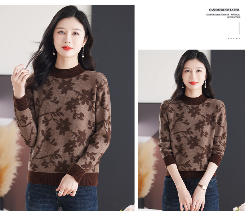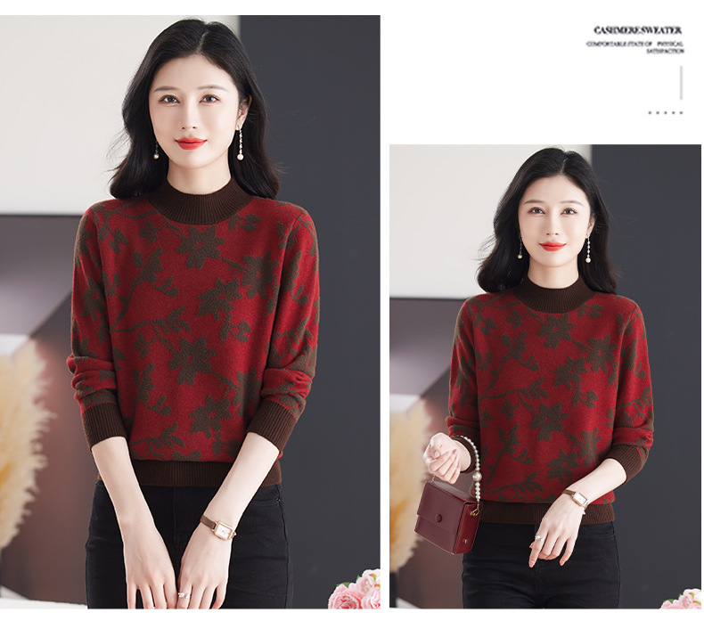 CC-103-7928半高领毛衣女秋冬2024年新款内搭洋气宽松针织衫打底上衣