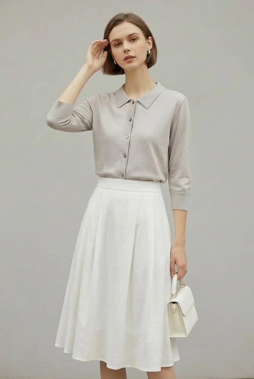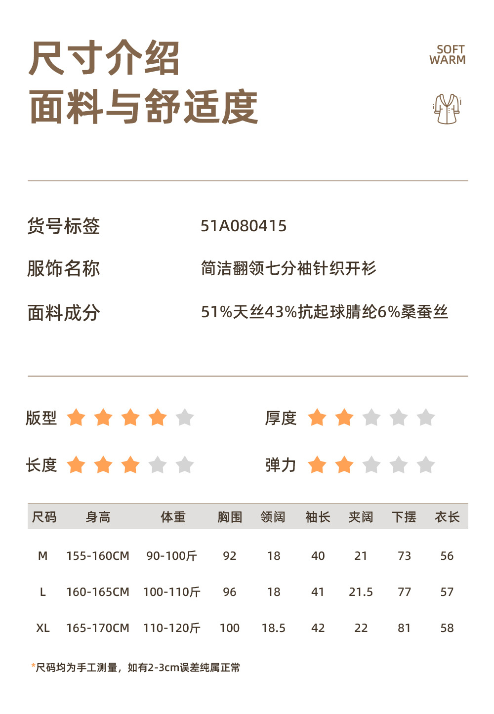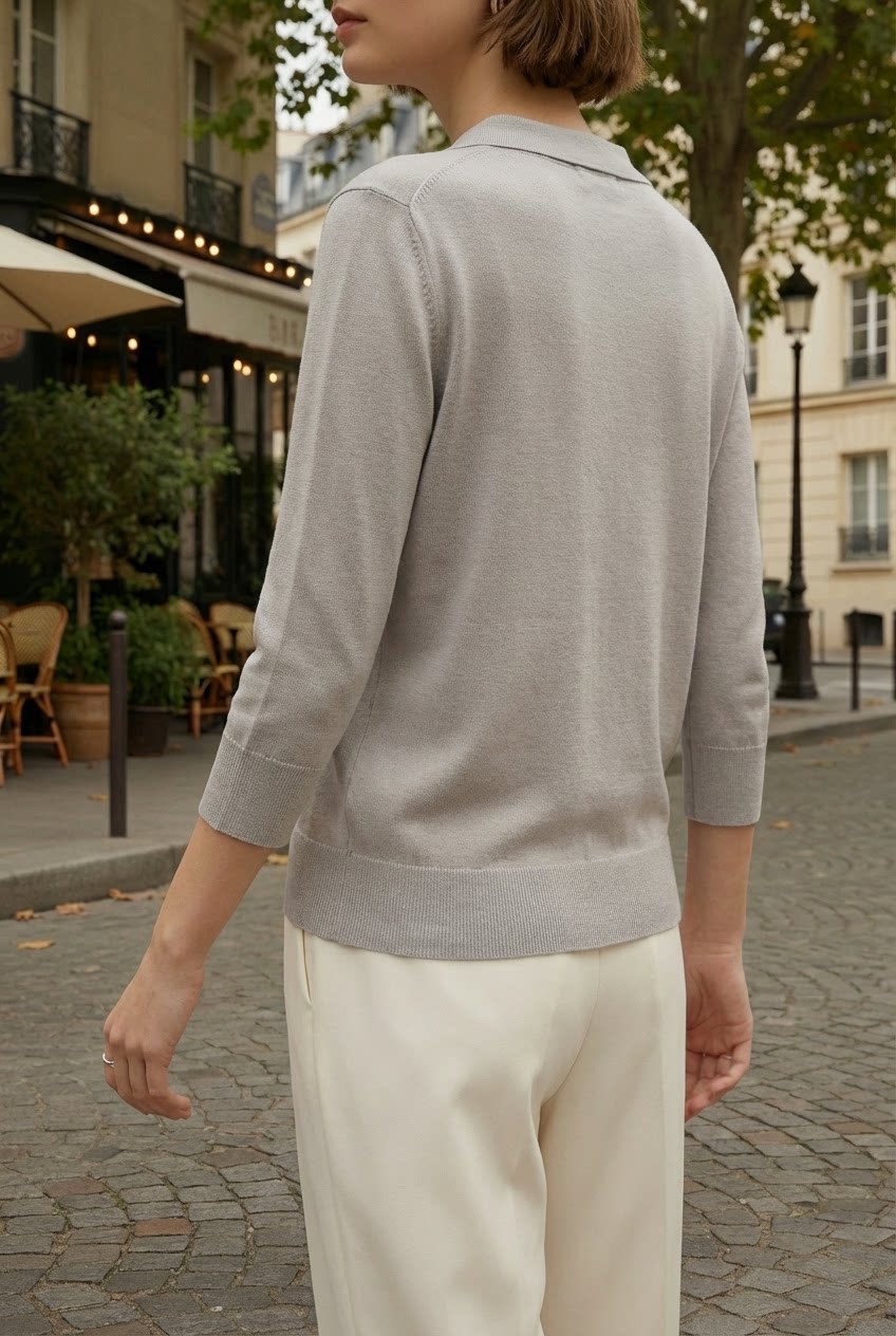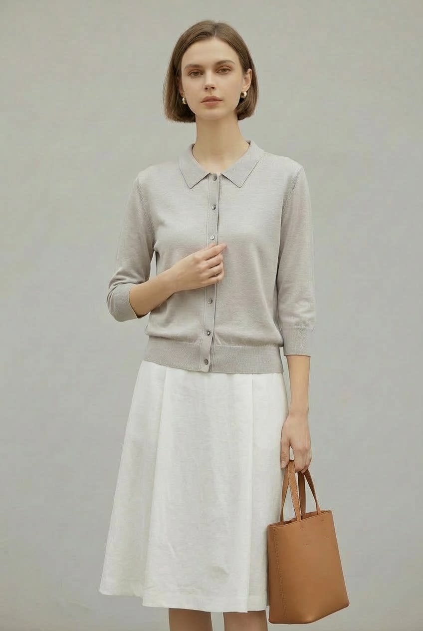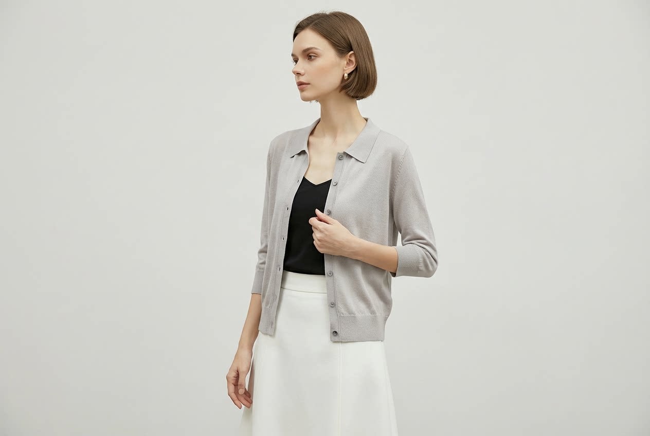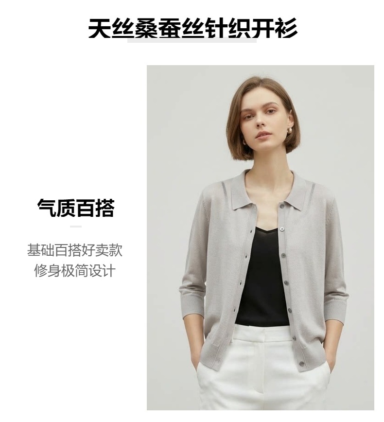 「自」全新升级【铂金会员247/天猫329/差价82】(13827)洛诗琳气质天丝翻领七分袖开衫2026新款春季修身百搭针织上衣