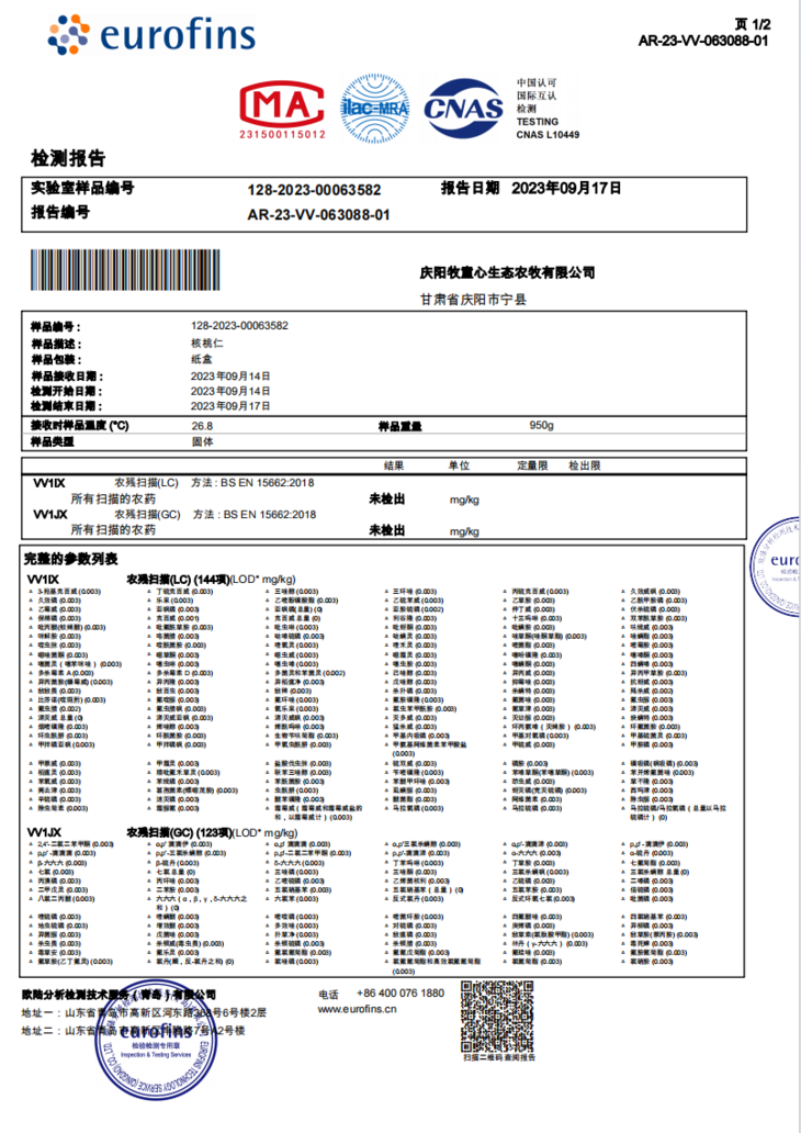 以上所有食材除了核桃仁暂未上架外,其他的食材都长期在绿家店铺上有售。所以核桃仁也单独做了一个农残检测(267项农残未检出),详细如下。