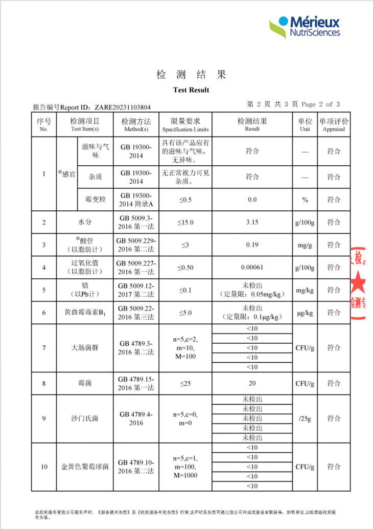 在原料安全且可溯源的基础上,加工环节也不可马虎,为此我们在正式批量生产前对每日坚果盒成品再次打样并做了型检,以下为完整的检测报告。
