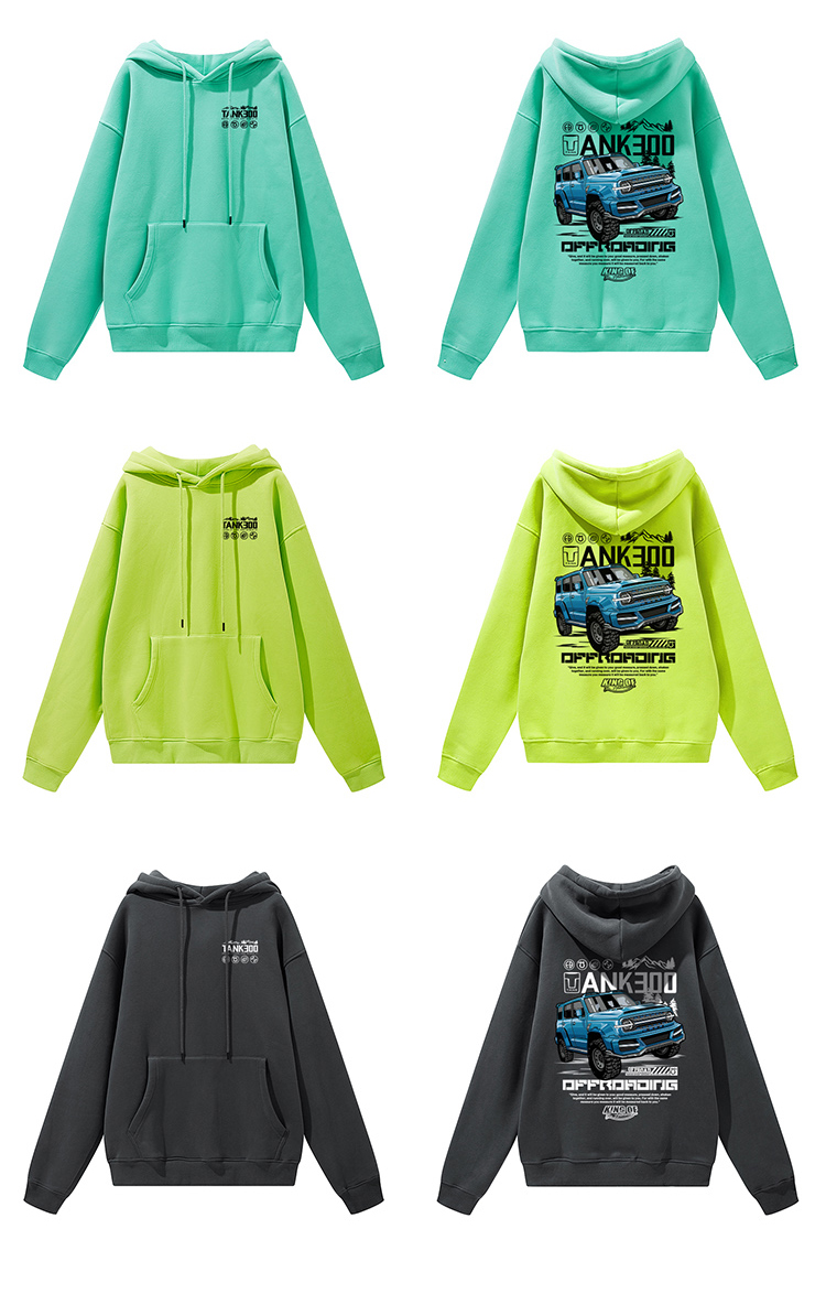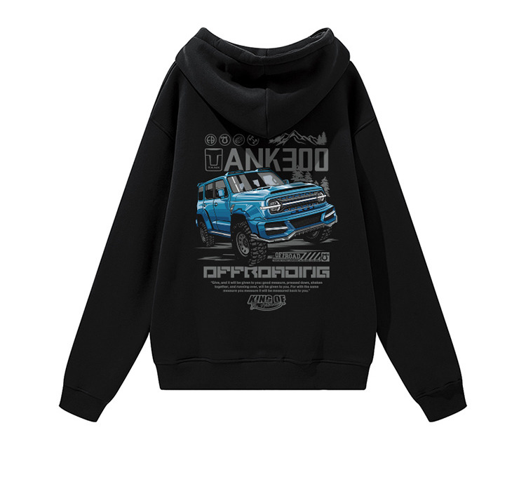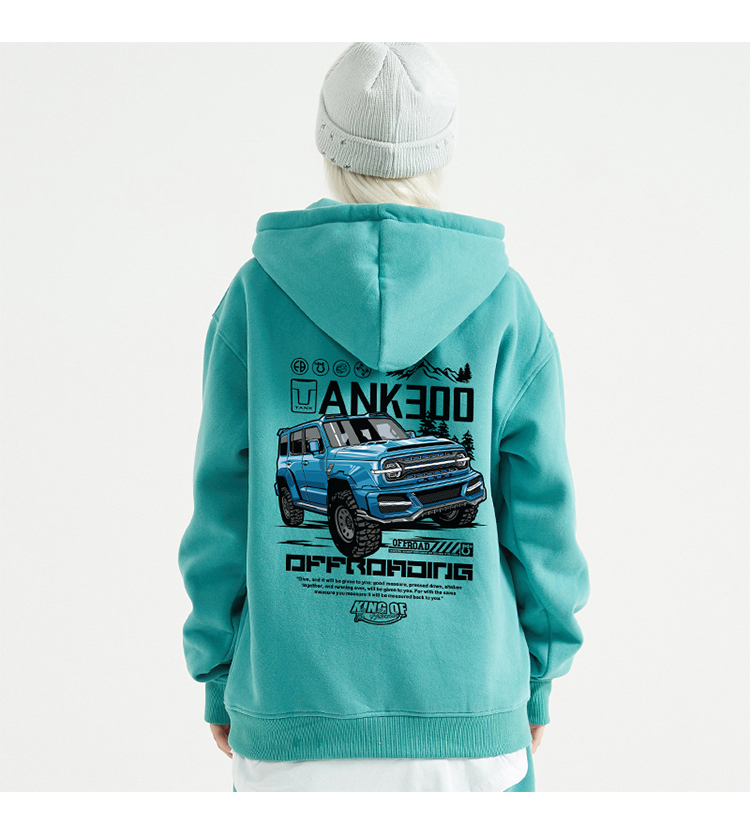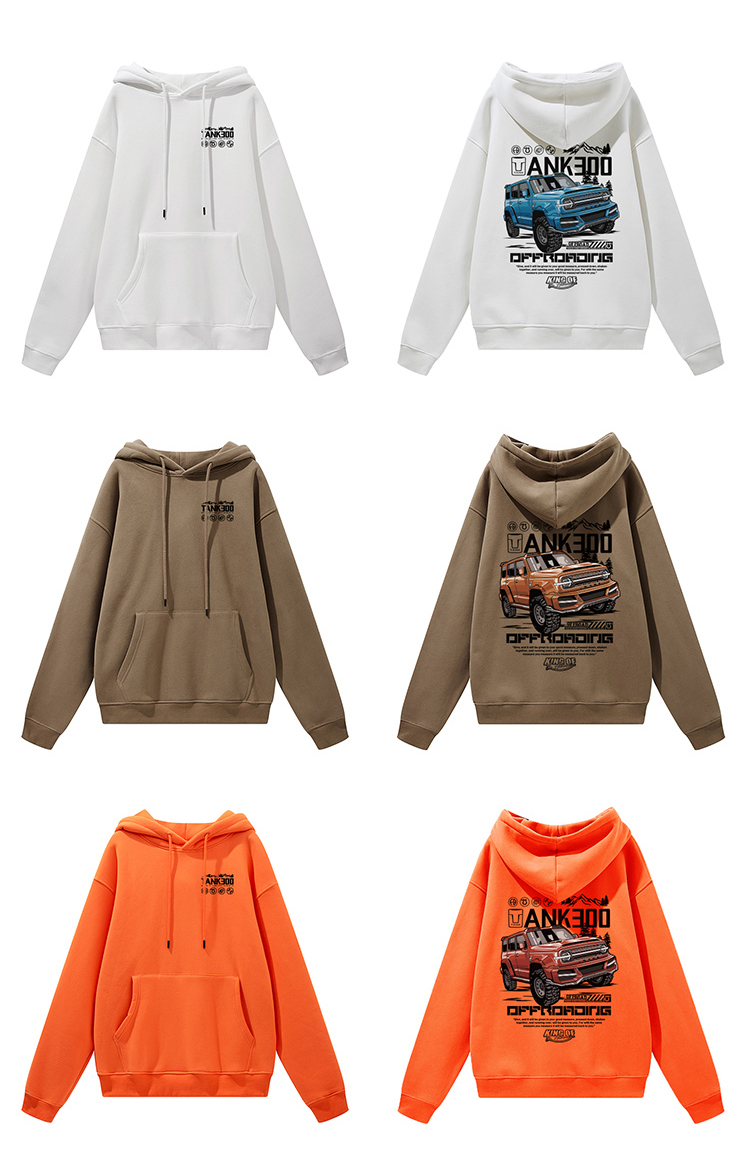 自由基地秋冬新款tank300坦克团印花带帽抓绒套头卫衣潮流保暖衣 NMT-2081