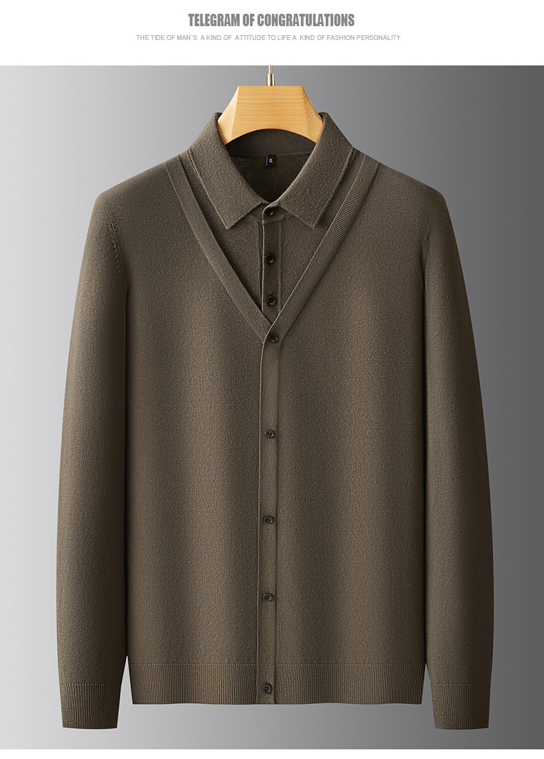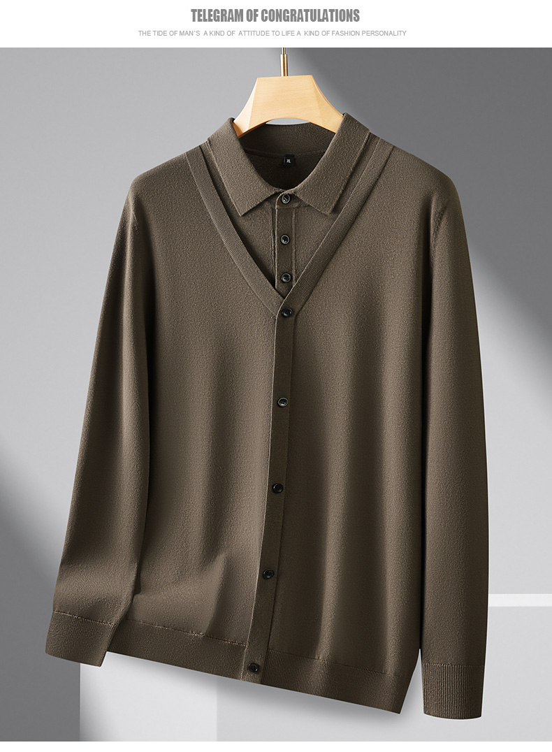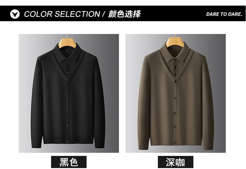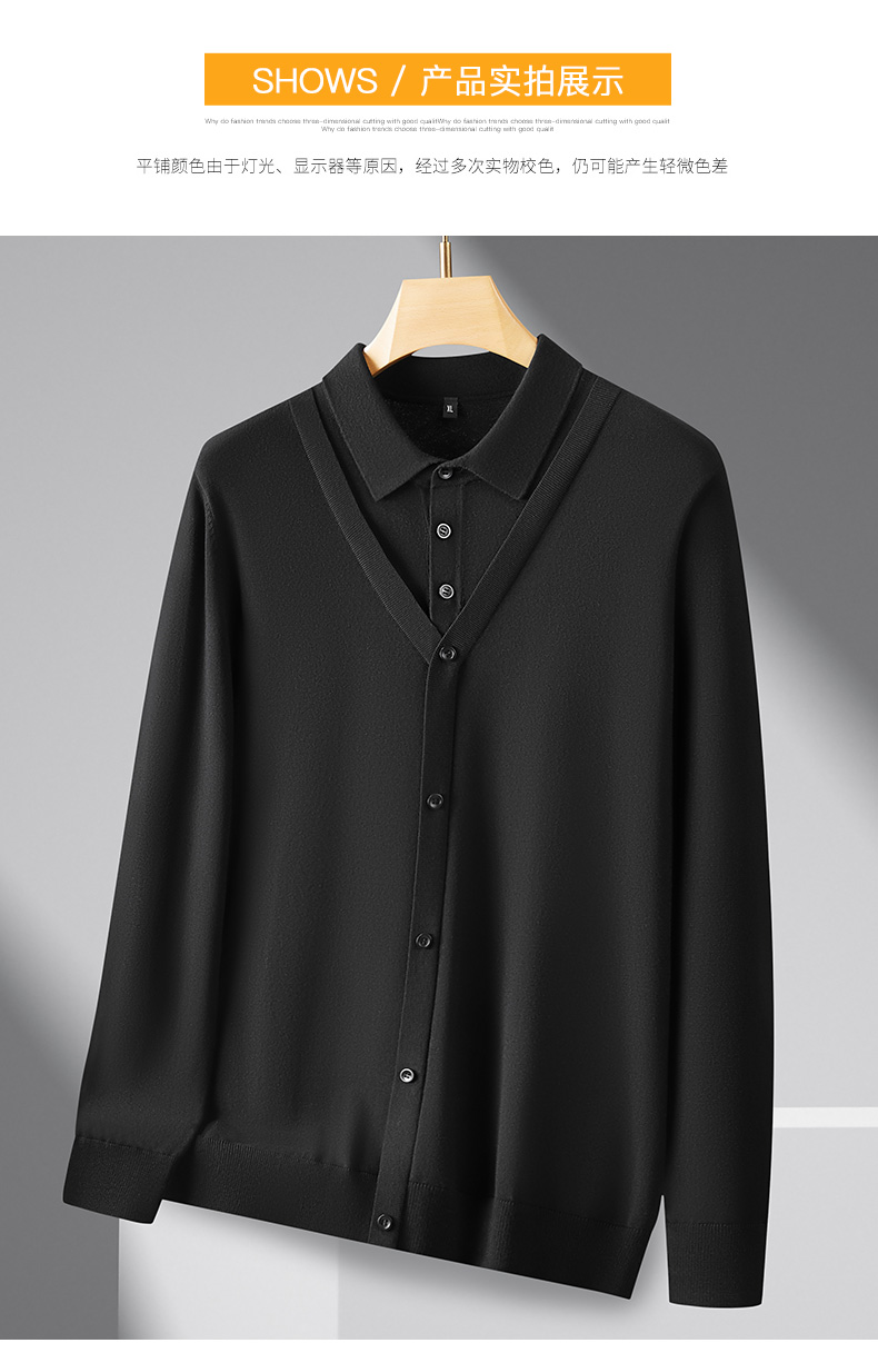 【Q】【假两件】【新款DPF】大依优型大码假两件长袖T恤衬衫领加肥加大肥佬休闲商务宽松透气上衣打底