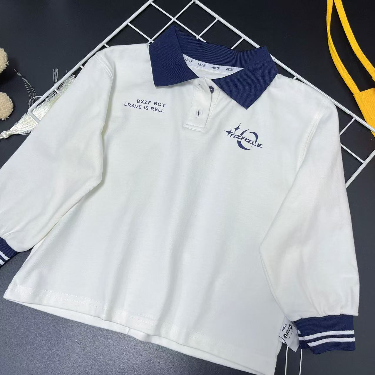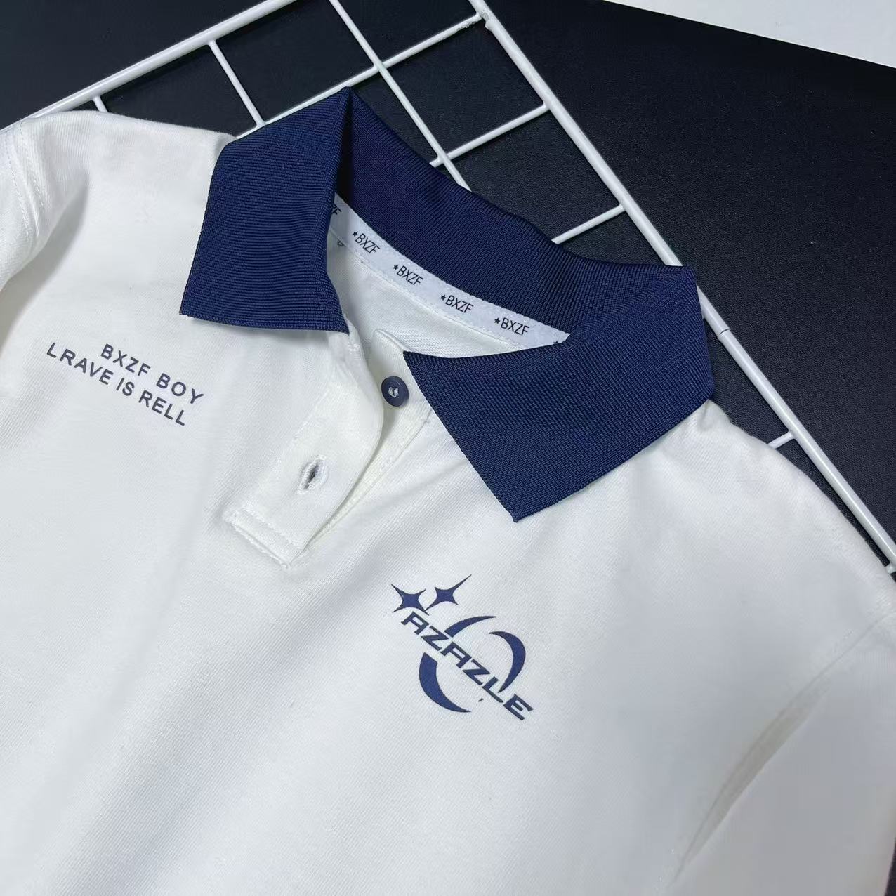 瑕疵【小资范】3202 100%棉藏青拼色POLO衫-喜出