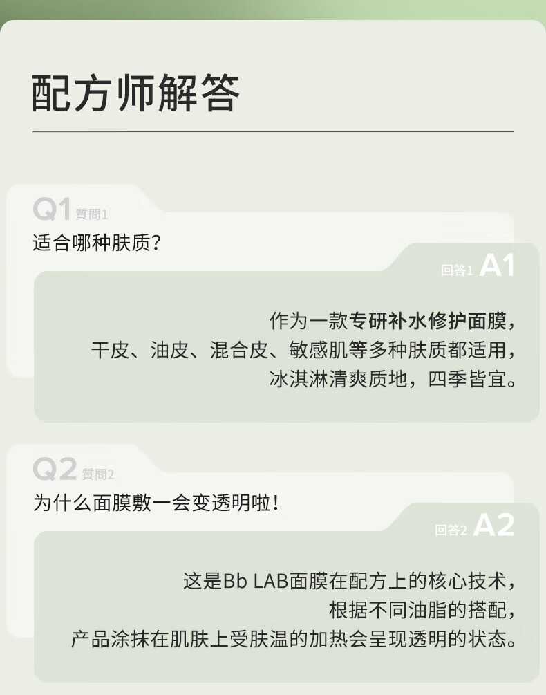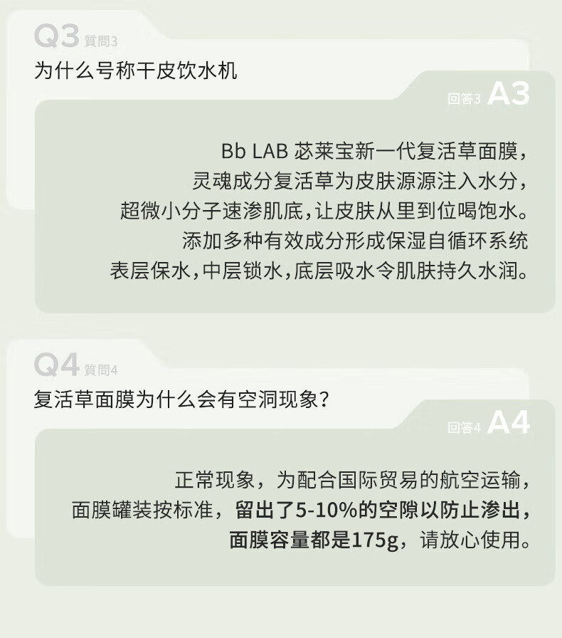 BB LABORATORIES苾莱宝 复活草植萃水润修护面膜 涂抹式 敏感肌可用 新版 2.0版 复活草面膜 175g