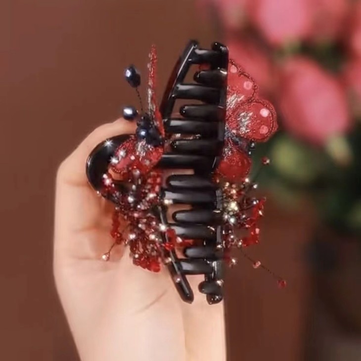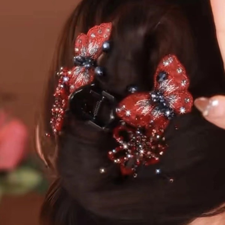 红色刺绣蝴蝶发夹盘发鲨鱼夹高端发抓 Z1122