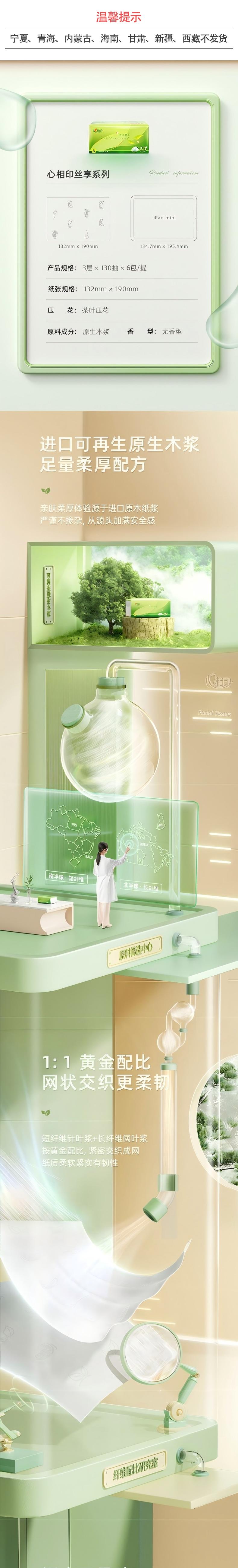 心相印 茶语丝享系列130抽三层塑装纸面巾6包(新老包装随机发货) ZXADA00740
