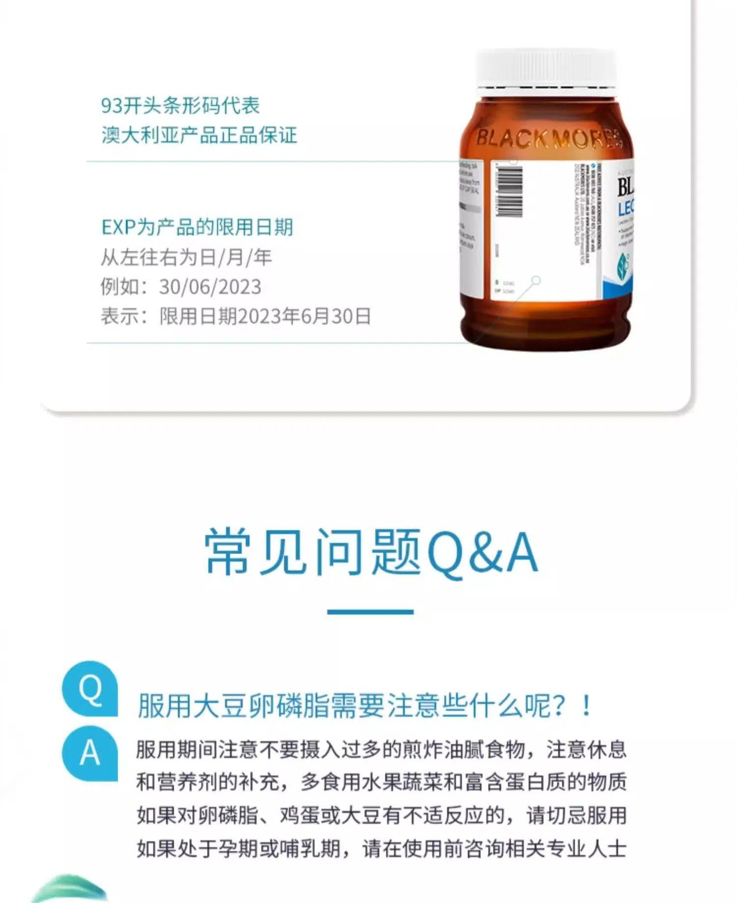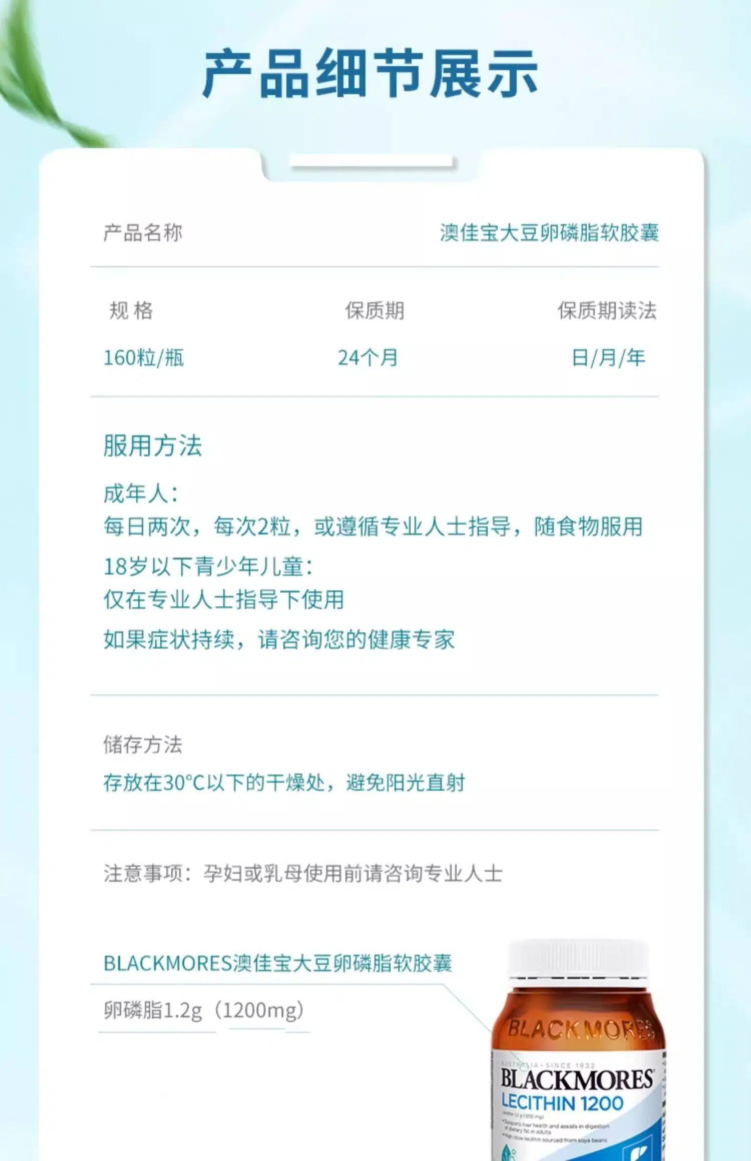 【跨境】Blackmores澳佳宝 大豆卵磷脂胶囊 1200mg 160粒/瓶
