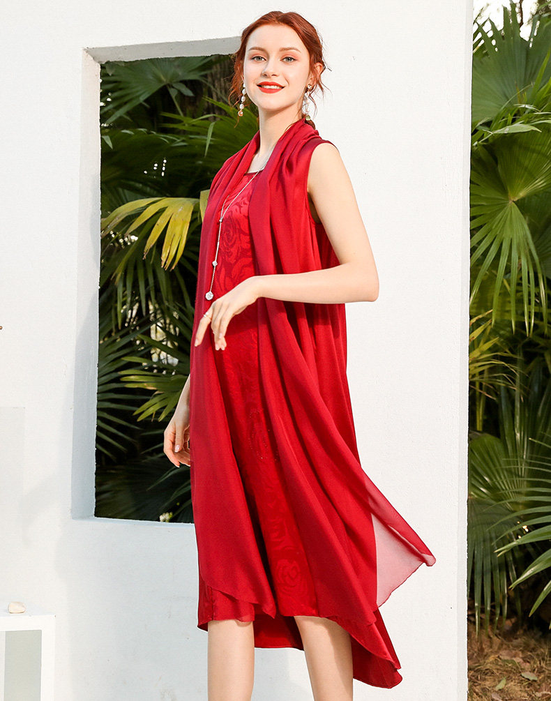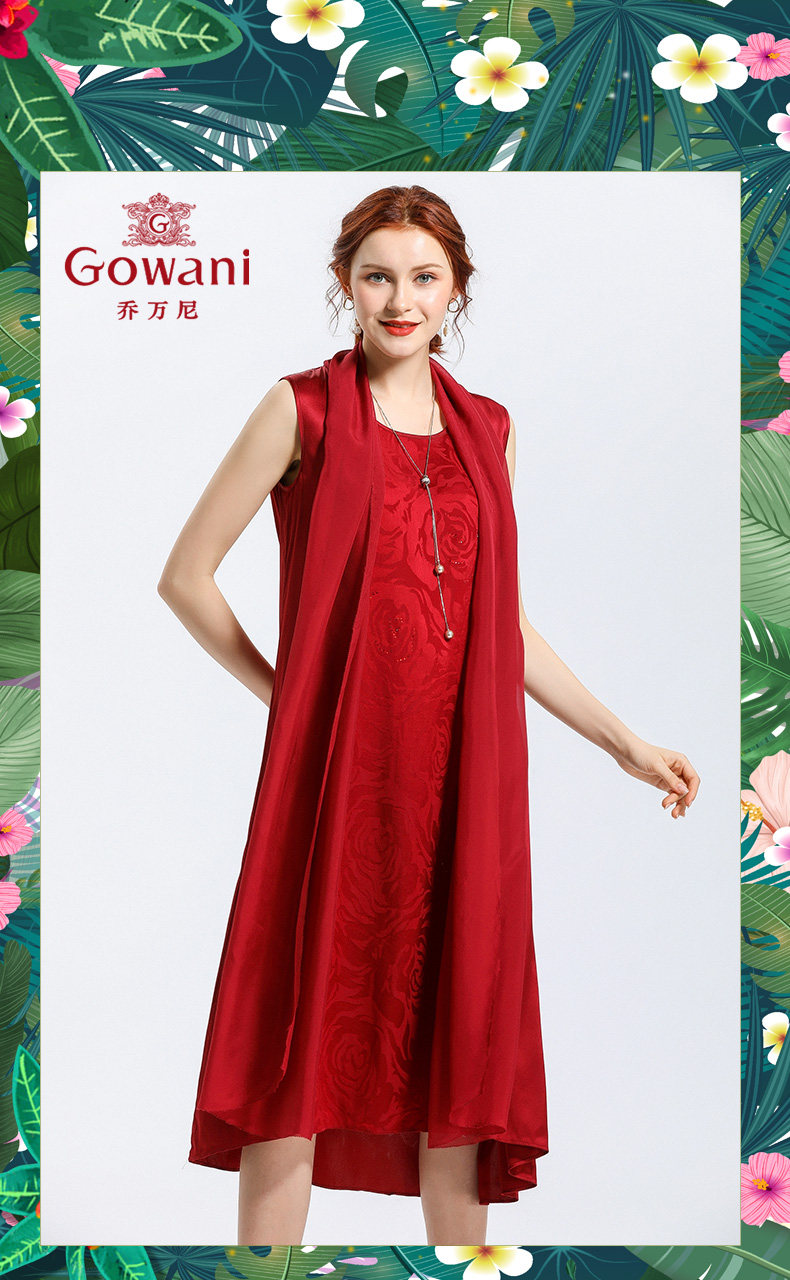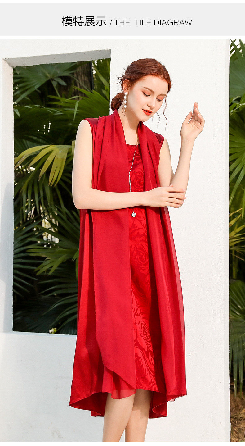 乔万尼夏季三穿法真丝中国风披肩红桑蚕丝连衣裙长款礼服EN2E543