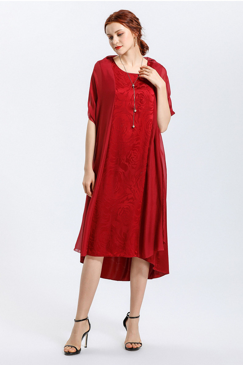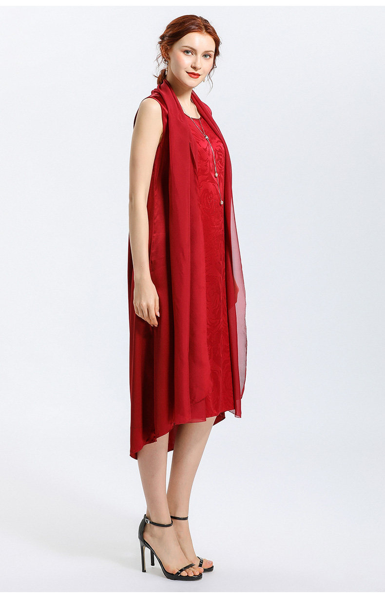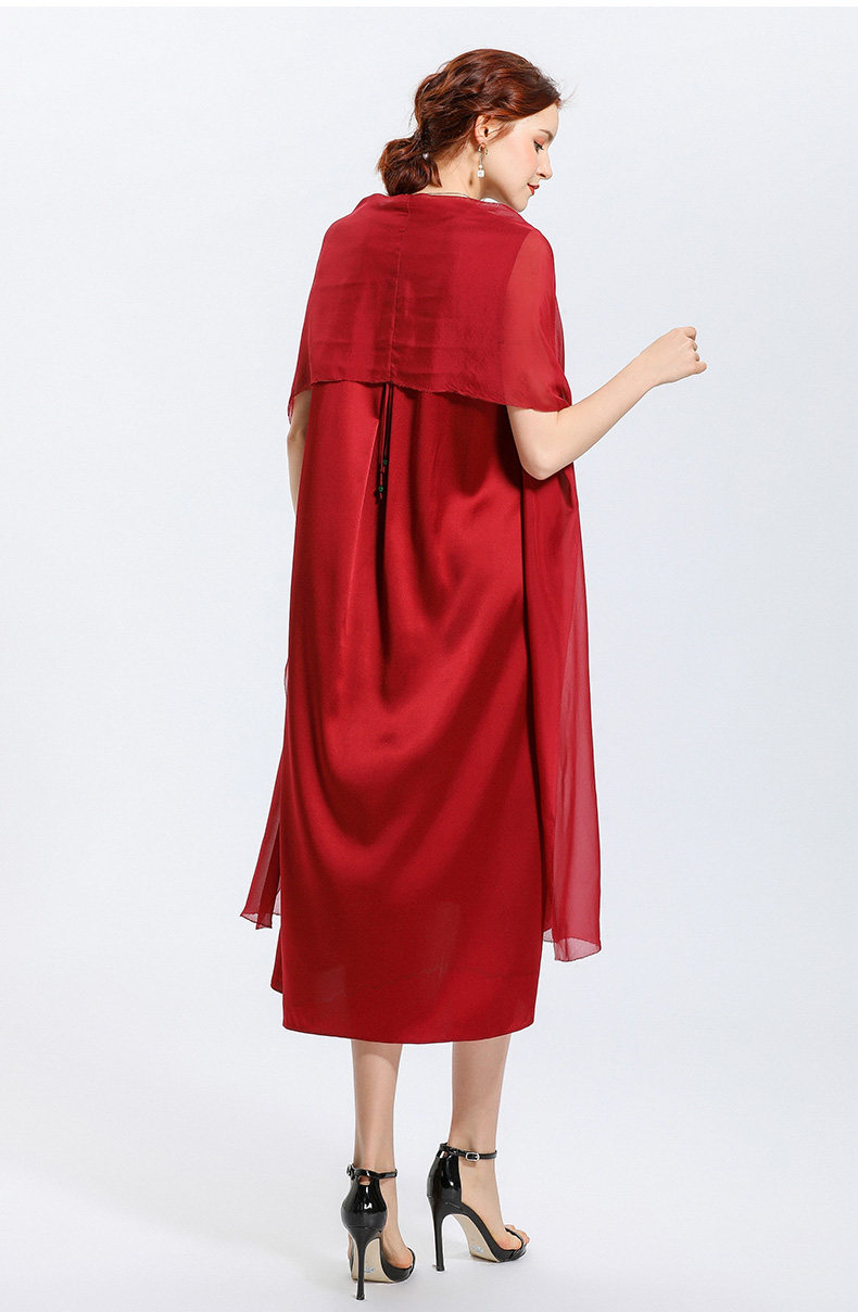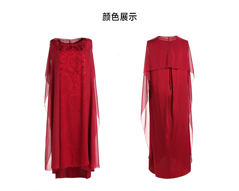 乔万尼夏季三穿法真丝中国风披肩红桑蚕丝连衣裙长款礼服EN2E543