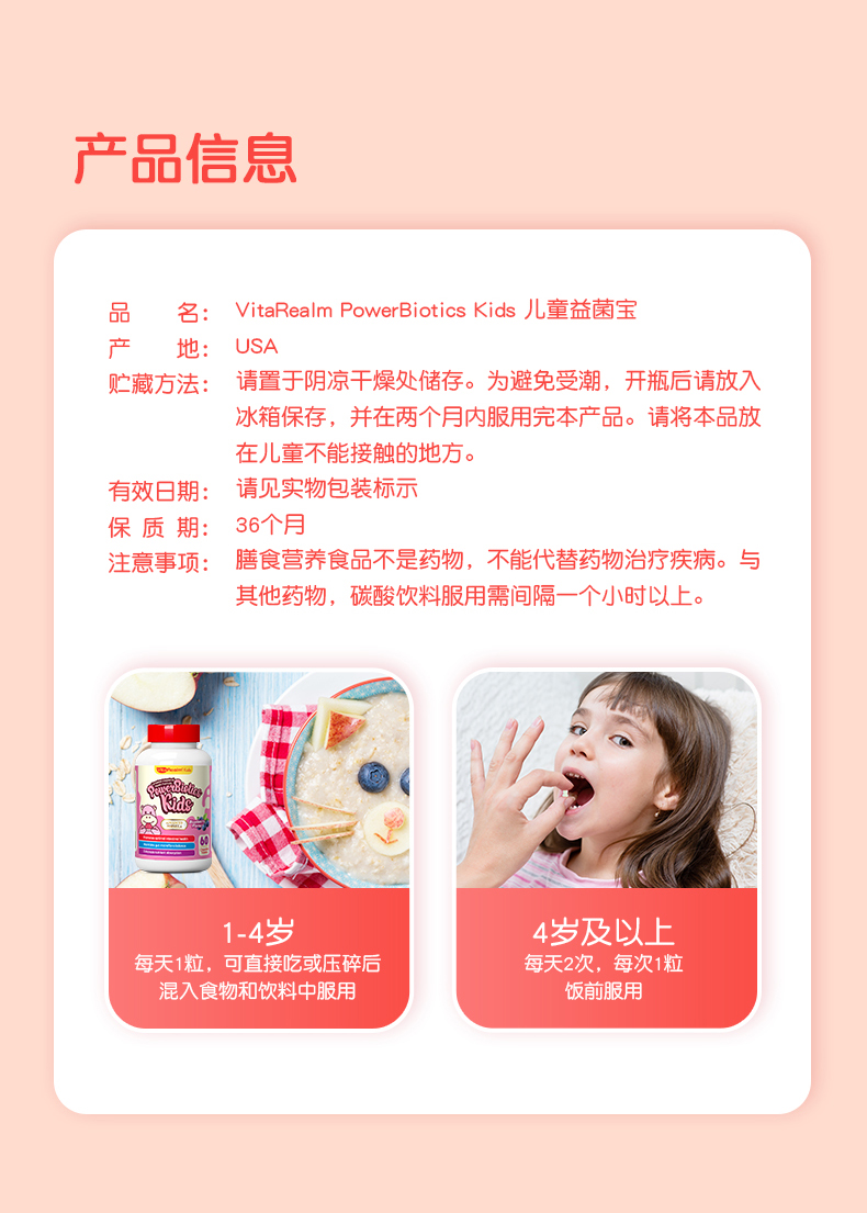 【2瓶/246,3瓶/328 VitaRealm】新加坡维乐原 儿童益生菌调理肠胃60粒