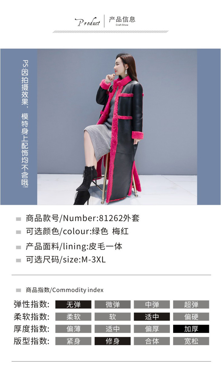 WZNH ZMFS81262 加厚保暖舒适修身显瘦纯色长款服2020冬季新款皮毛一体外套