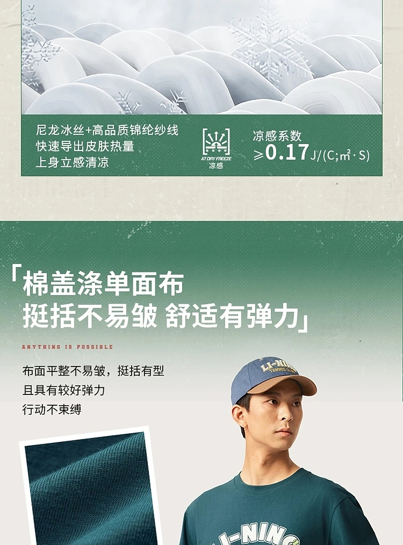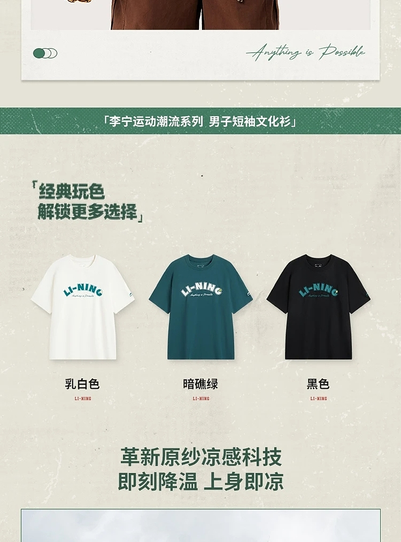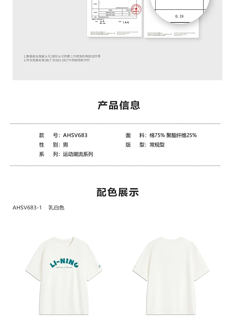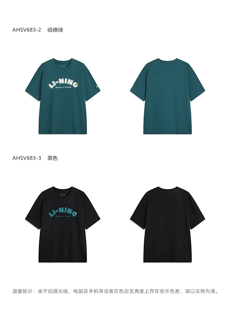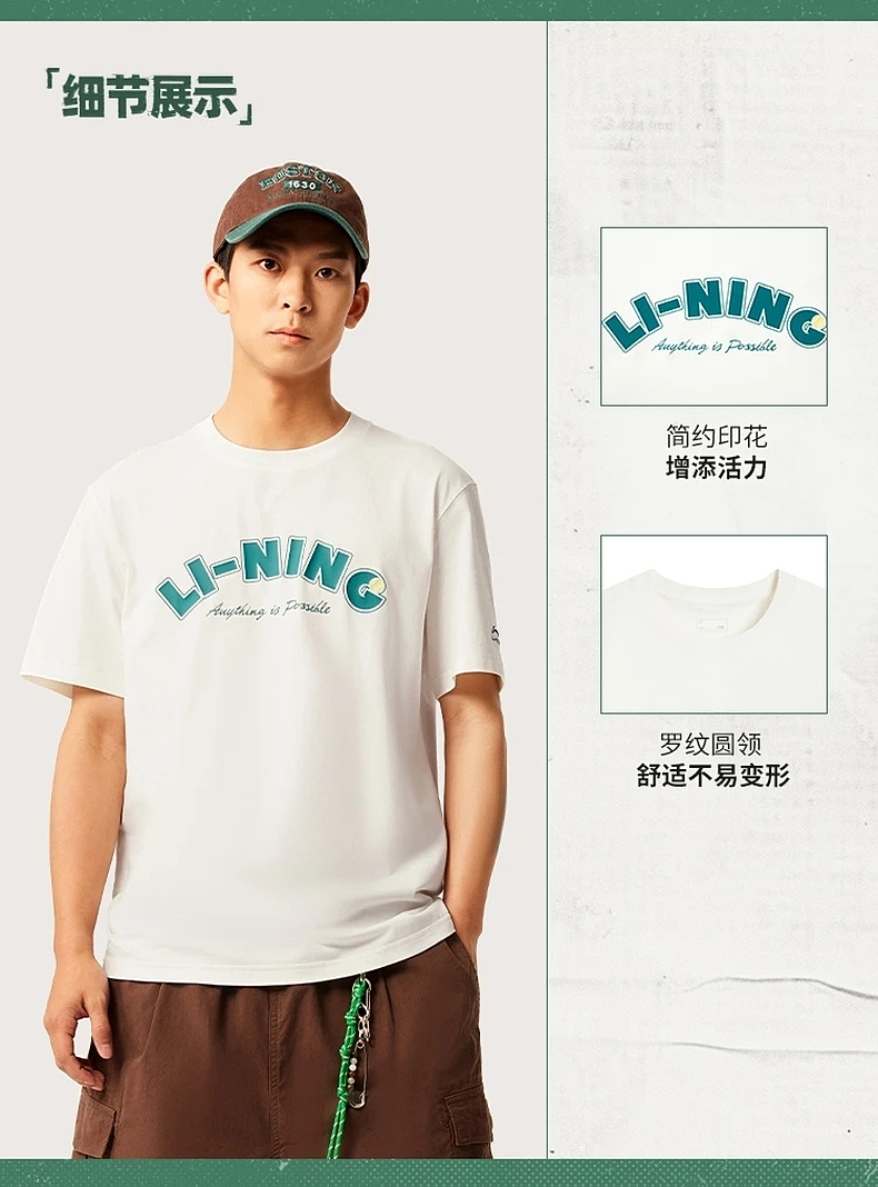 李宁短袖T恤男子25夏季新款潮酷LOGO都市风休闲百搭运动上衣AHSV683