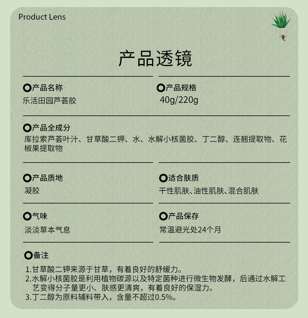清仓特价 非临期 本批次保质期到2027年10月 乐活田园芦荟胶