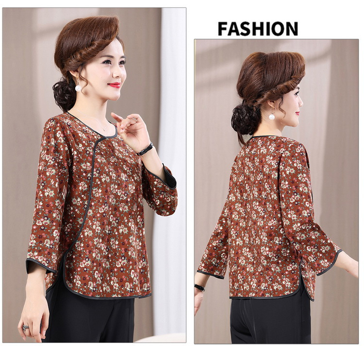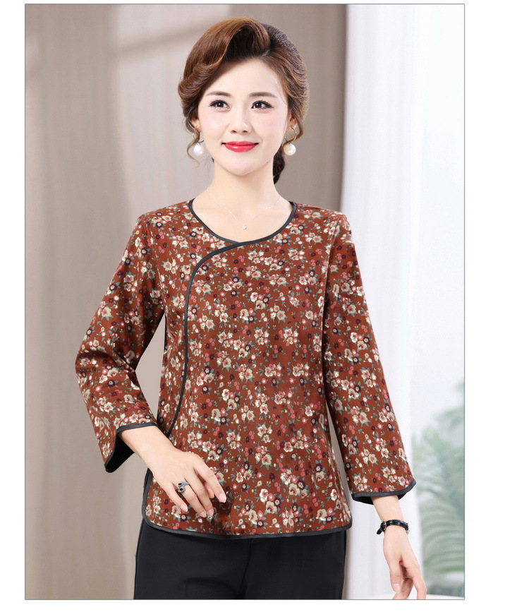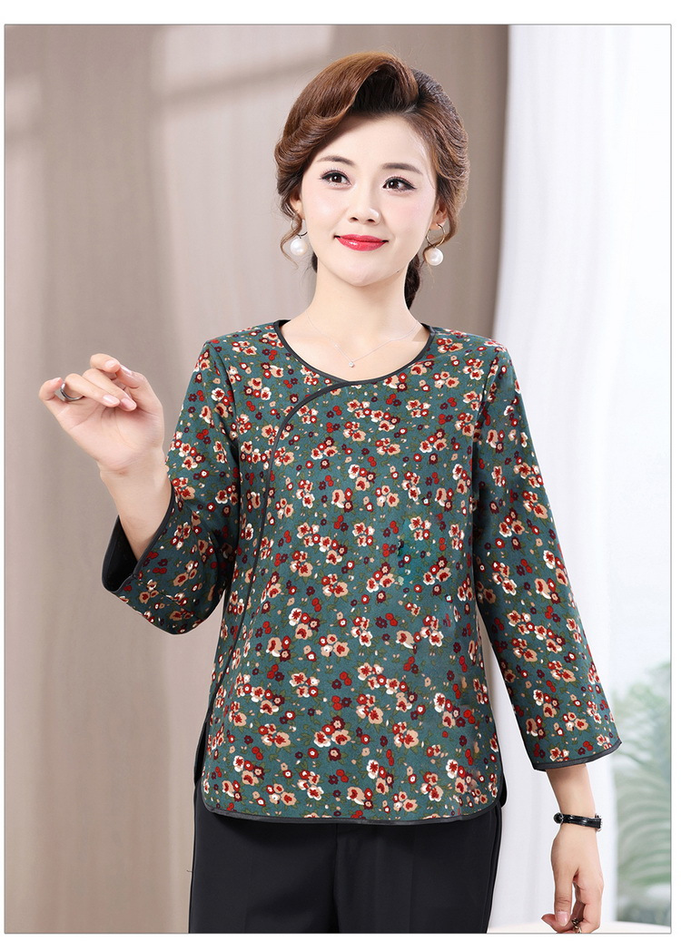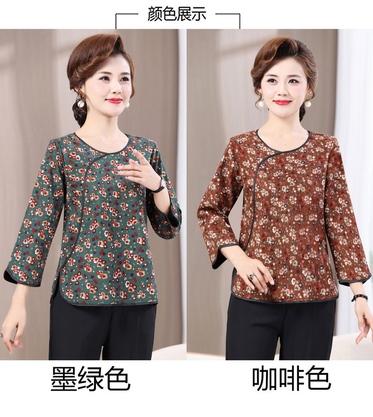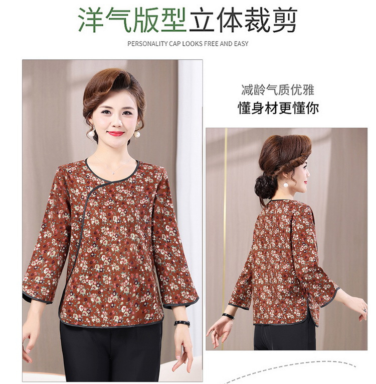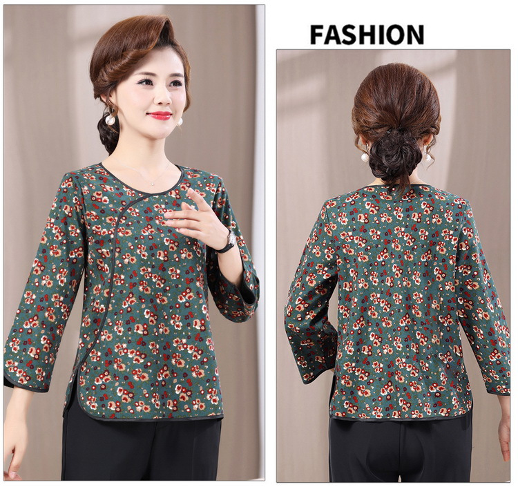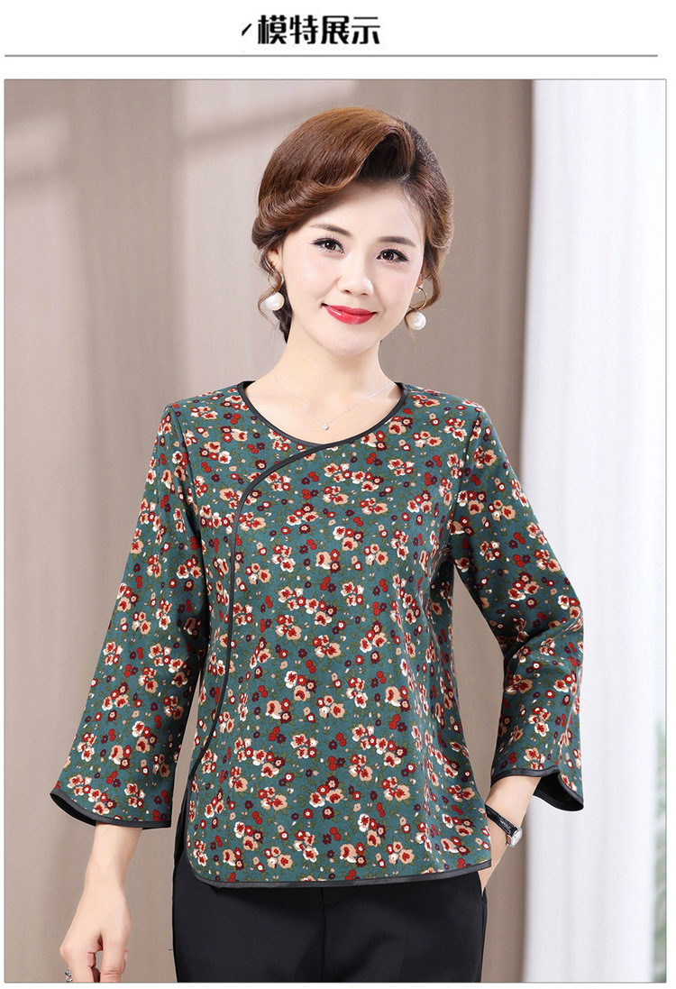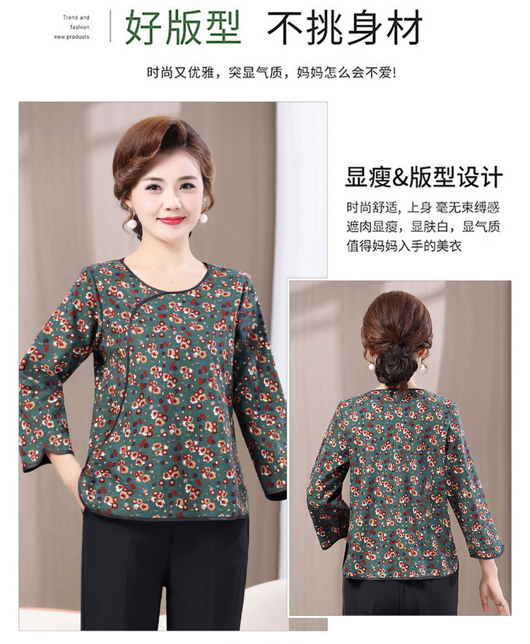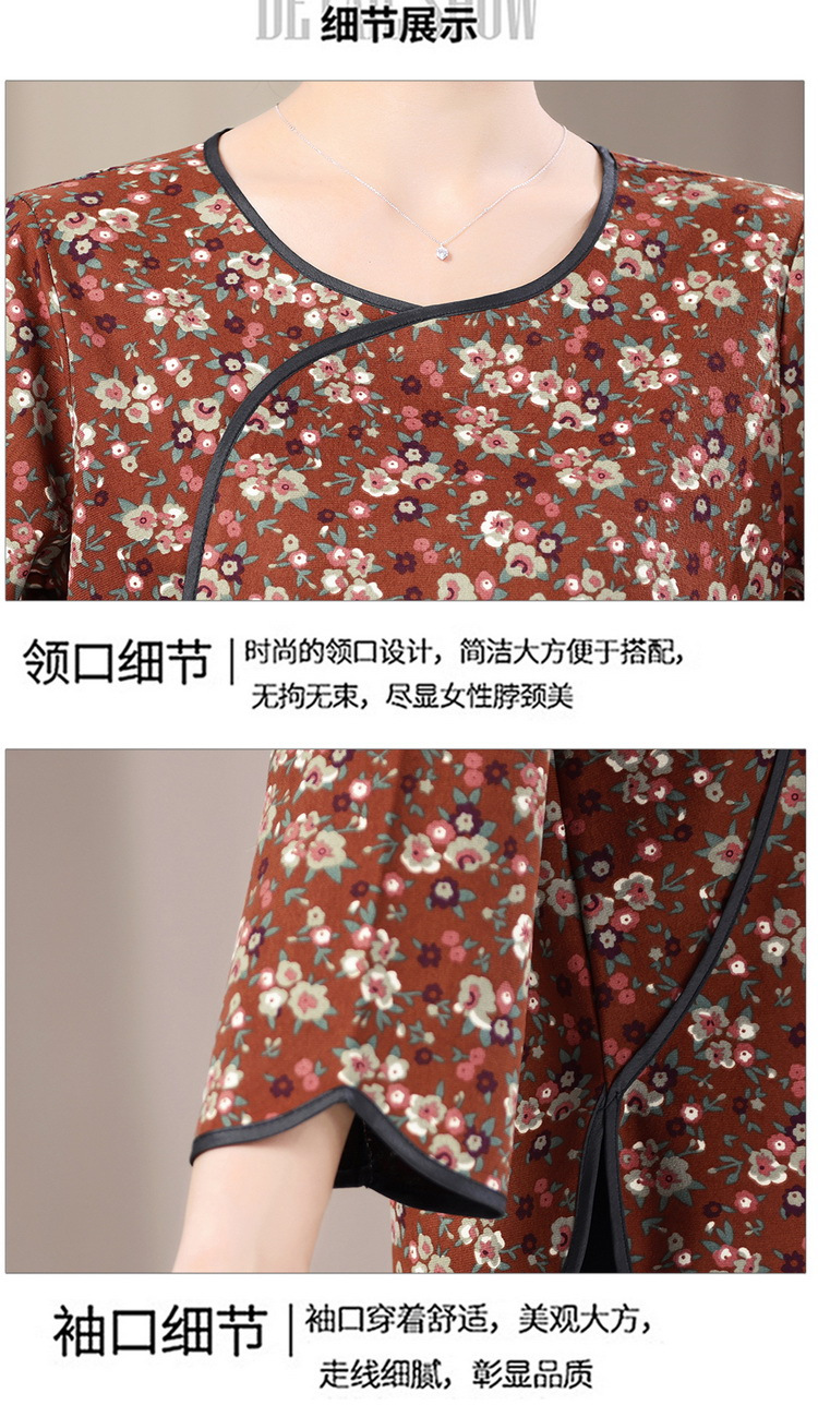 MC 2302-1旗袍气质中袖T恤显瘦小衫洋气复古唐装