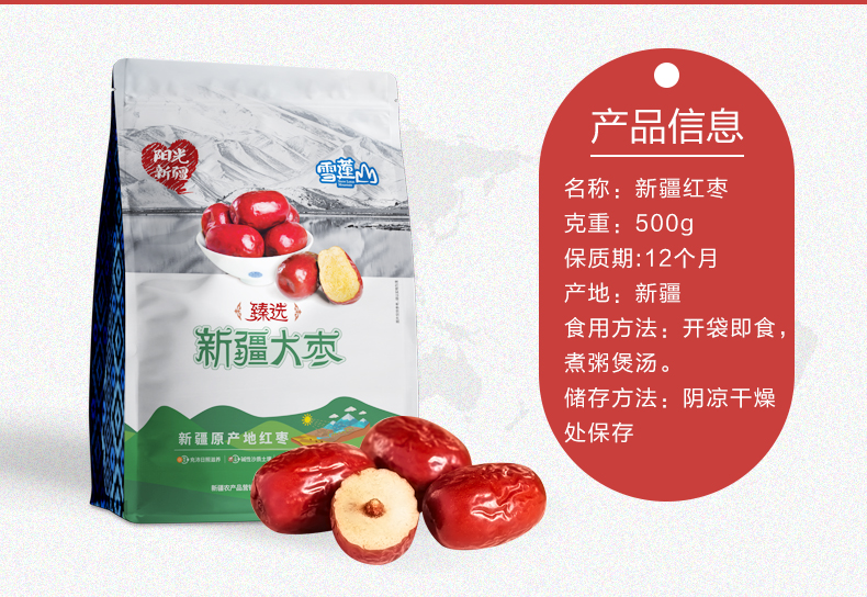 雪莲山·新疆大枣骏枣500g(三级枣) 煮粥泡茶好帮手