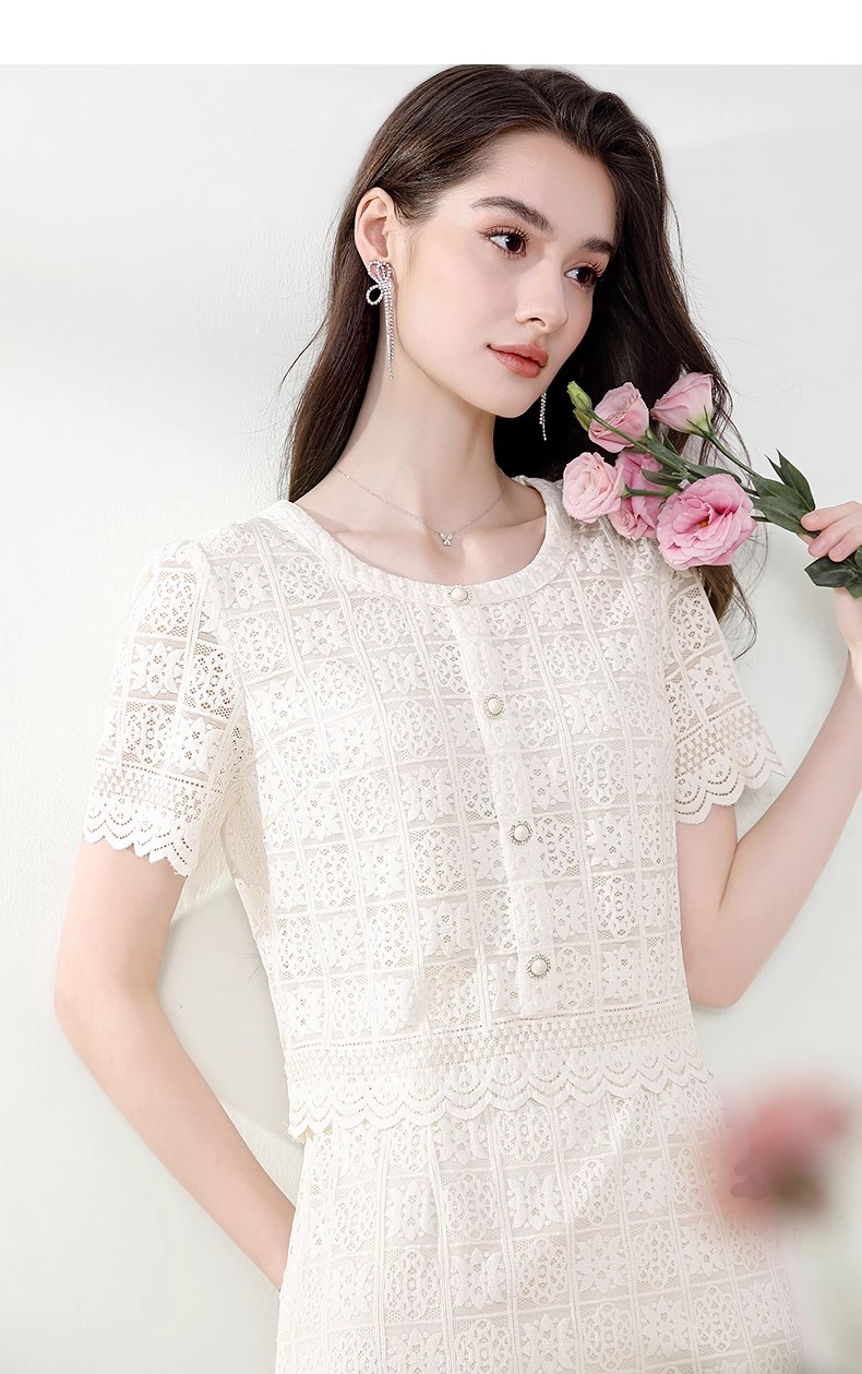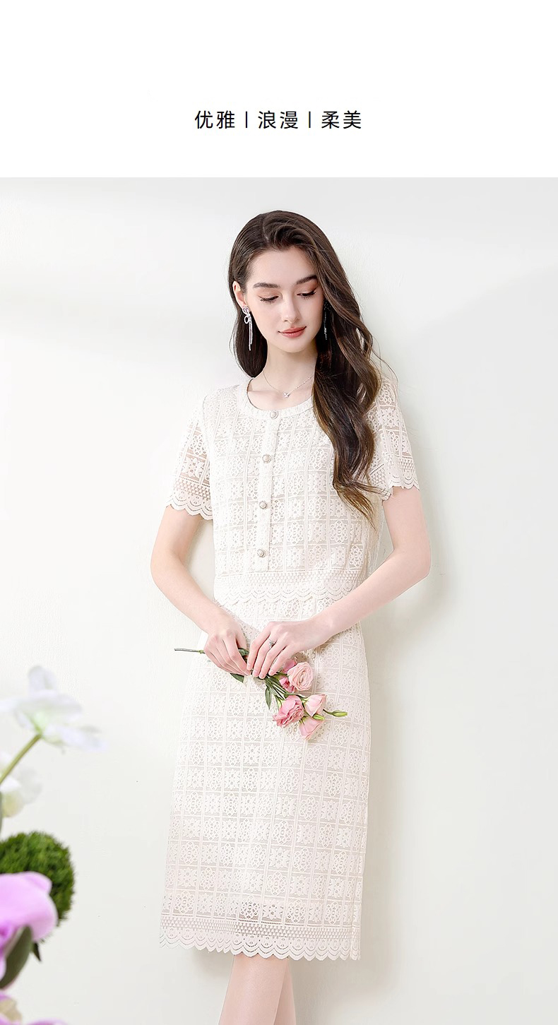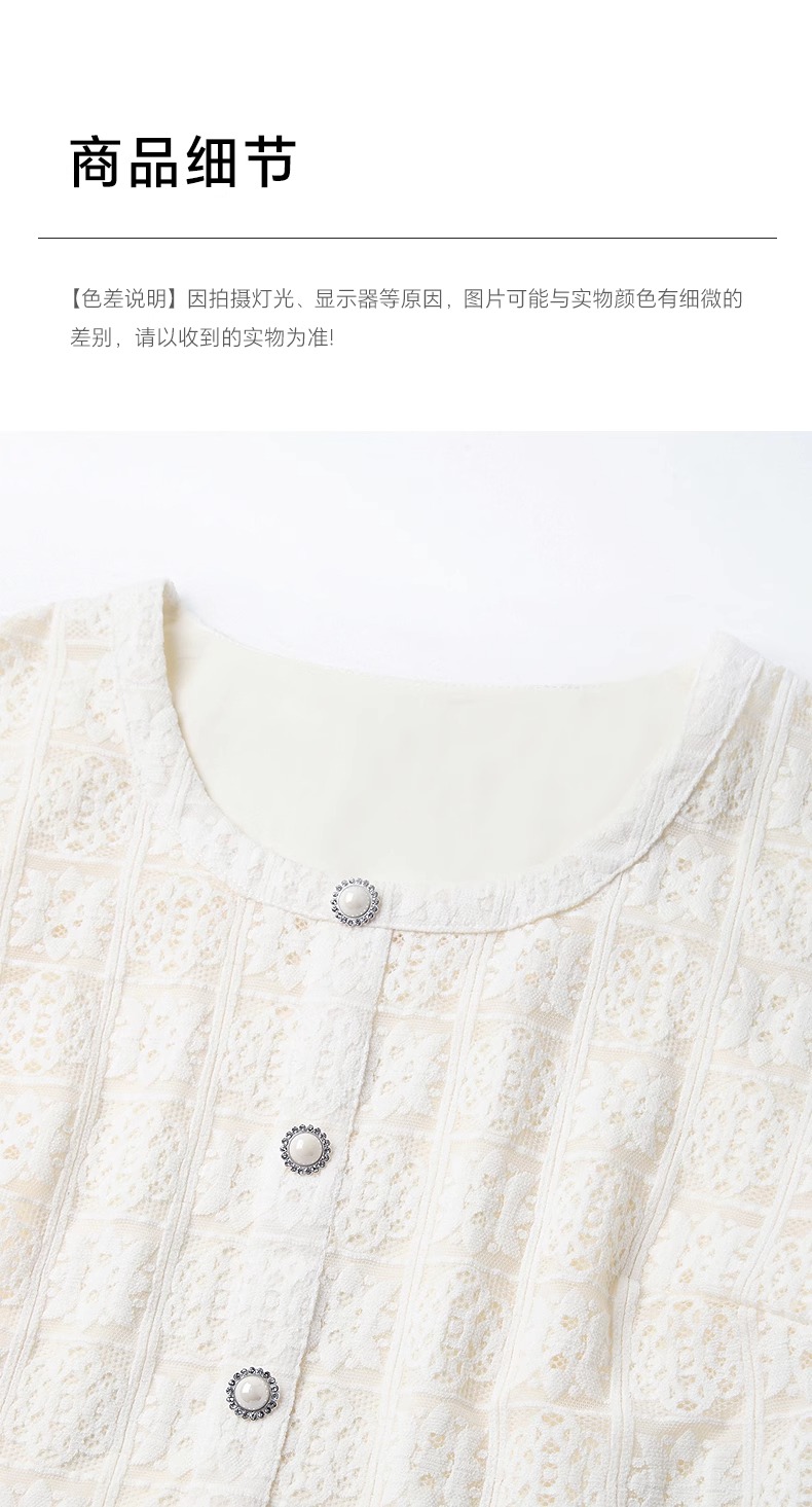全新升级【铂金会员220/天猫299/差价79】(99705) 2025春夏新款气质名媛风杏色蕾丝小香风连衣裙假两件