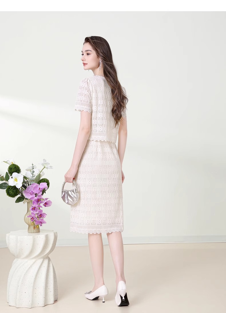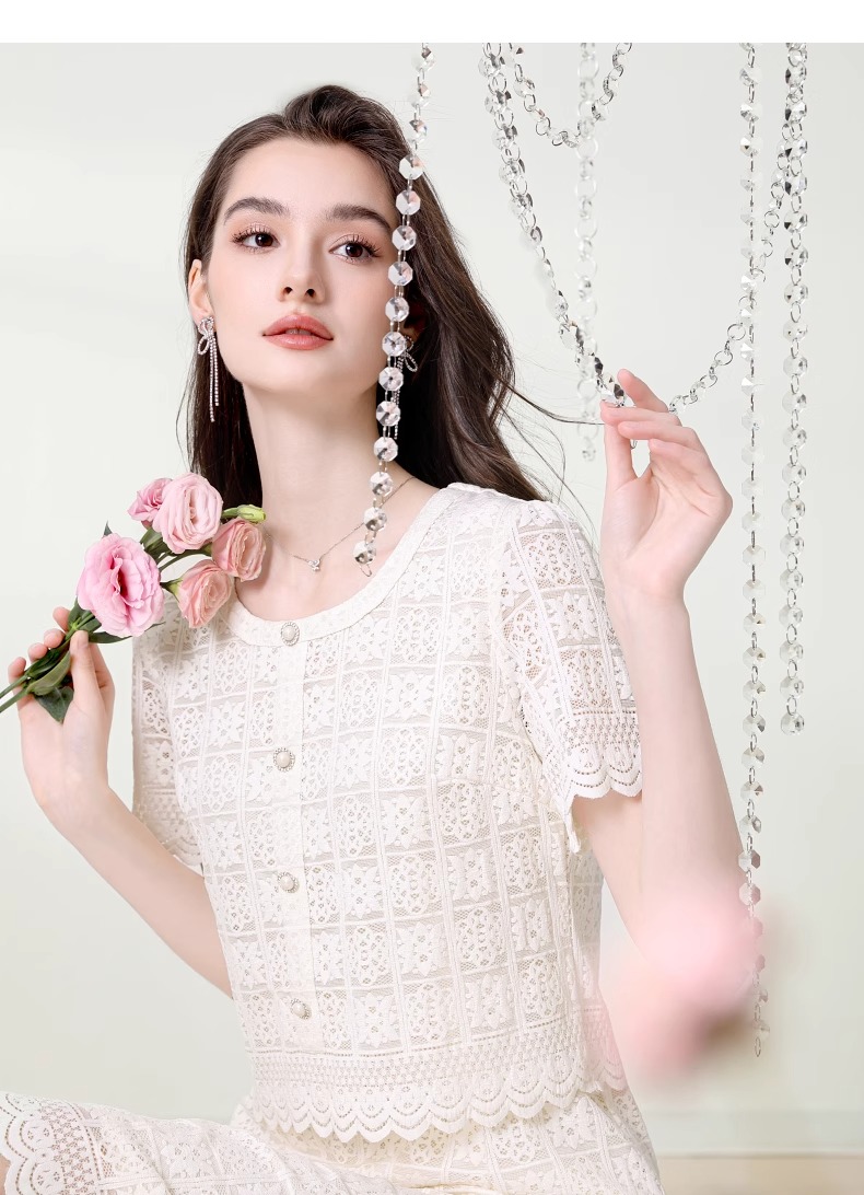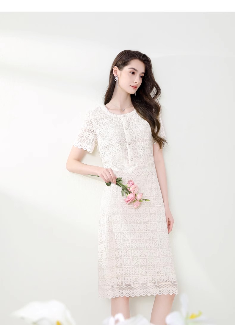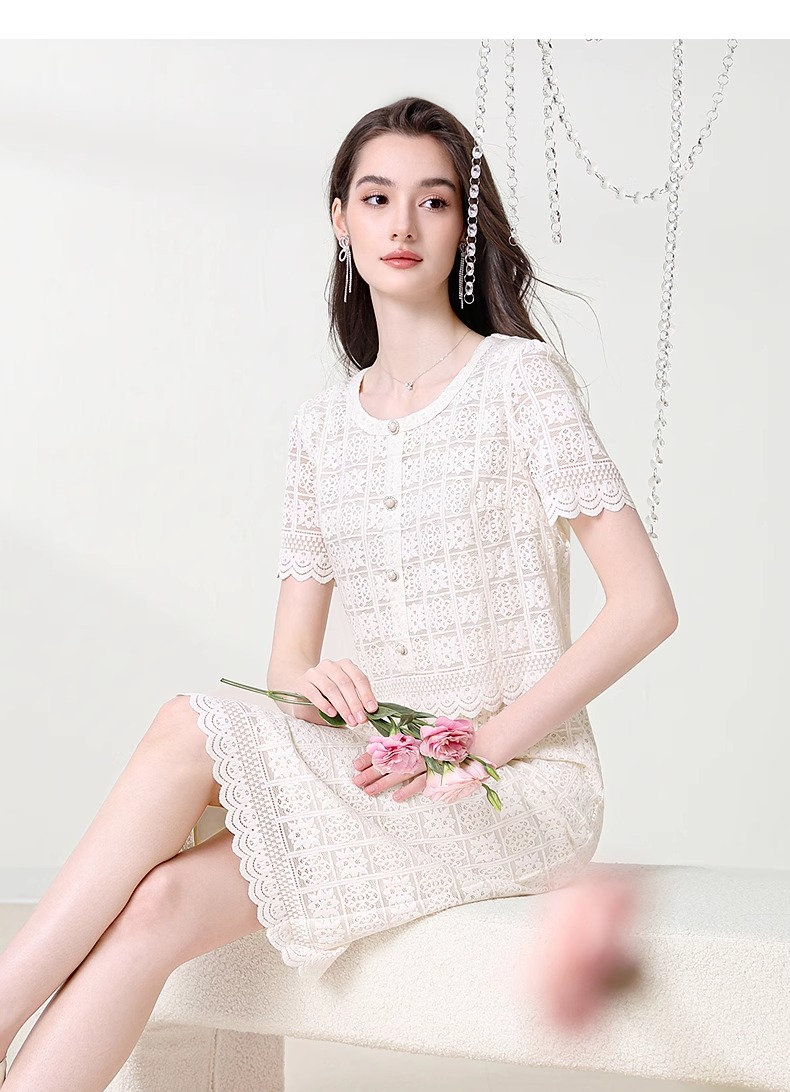 全新升级【铂金会员220/天猫299/差价79】(99705) 2025春夏新款气质名媛风杏色蕾丝小香风连衣裙假两件