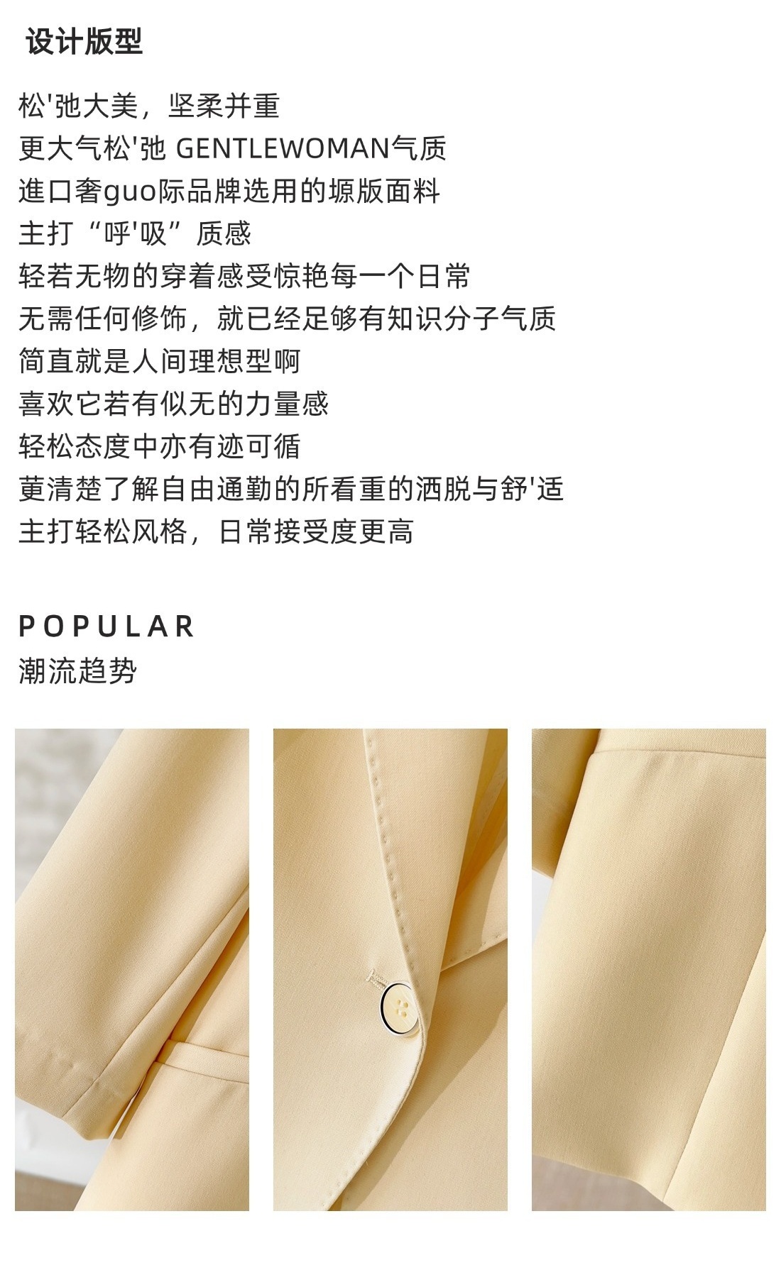 「自」全新升级【铂金会员275/天猫369/差价94】(92857)洛诗琳休闲七分袖西装外套2025秋季高级感通勤百搭外套女