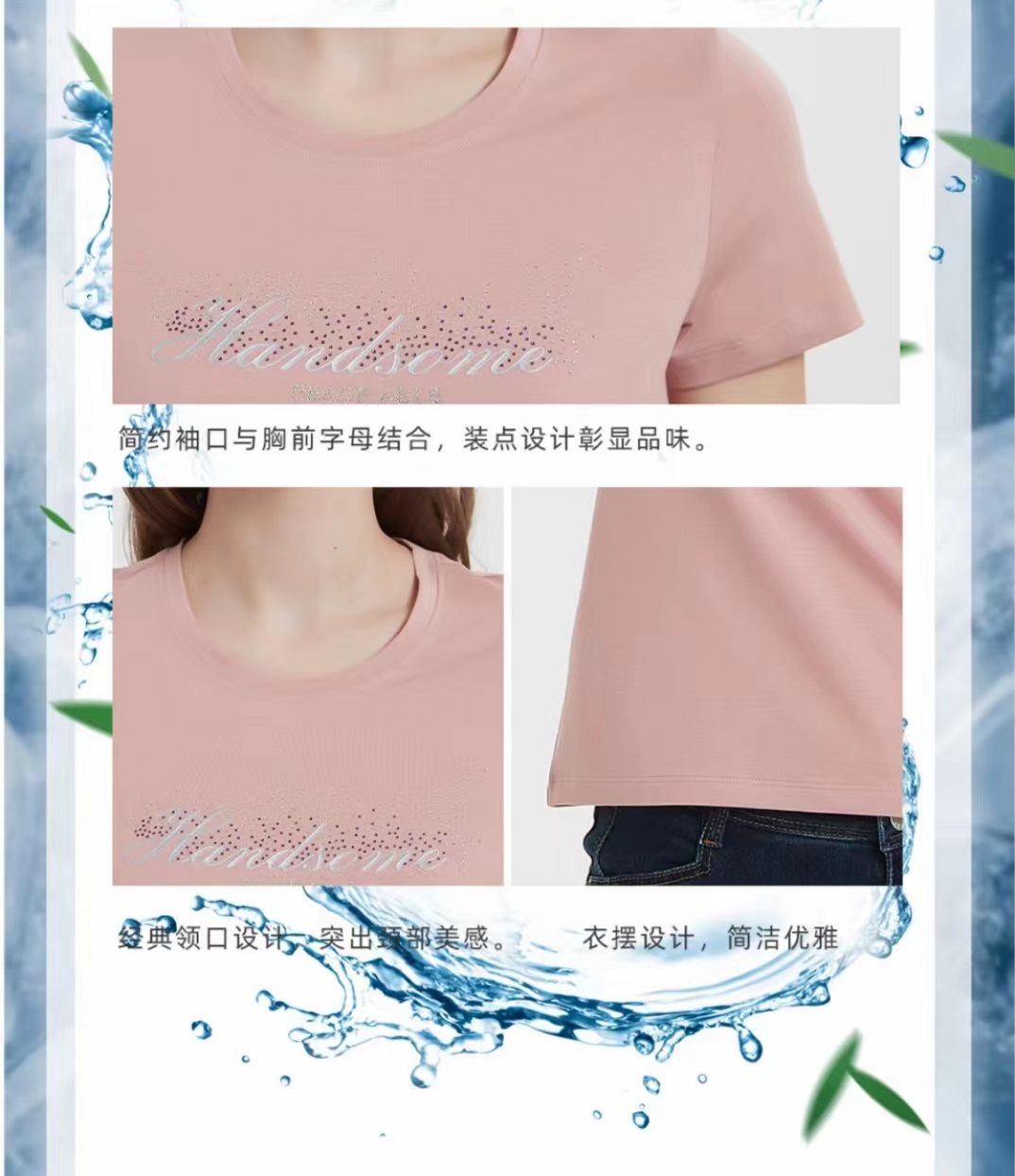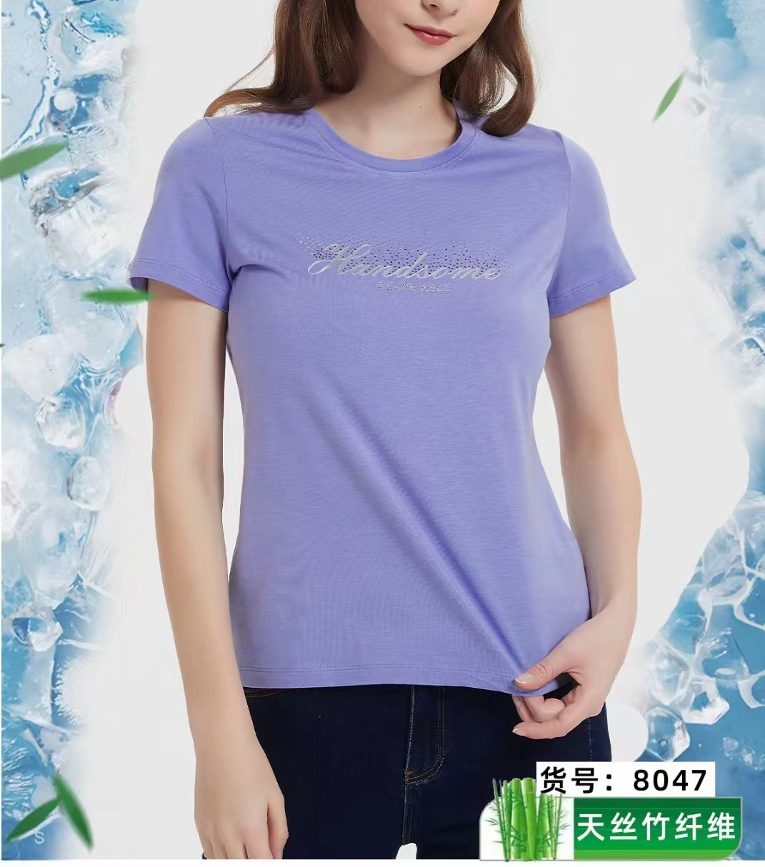 【品名】FF竹纤维女士竹棉印字短袖8047