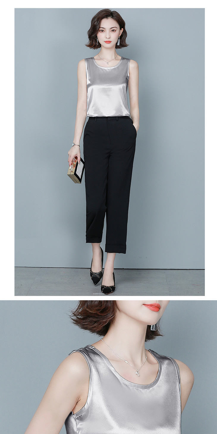 KQL-3128F6690夏新款时尚百搭缎面无袖打底衫