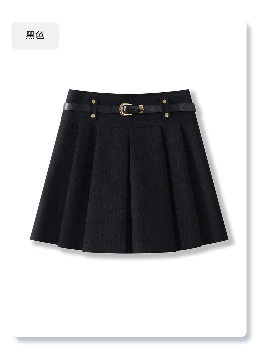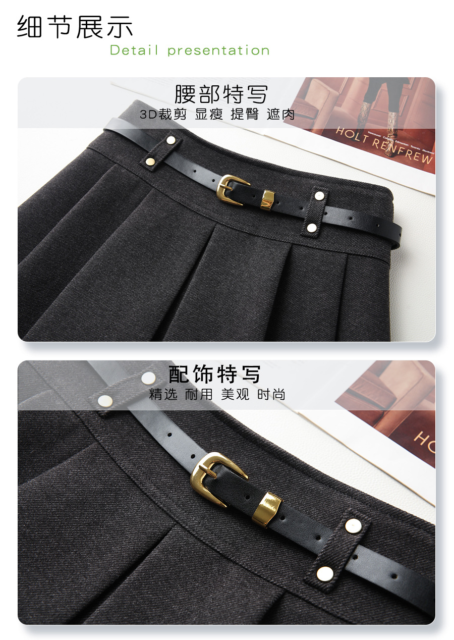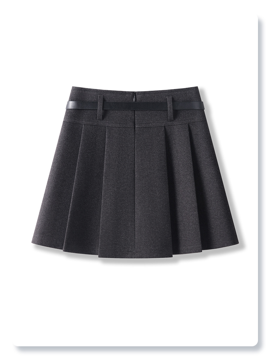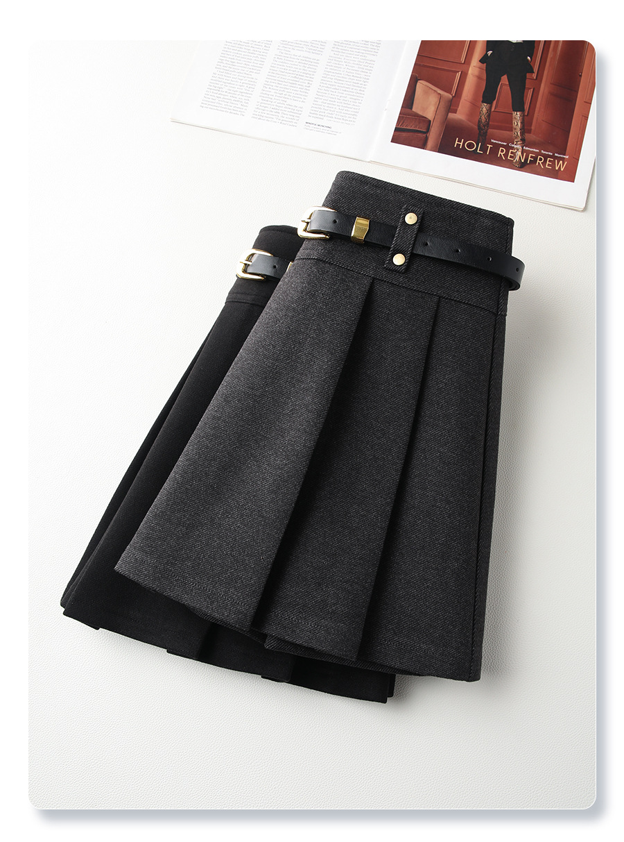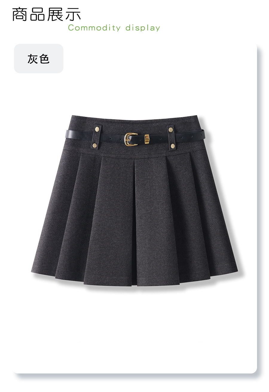 丁摩 灰色毛呢半身裙女秋冬高腰A字裙显瘦百褶裙冬季呢子短裙5ZF-96663