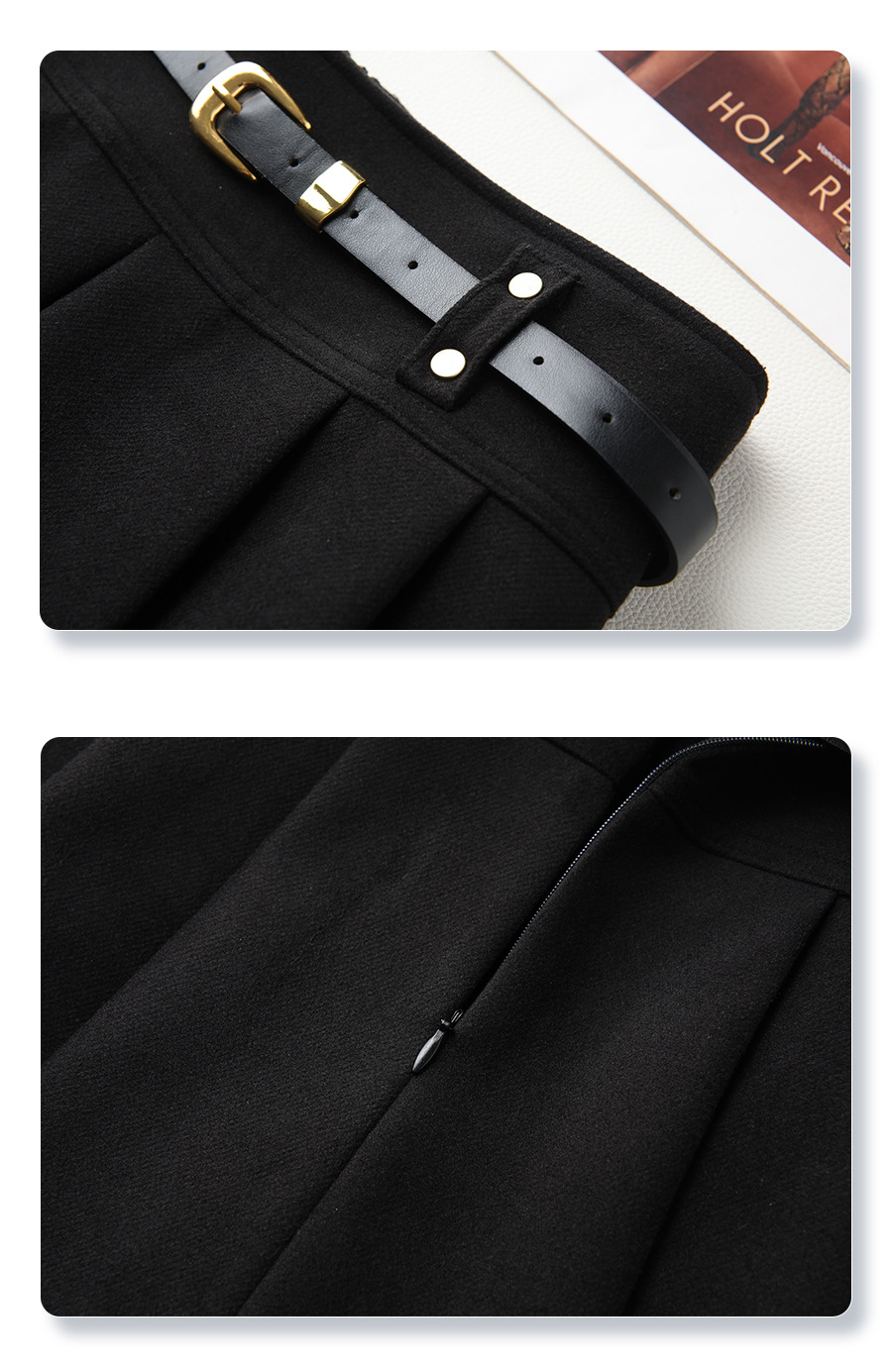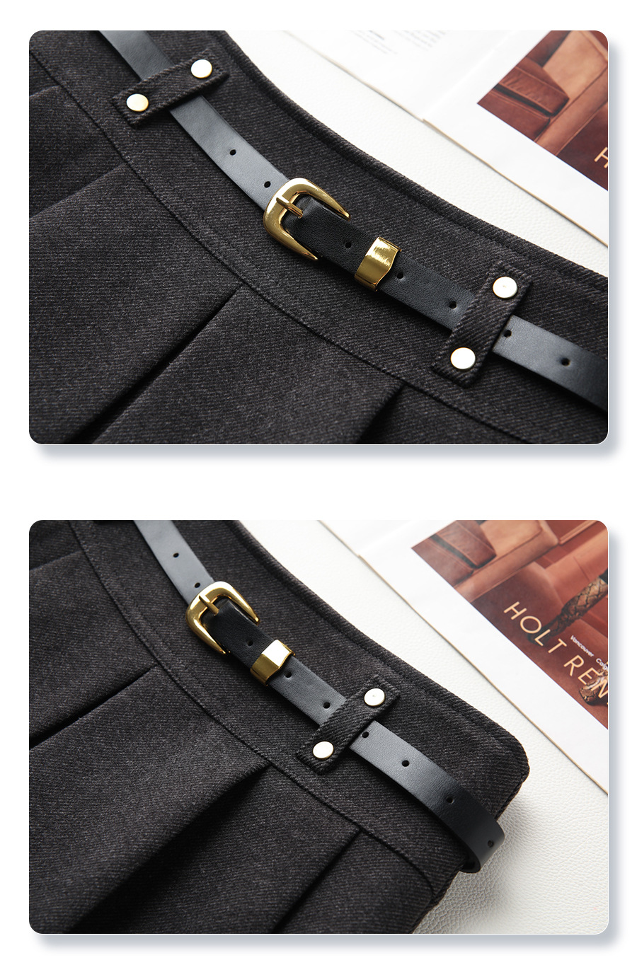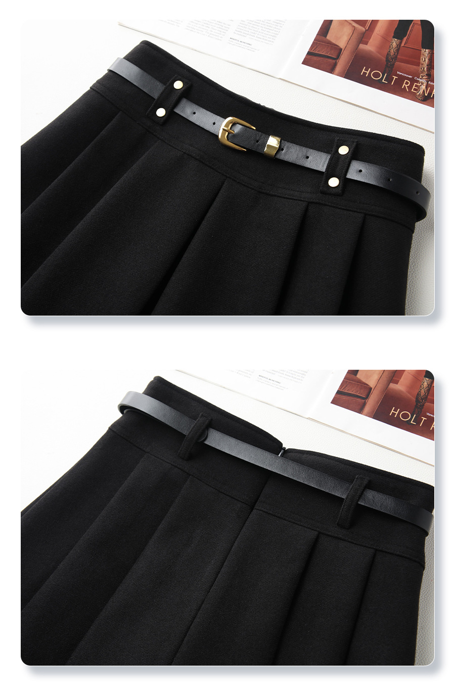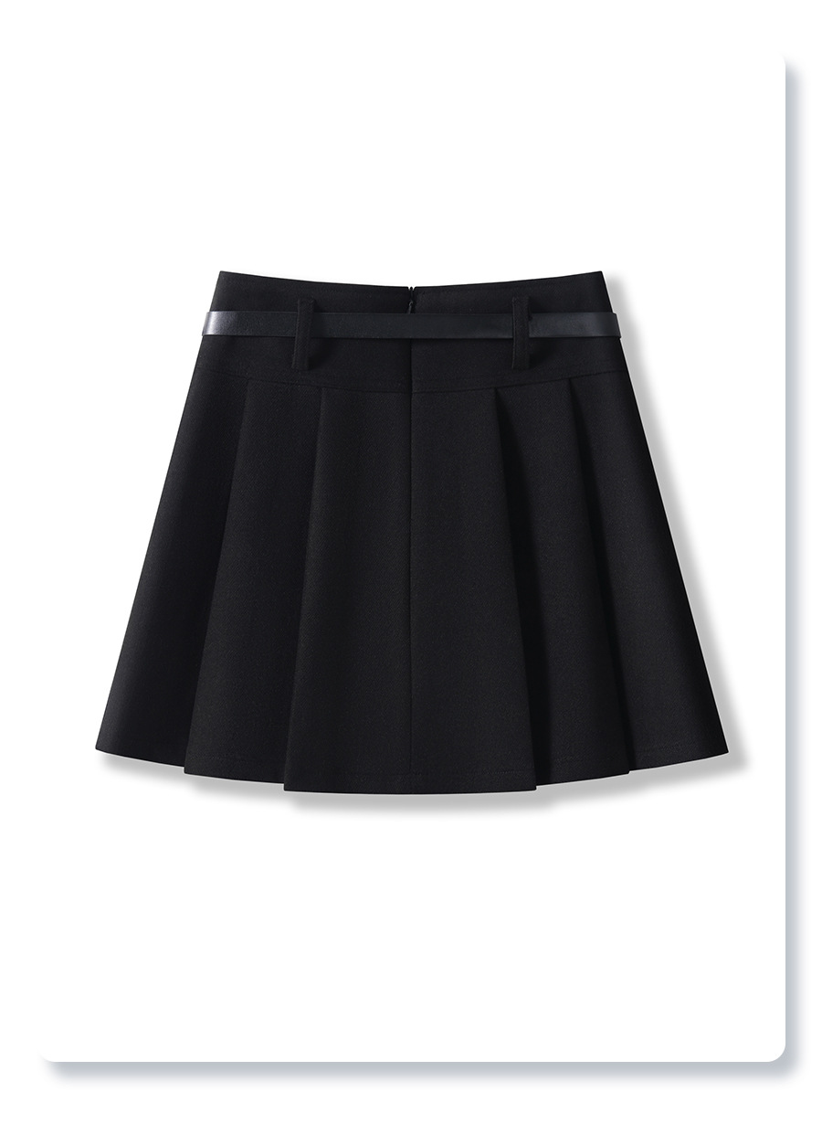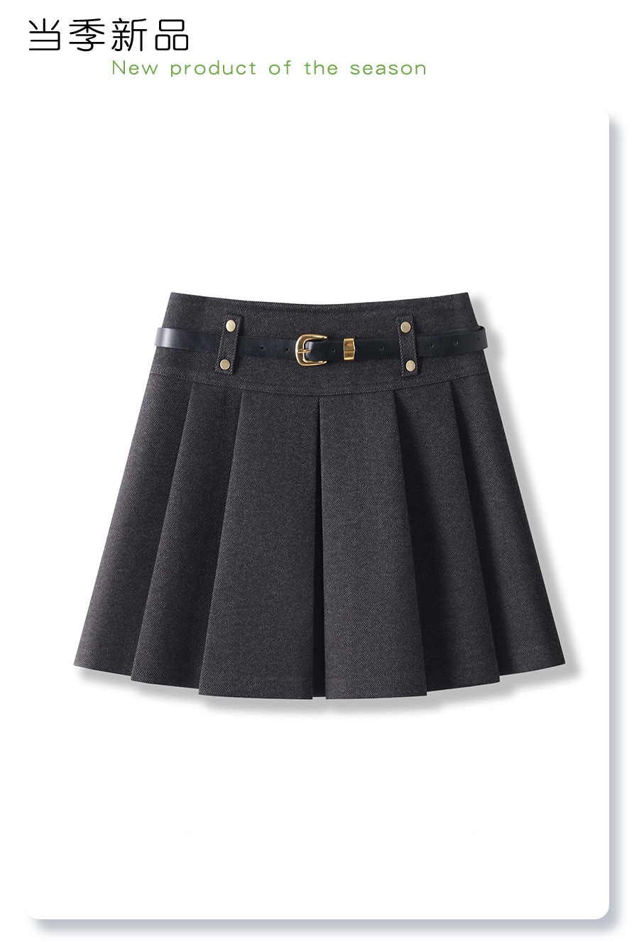 丁摩 灰色毛呢半身裙女秋冬高腰A字裙显瘦百褶裙冬季呢子短裙5ZF-96663