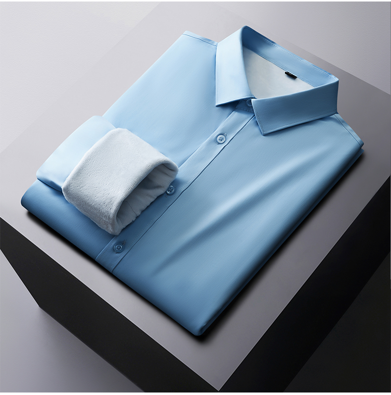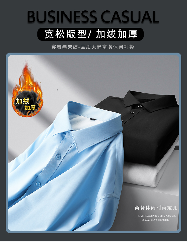 加绒【竹纤维】【新款DDP】大依优型大码加绒长袖衬衫免熨烫多色加肥加大码休闲商务上衣男士