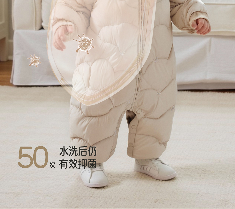 【高定系列】英氏婴儿哈衣连帽羽绒连体衣抗菌远红外A类男宝新款