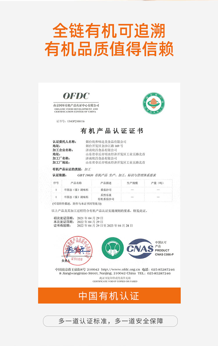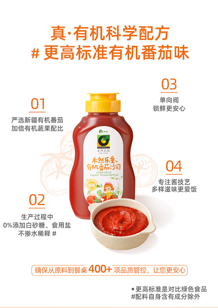 杞冠严选 | 禾然 乐童有机番茄沙司 儿童番茄酱 320g*2瓶包邮 自然红熟新疆有机番茄制成 0添加白砂糖和食盐