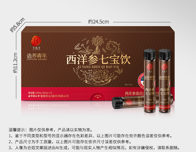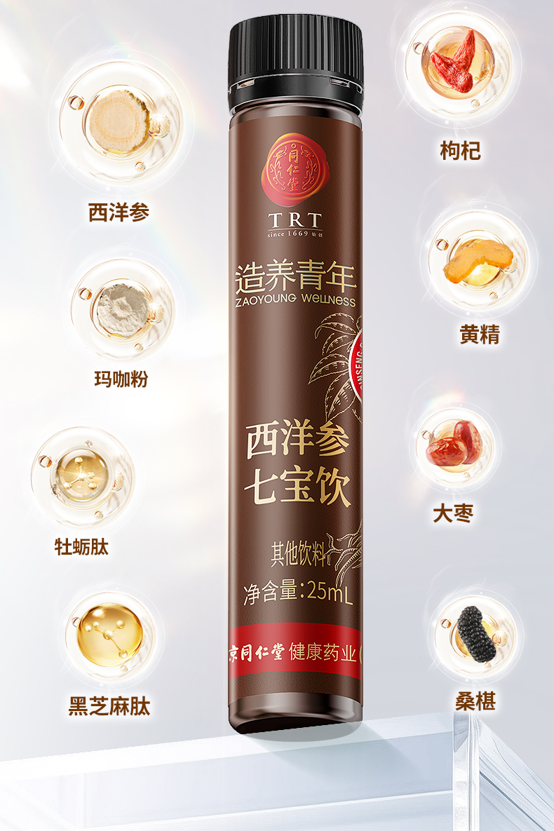 【正宗同仁堂品牌】北京同仁堂 造养青年 西洋参七宝饮 175ml (25ml×7) 精选美国西洋参 轻便易携 SY