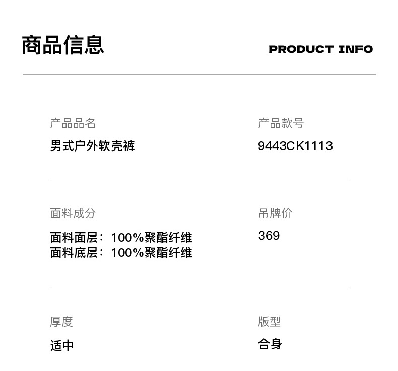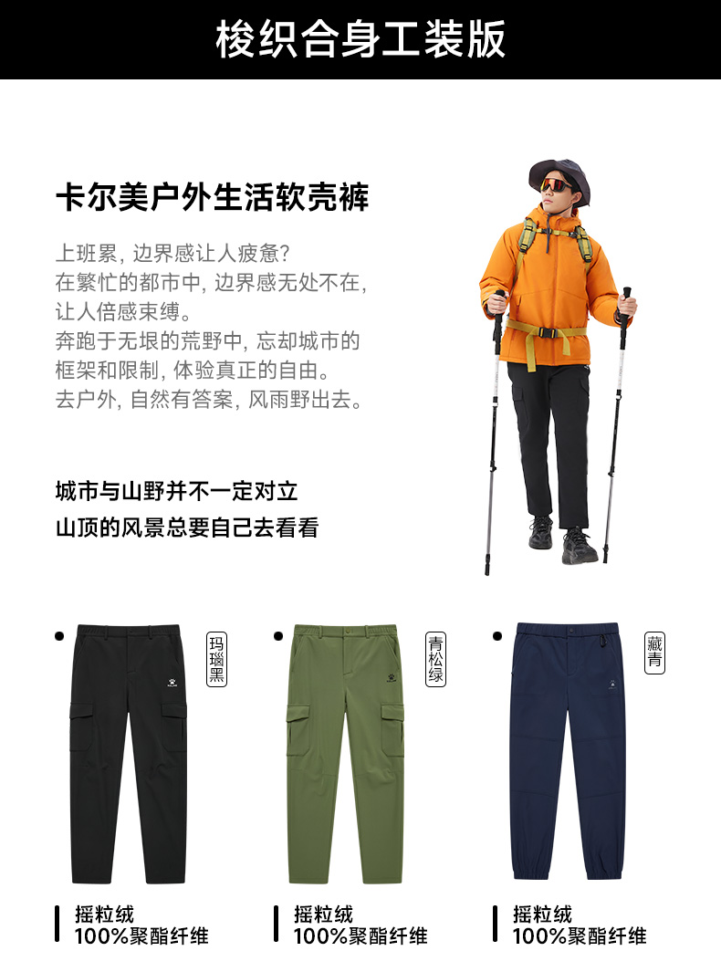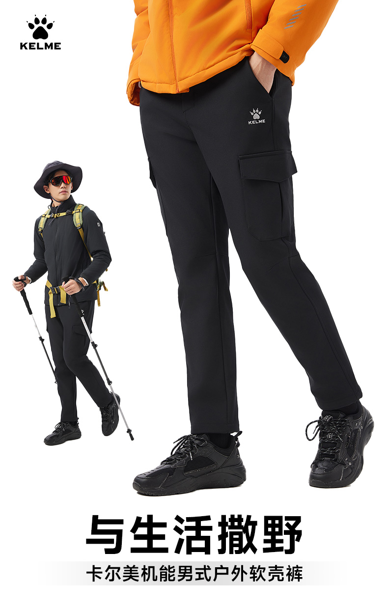 卡尔美新款男士男式户外软壳裤