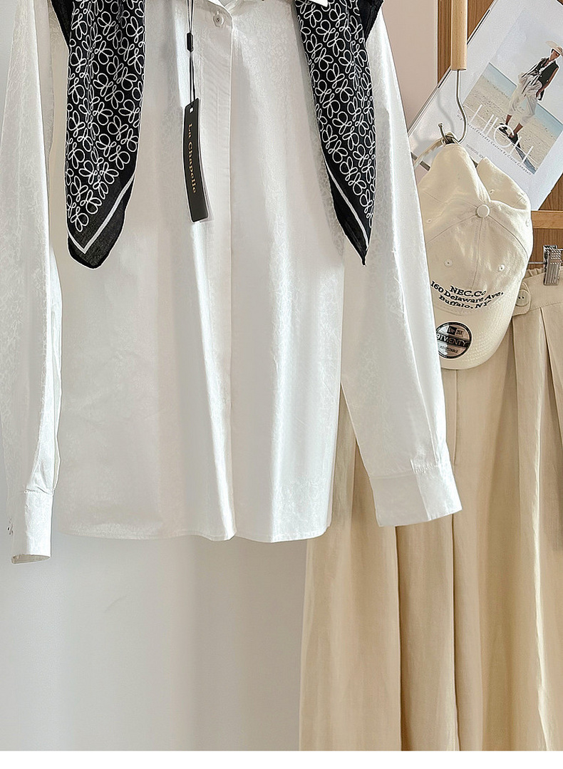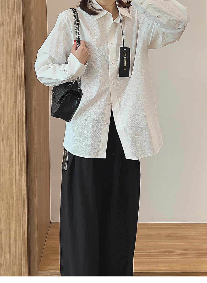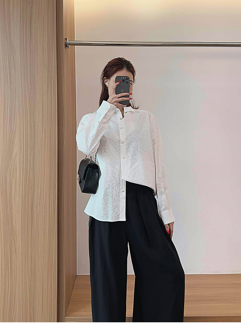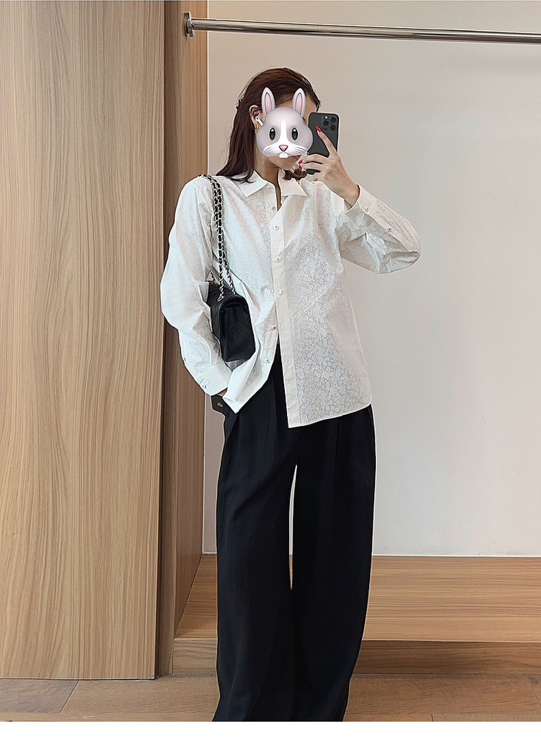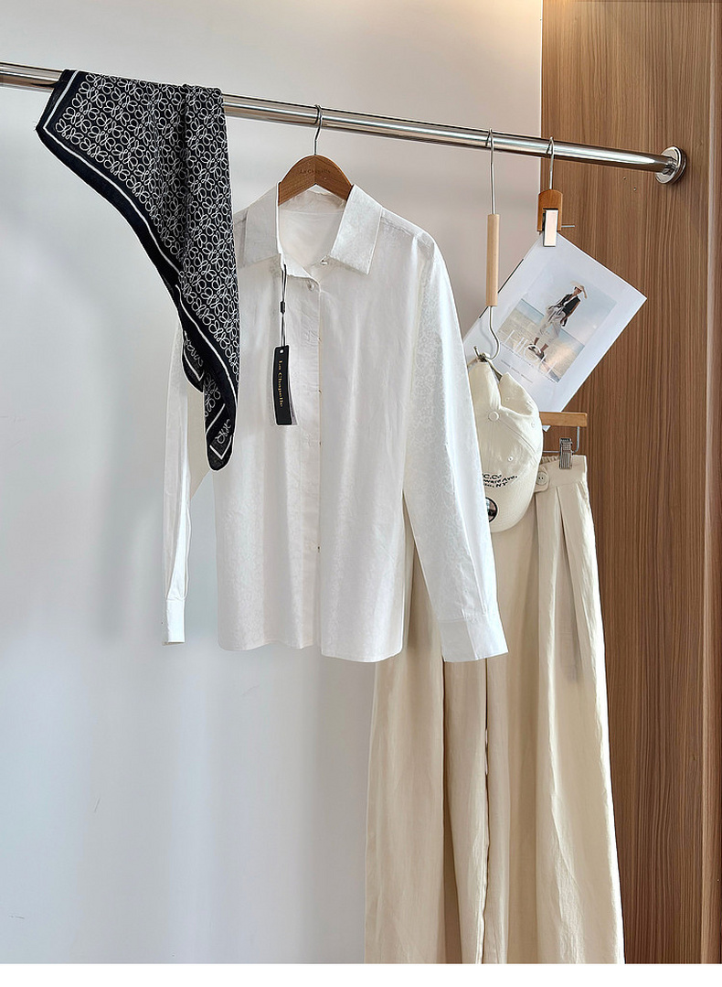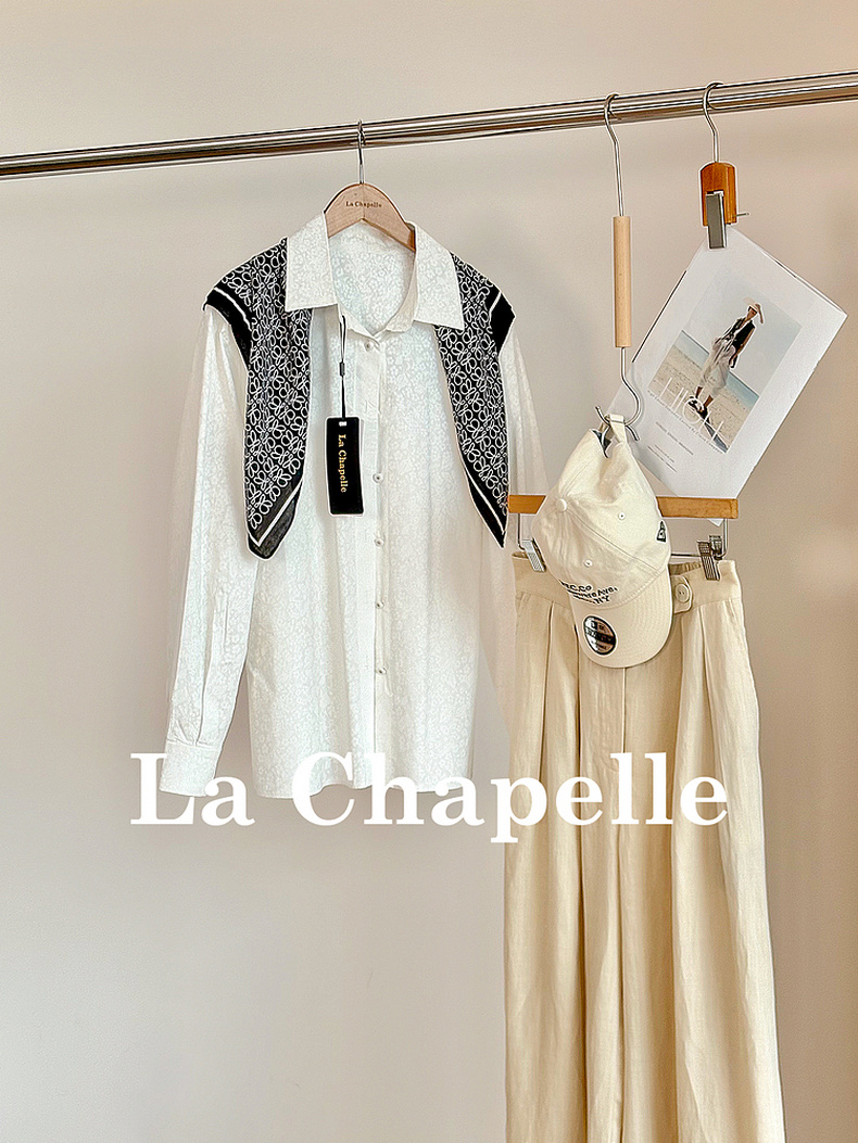 专柜实拍【全棉亲肤好穿!】拉夏贝尔/La Chapelle翻领排扣印花小众设计感高级简约气质长袖衬衫上衣